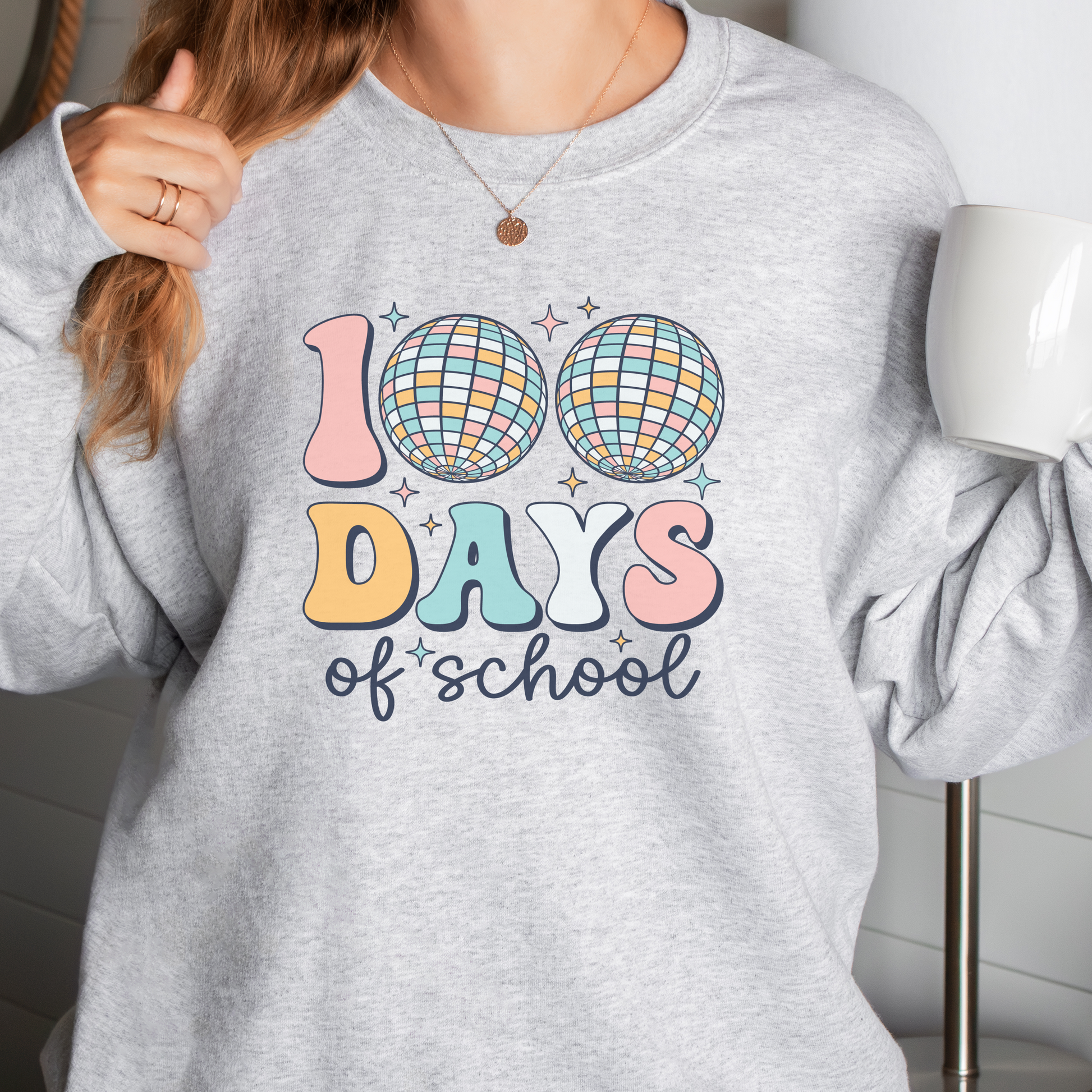 Experience the ultimate school celebration with our 100 Days of School Sweatshirt! Featuring a fun disco ball design, this sweatshirt is the perfect way to show off your school spirit on the 100th day of school. Celebrate in style and make this milestone one to remember.