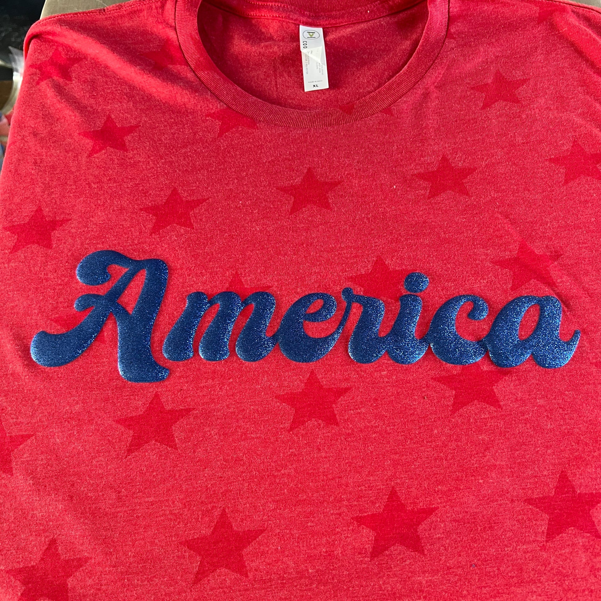 America Glitter Puff United States July 4th Patriotic Star Tshirt