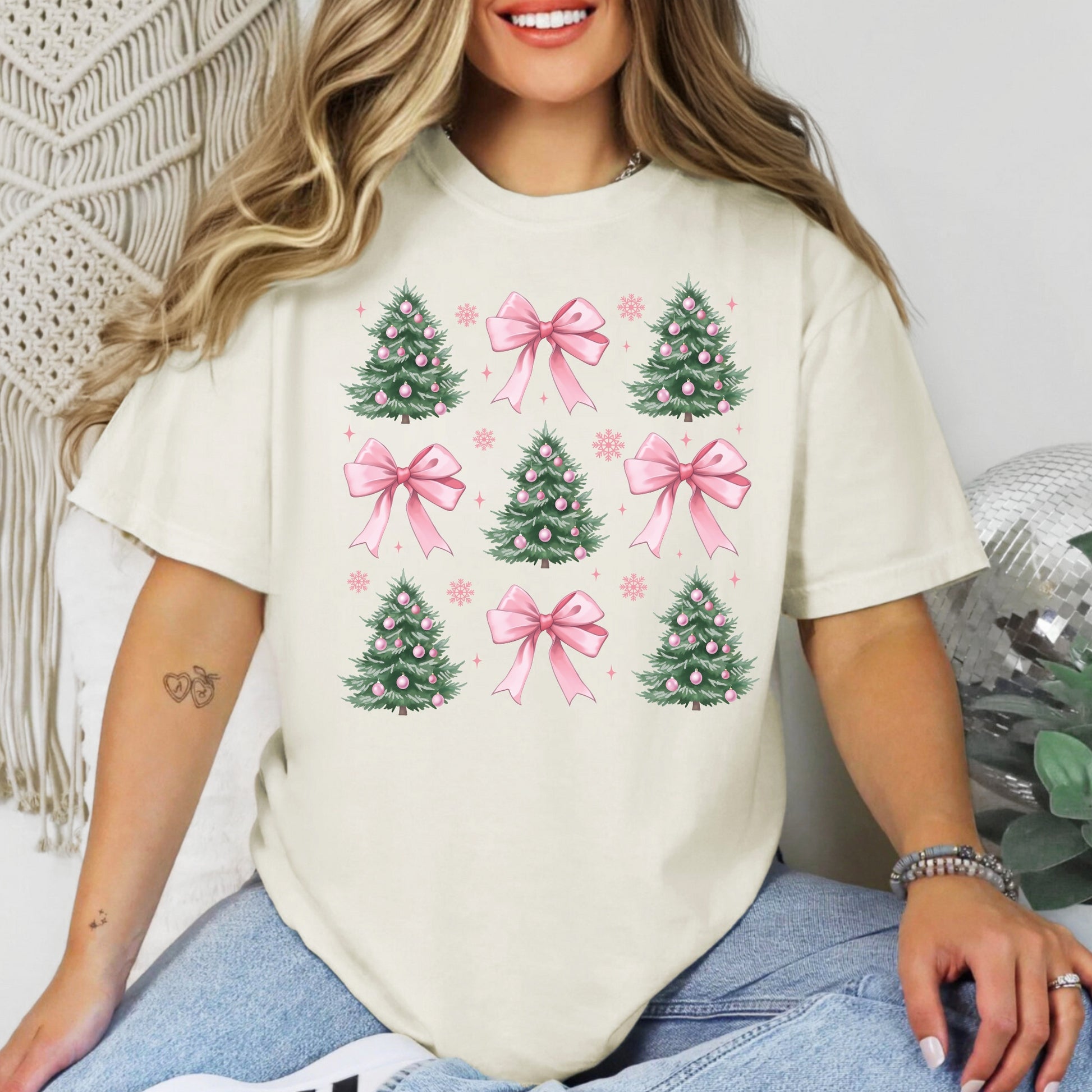 Coquette Christmas Tree and Pink Bows Tee – Comfort Colors