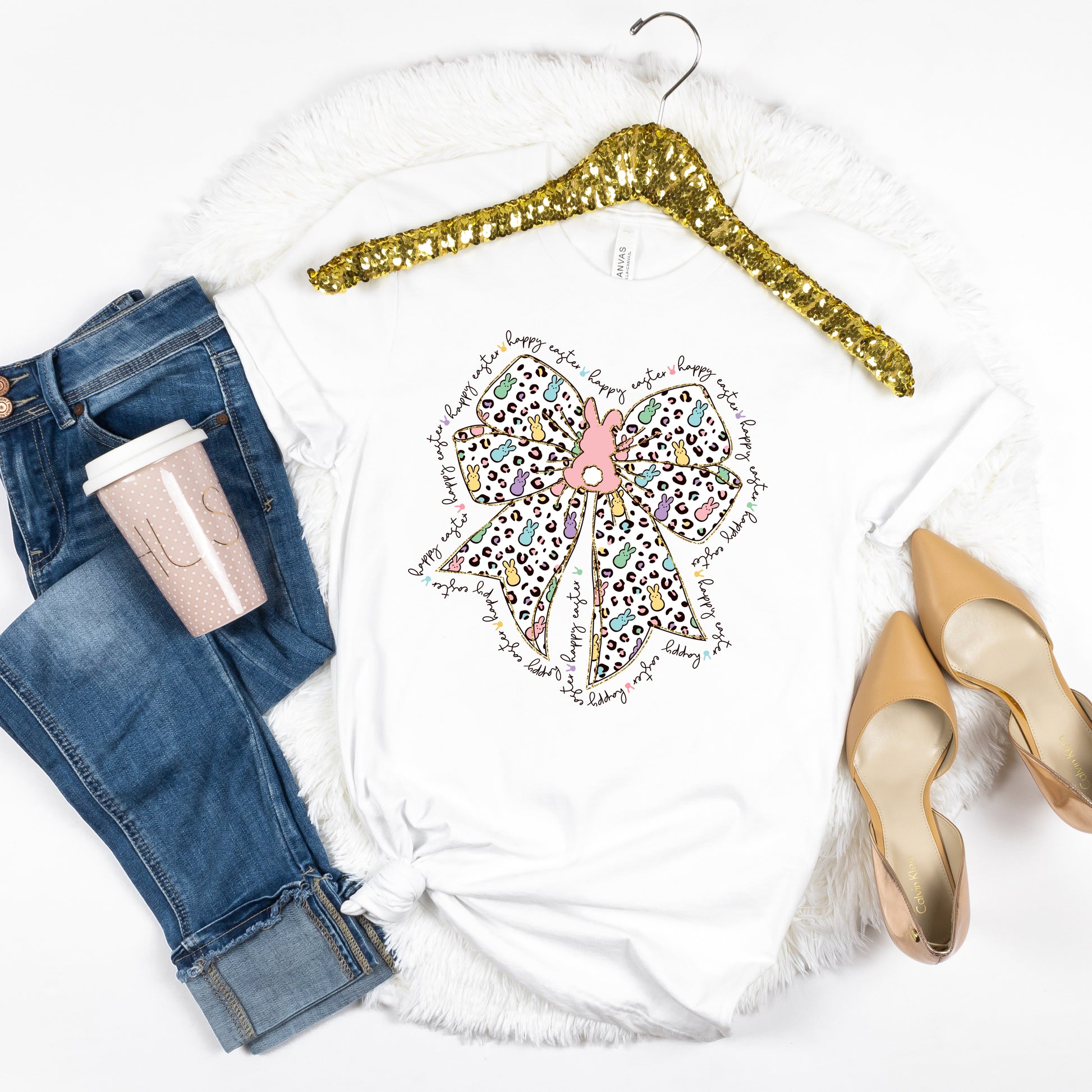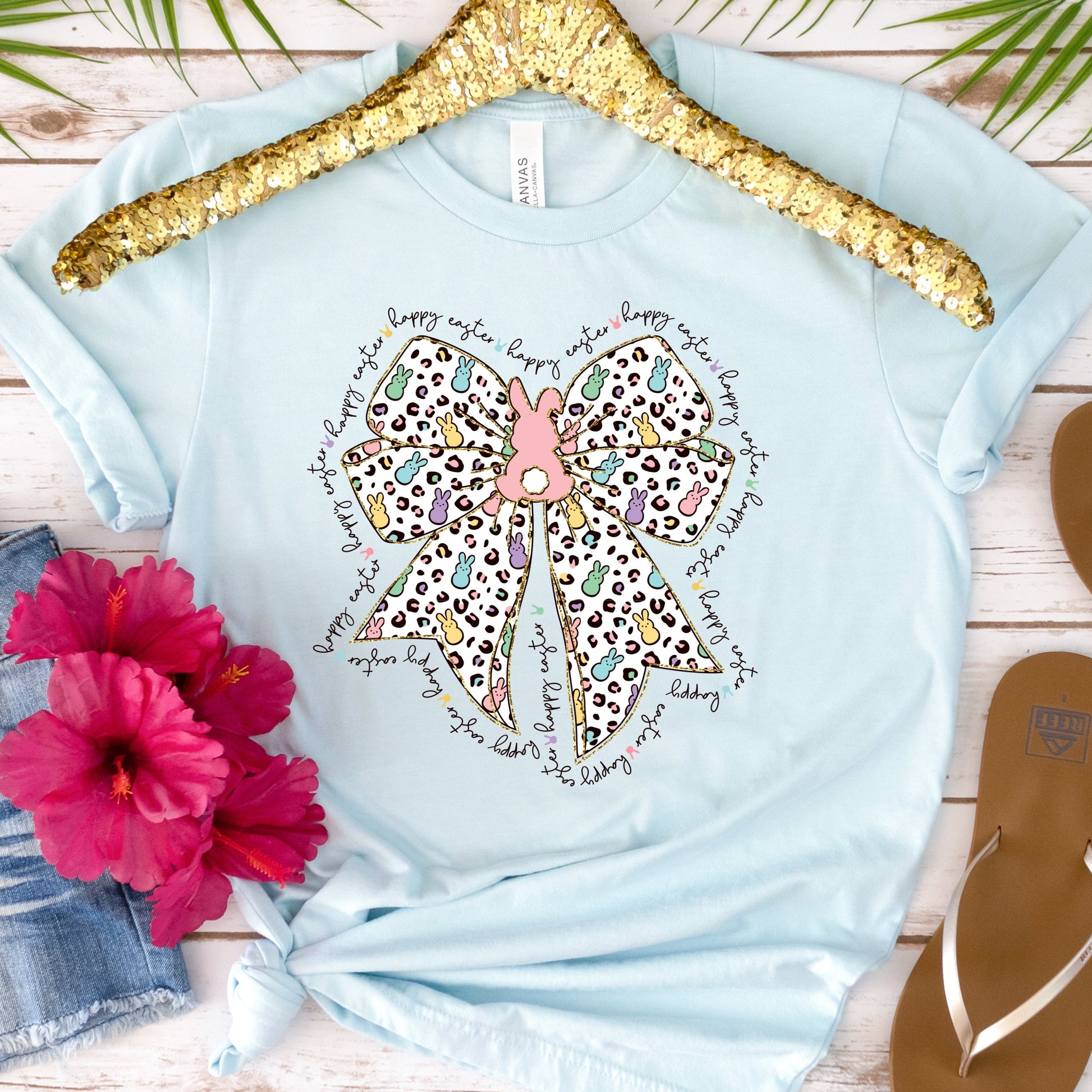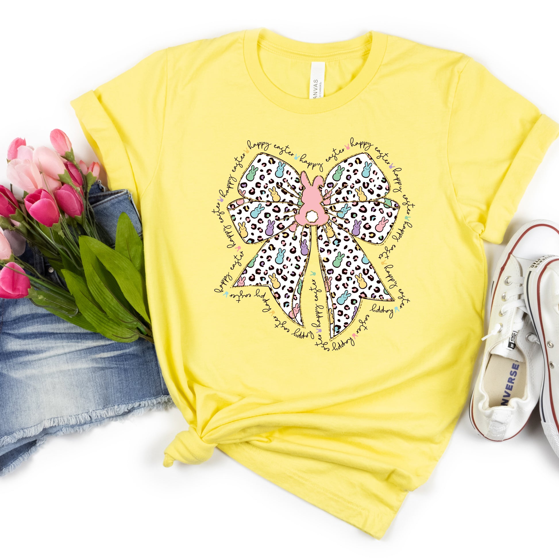 Get ready to hop into the Easter spirit with the Happy Easter Bow and Peep Tshirt! This playful tshirt features a fun and quirky design of a bow and peeps, sure to bring a smile to your face. Perfect for spreading Easter cheer and showing off your festive side.