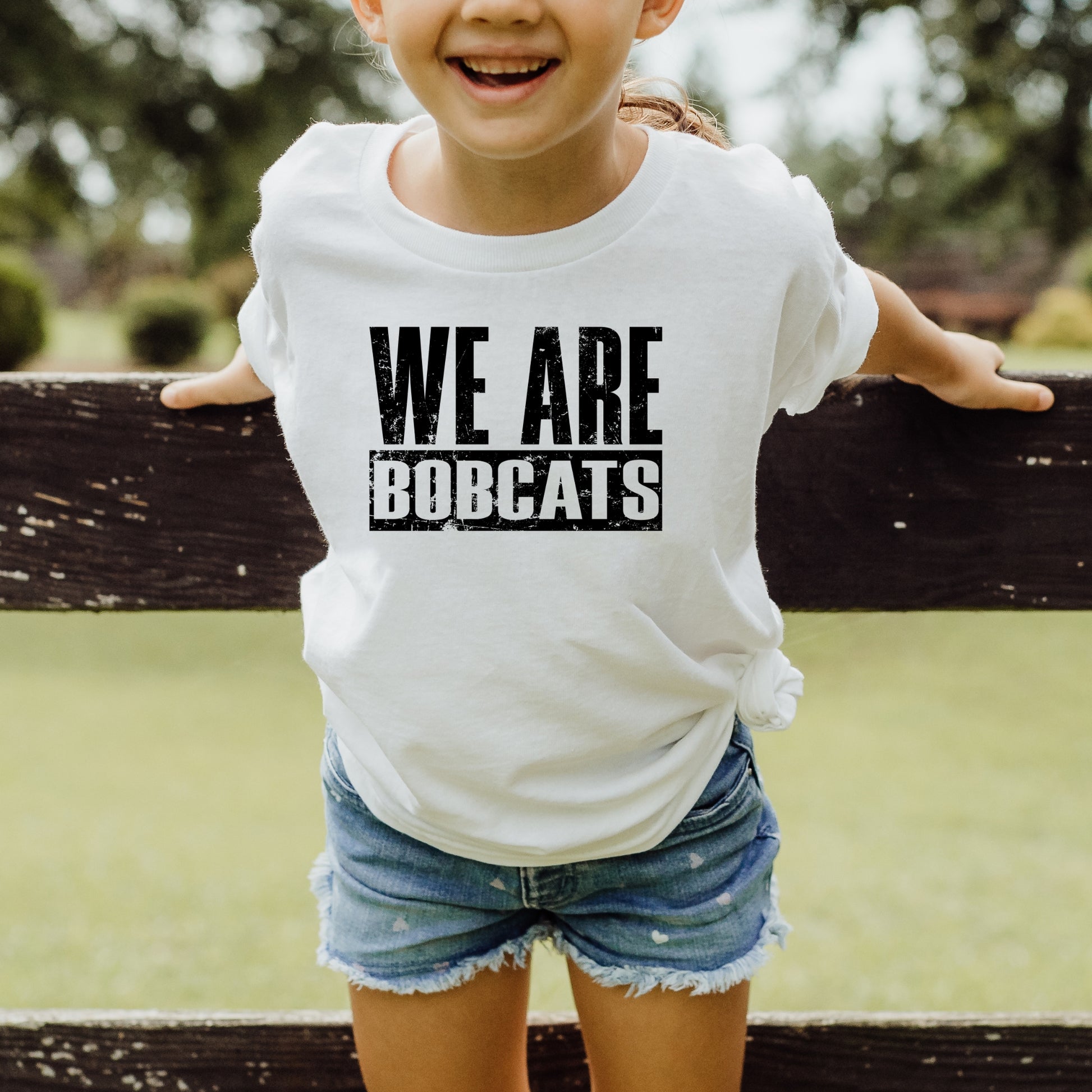 Show off your school spirit in style with our minimalist "We are Bobcats" youth tshirt. Embrace your inner bobcat with this quirky and fun shirt. Perfect for showing off at games or just everyday wear. Go Bobcats!