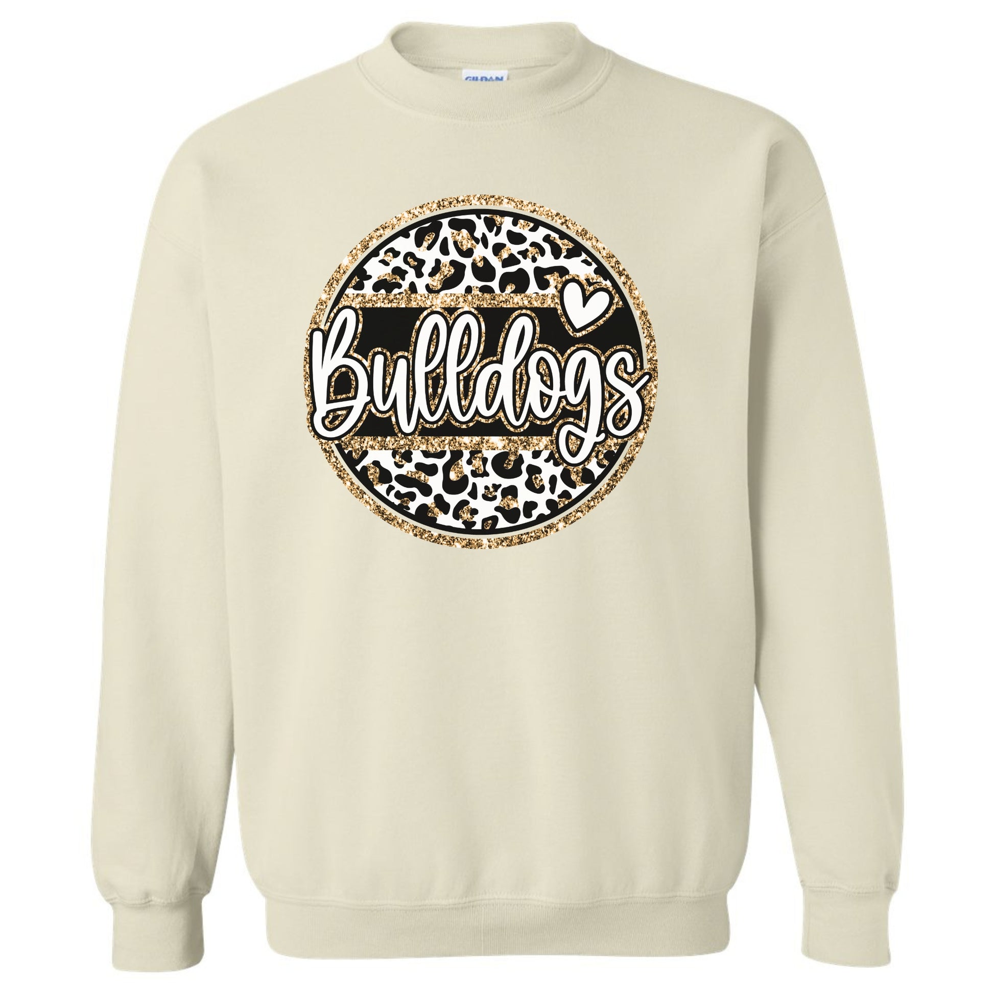 Bulldogs Circle Print with Cheetah Gold and Black Design Sweatshirt