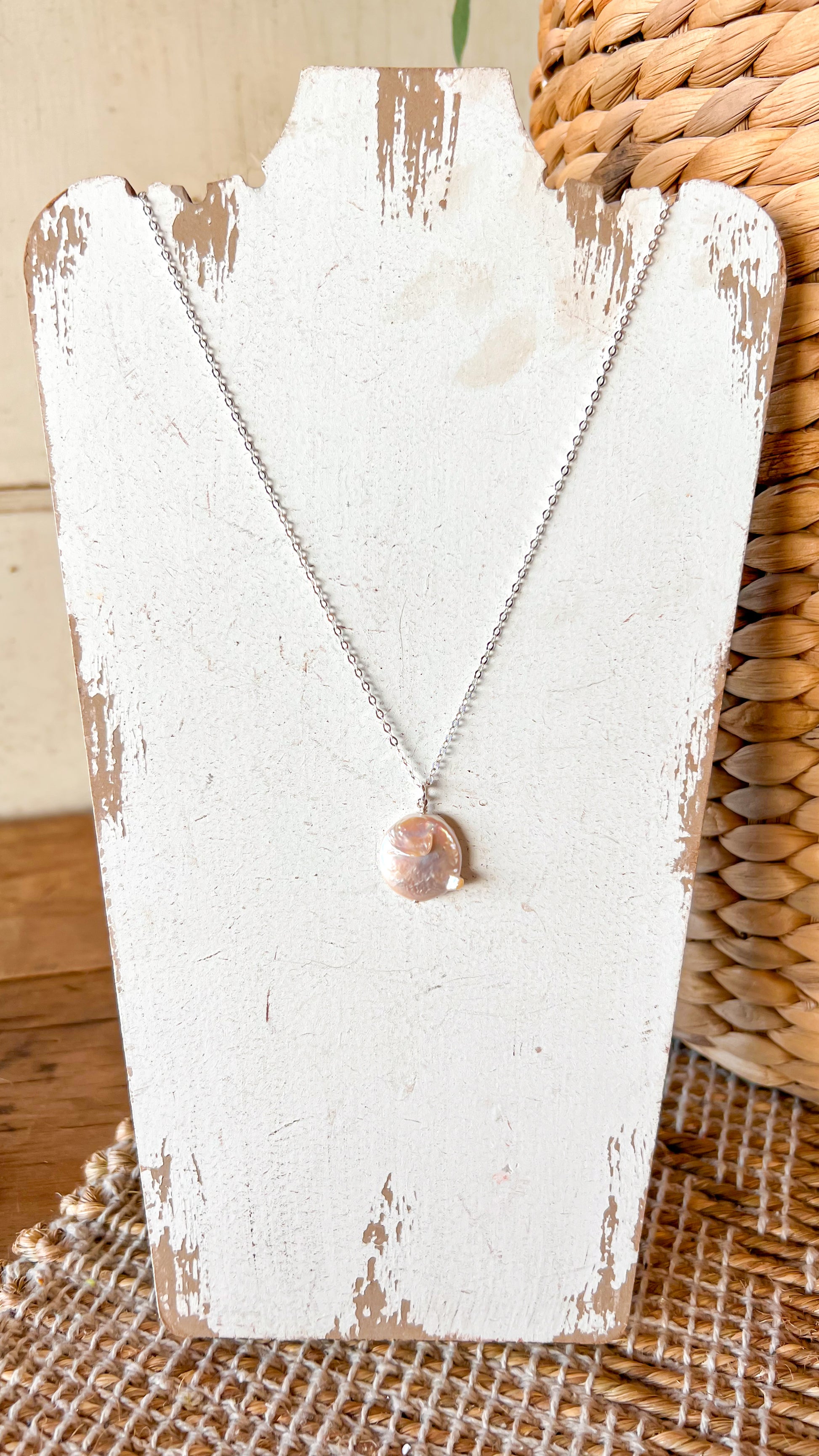 Champaign Coin Pearl Pendant Sterling Silver Necklace Perfect for Layering