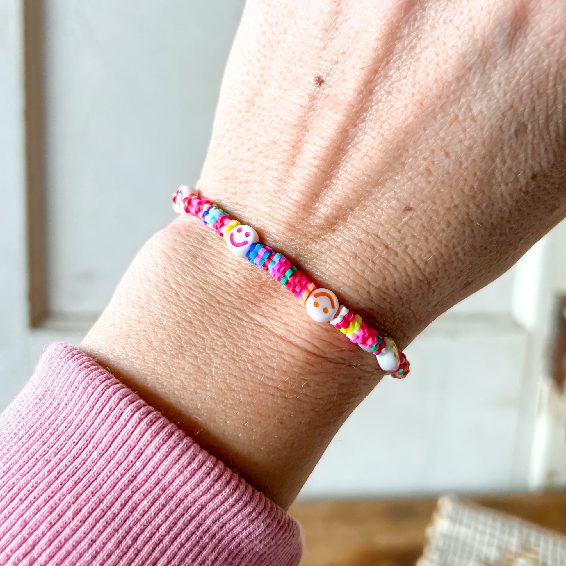 Clay Heishi Bead Smiley Face Bracelet
