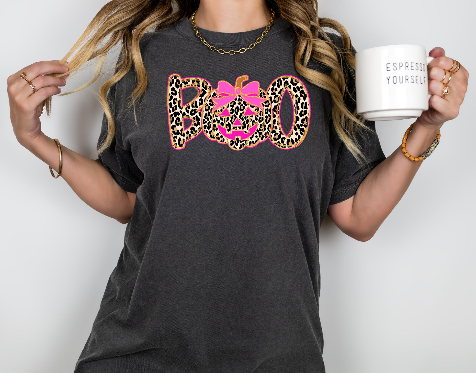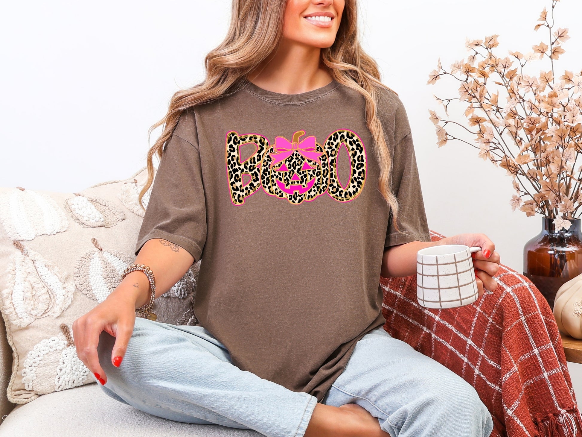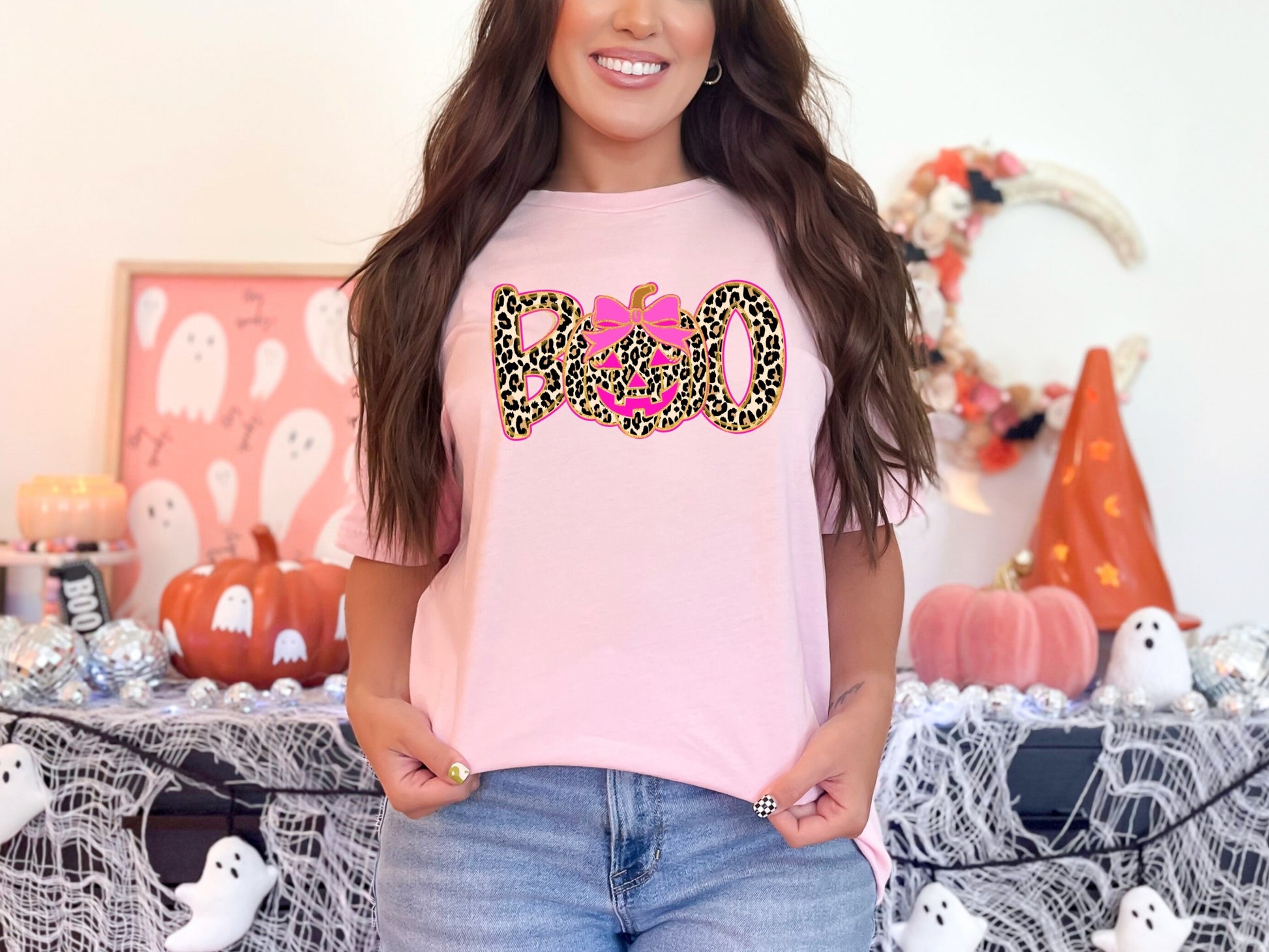 BOO Leopard Halloween T-Shirt – Pink Pumpkin Graphic Tee