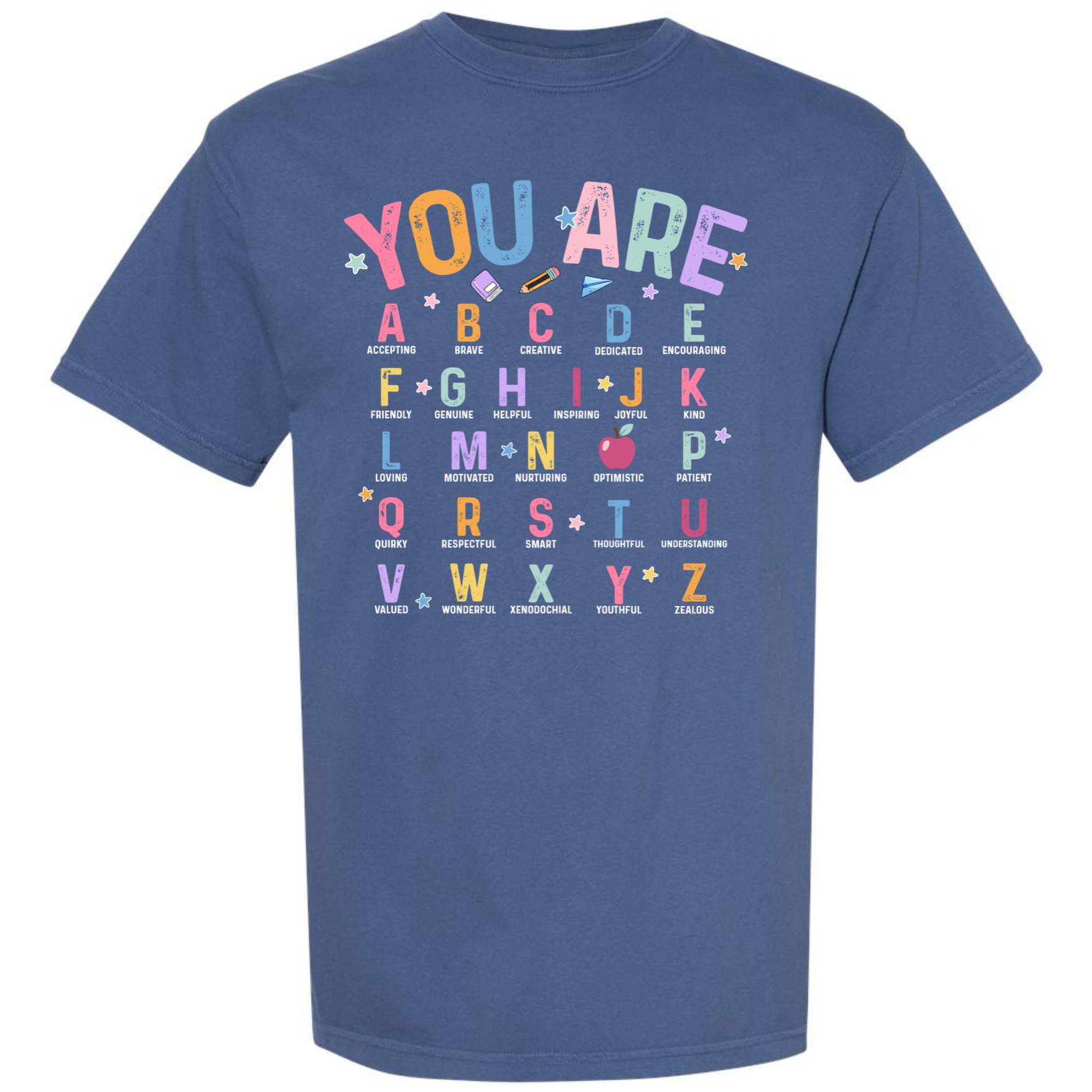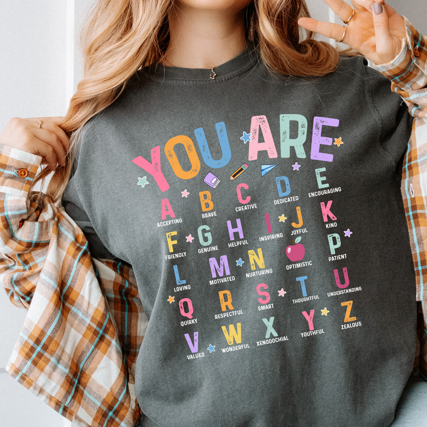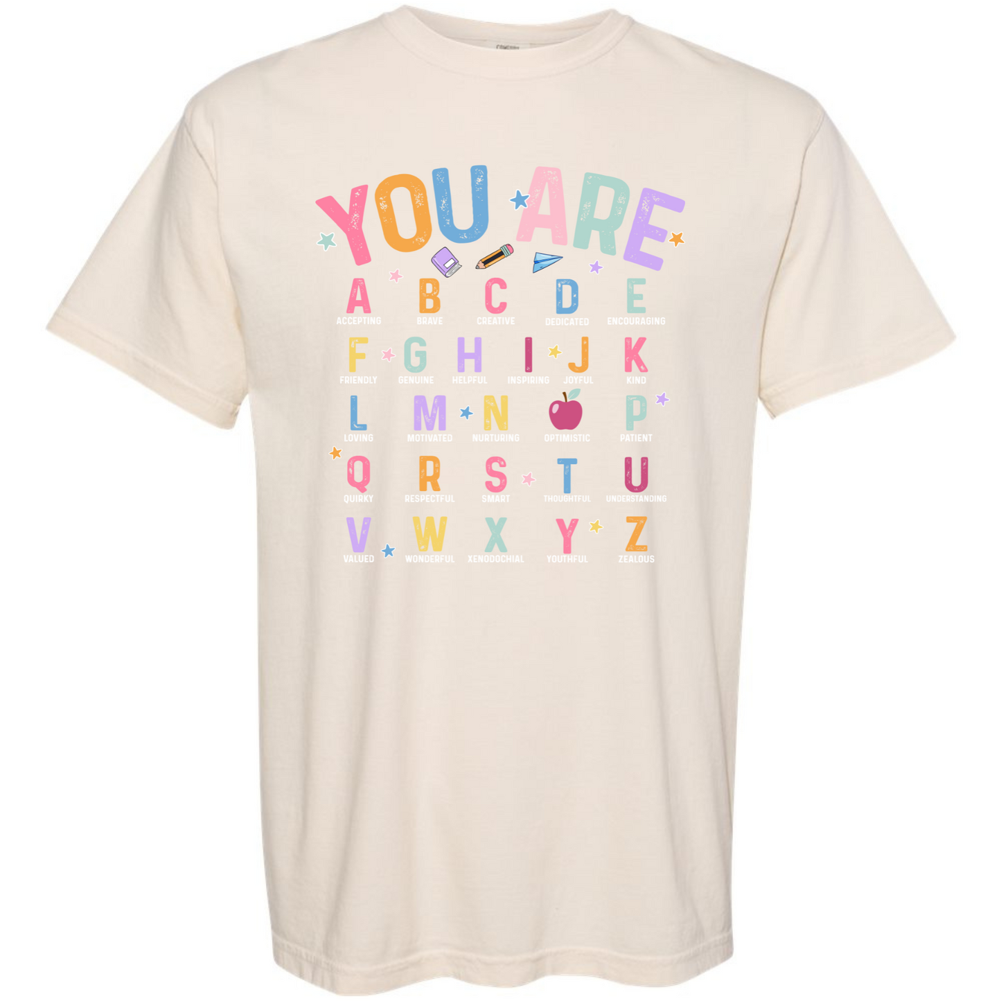 You Are Alphabet Comfort Colors Teacher Tee Tshirt Back To School Team Shirt