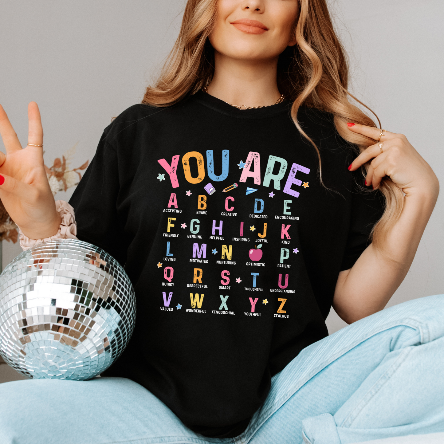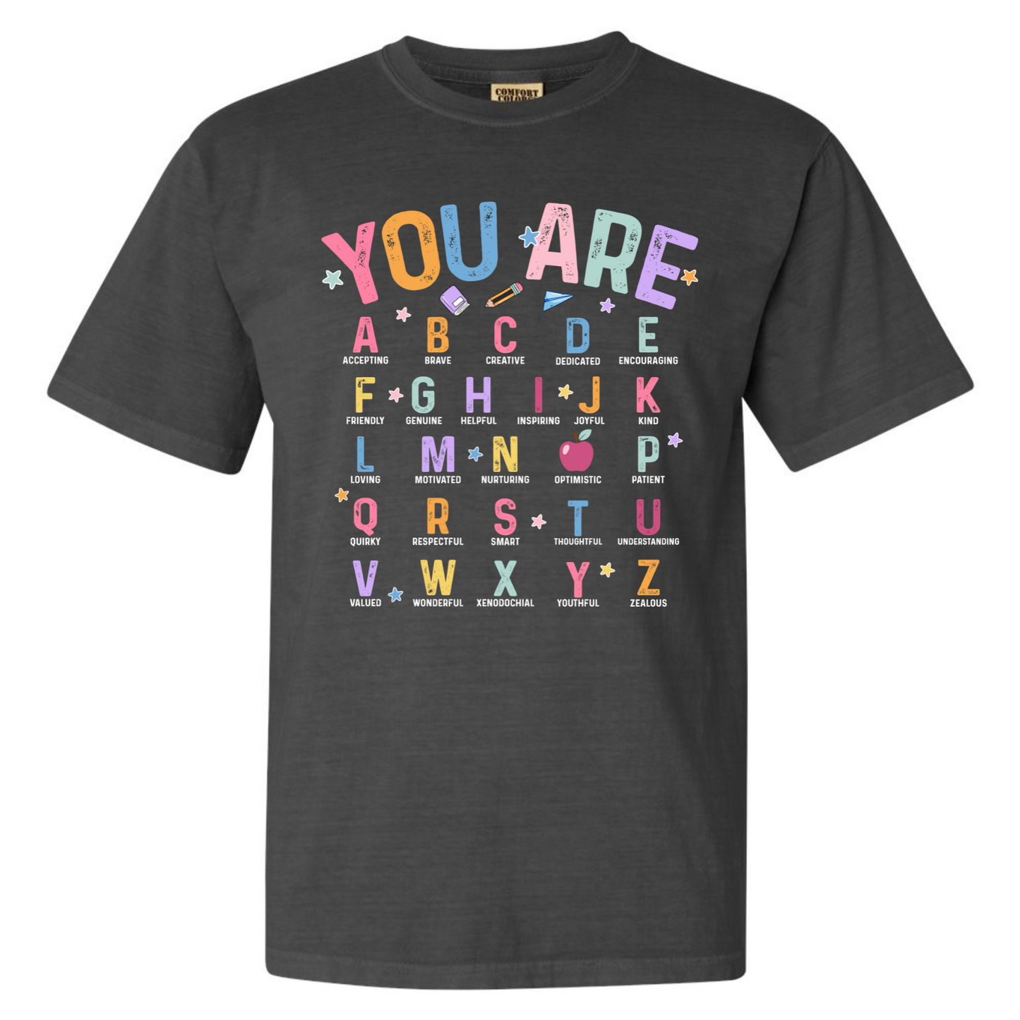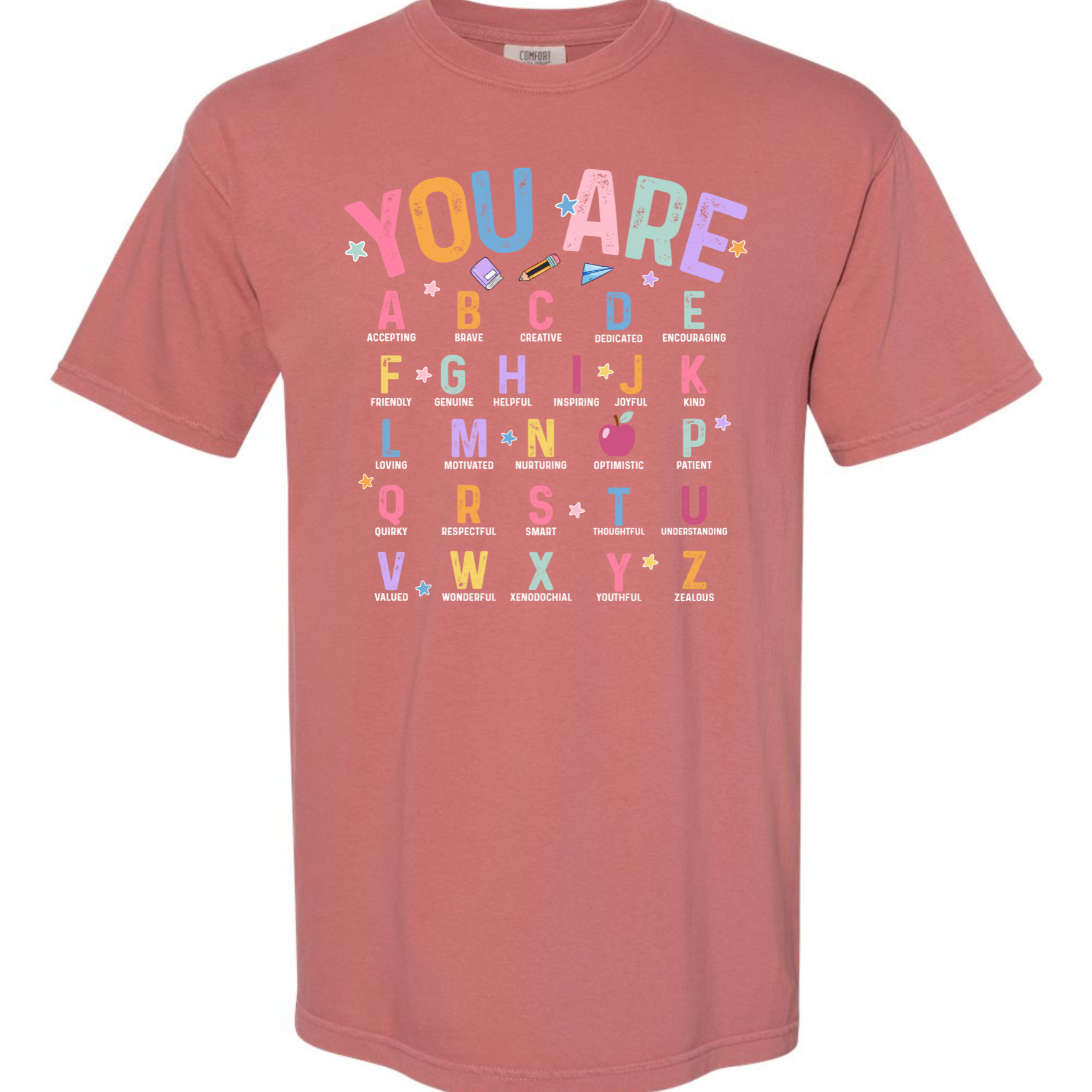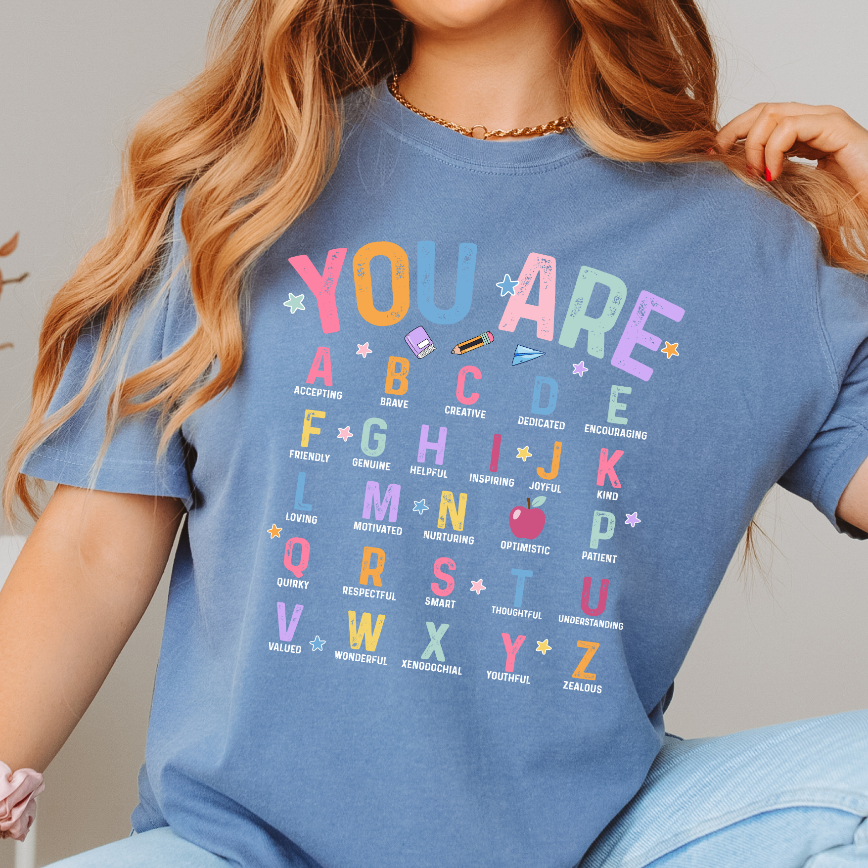 You Are Alphabet Comfort Colors Teacher Tee Tshirt Back To School Team Shirt