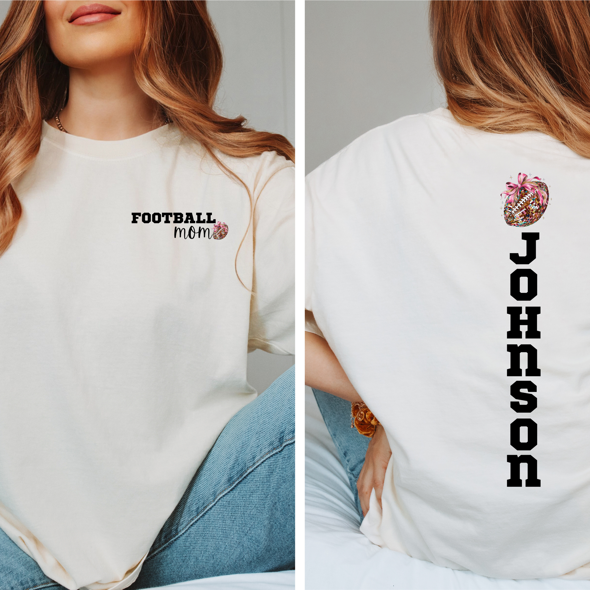 Comfort Colors Custom name and number Pink Disco Ball Football Tee Tshirt Back To School Team Shirt