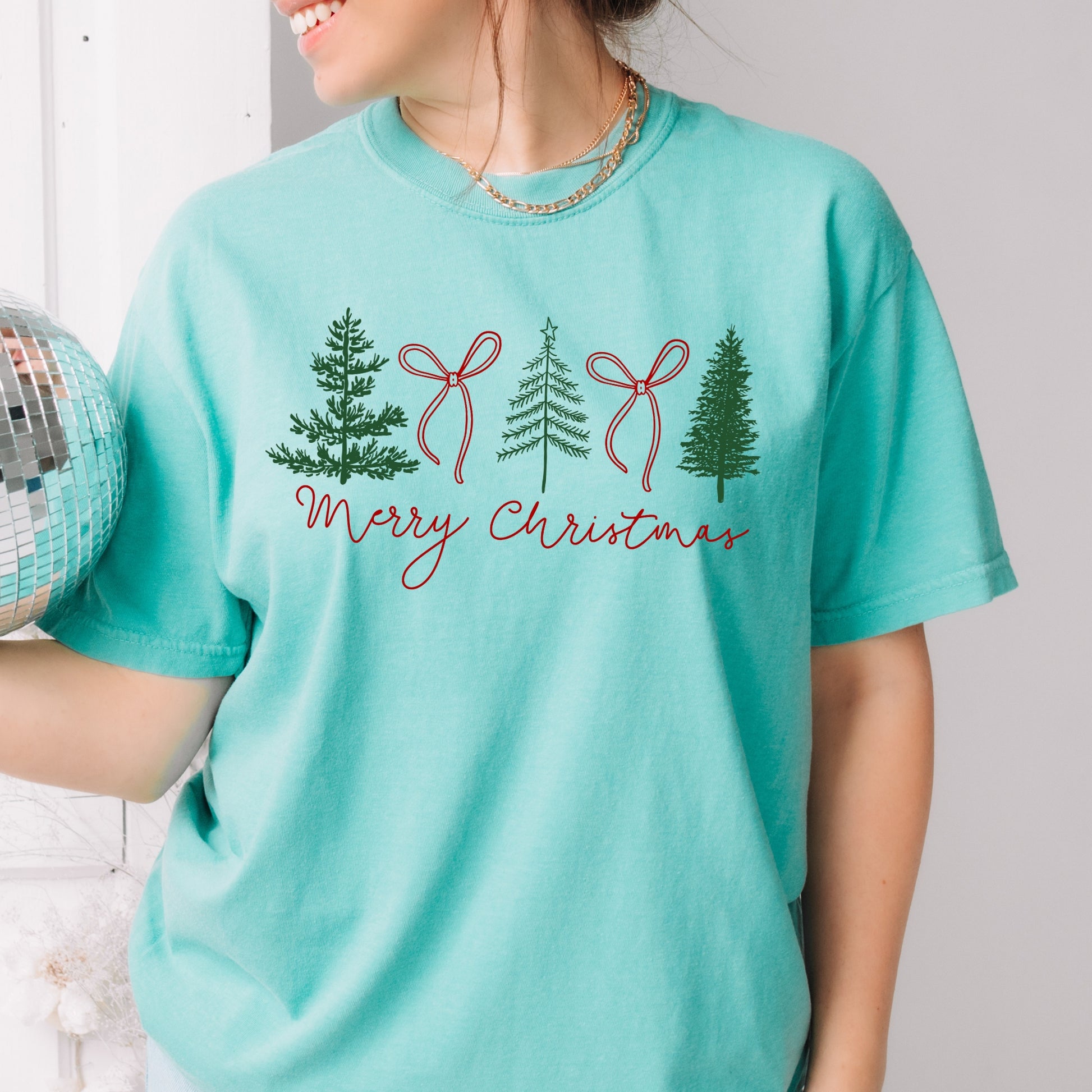 Merry Christmas Bows and Trees Tee – Comfort Colors