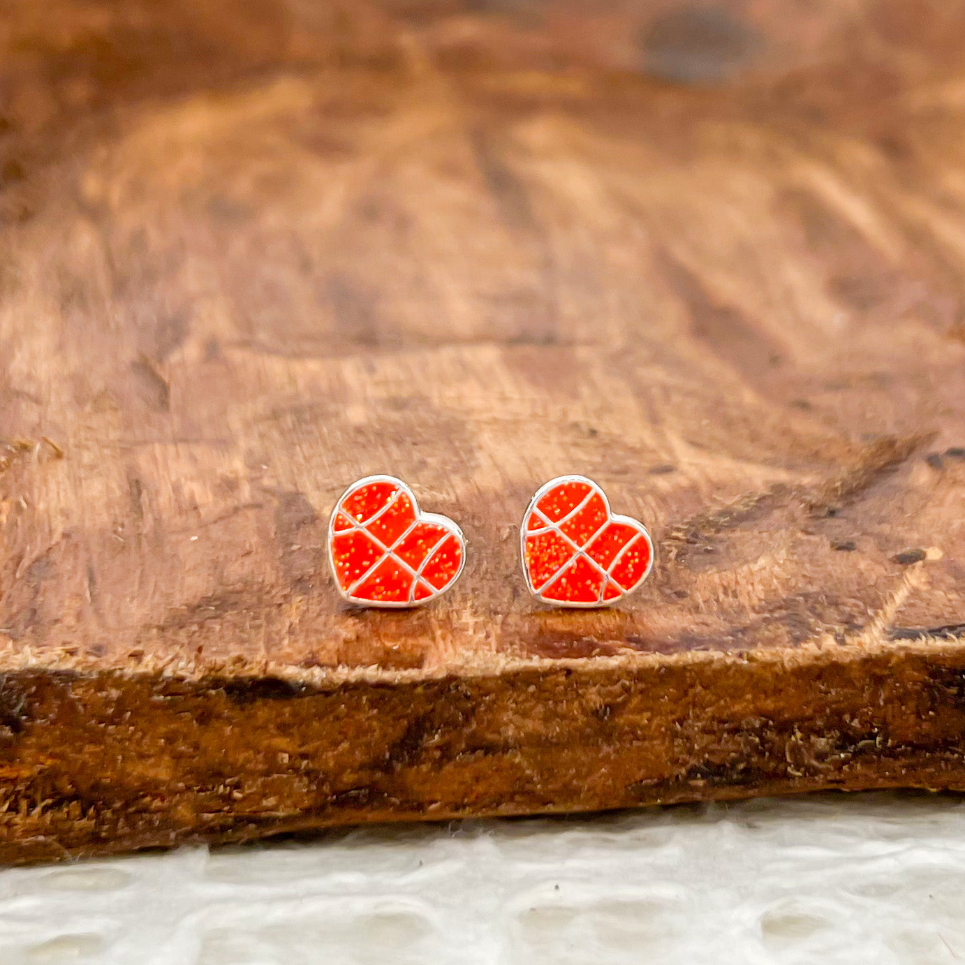 Show off your team spirit with our glittery basketball heart sterling silver stud earrings! Perfect for game day or everyday wear, these stud earrings are made of high-quality sterling silver and feature a sparkling basketball design. Support your team in style with these must-have earrings!