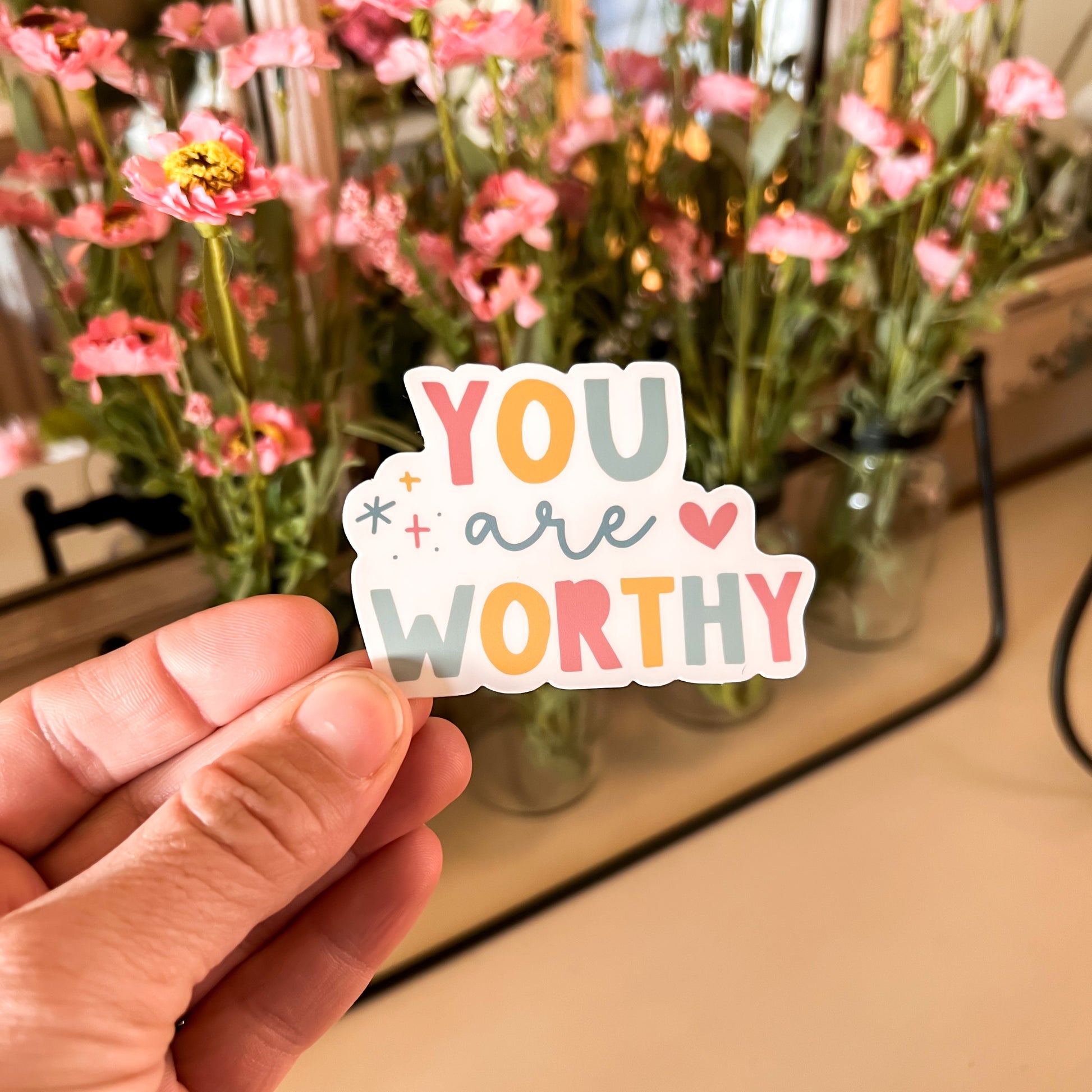 Show the world that you are worthy! Made of thick, durable vinyl, this sticker will ensure your message stays loud and proud for years to come. Show the world that you believe in yourself and are worthy of being treated with respect. With You are Worthy, you can make a statement that stands out from the crowd!