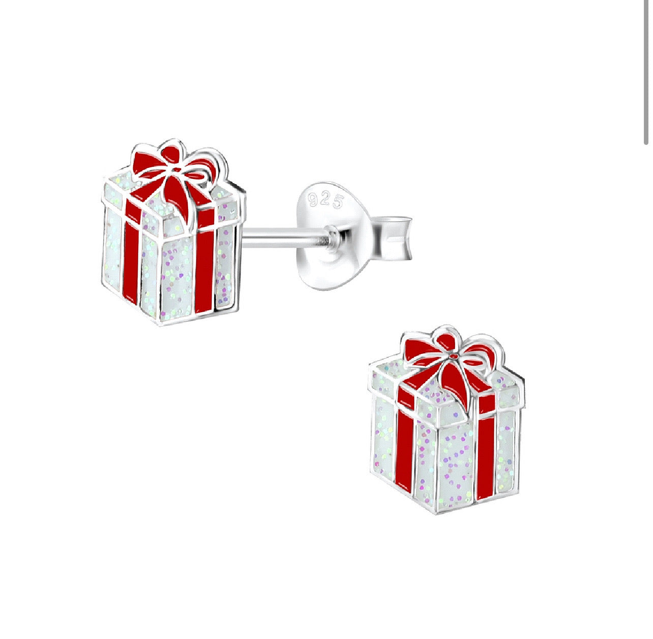 Glitter Christmas Present Sterling Silver Earring Studs