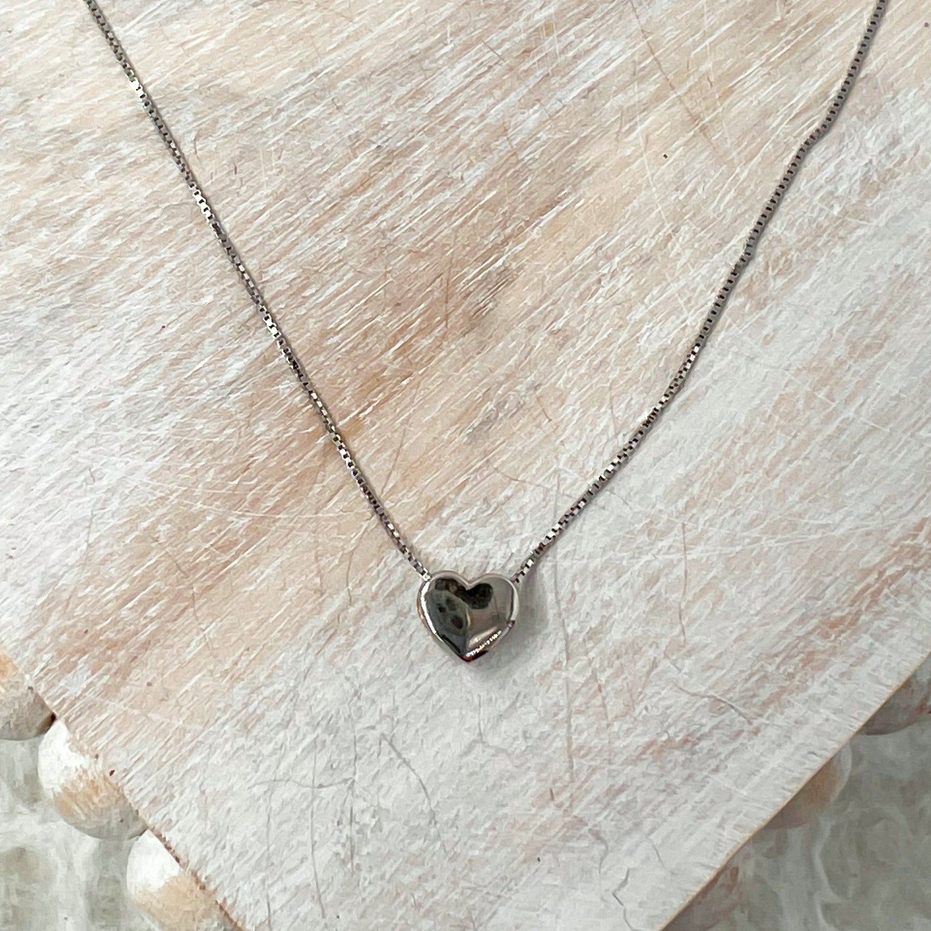 Solid Sterling Silver Heart 16 inch Necklace