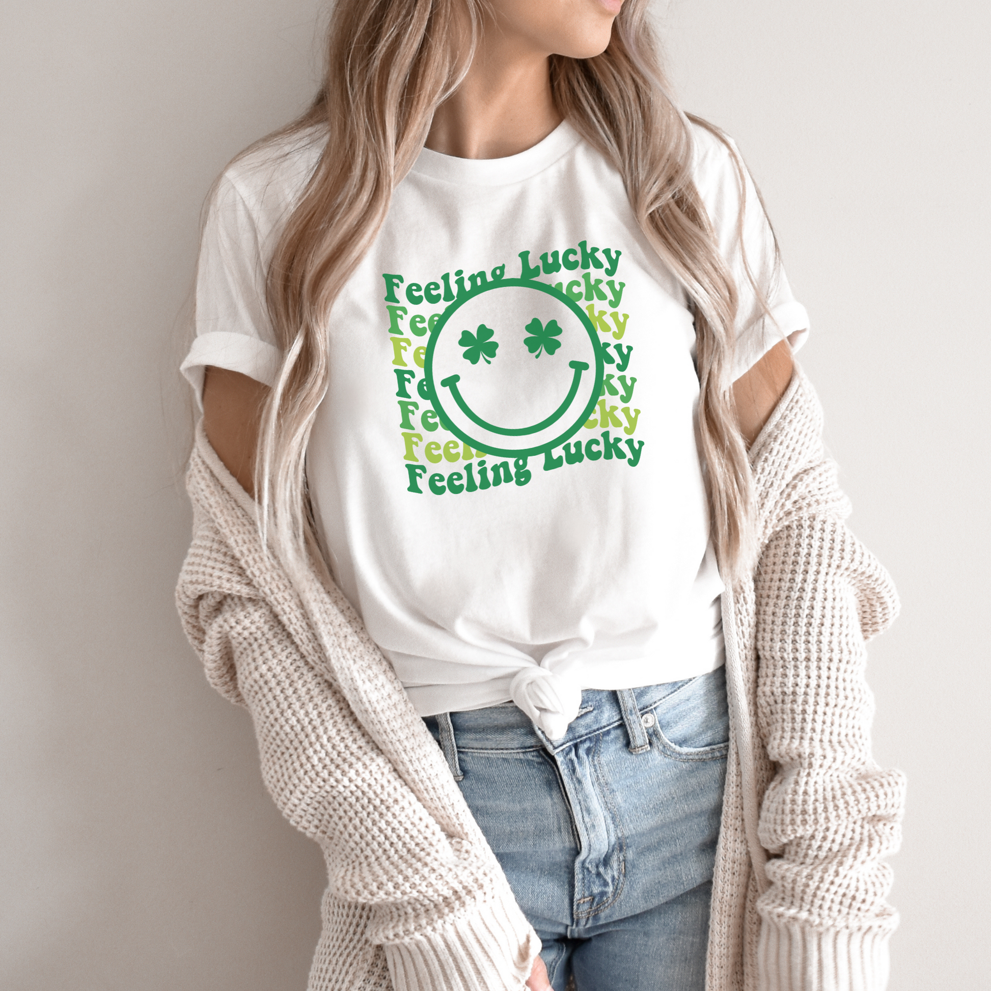 Smiley Face Feeling Lucky Saint Patrick's Day Women's Graphic Tee