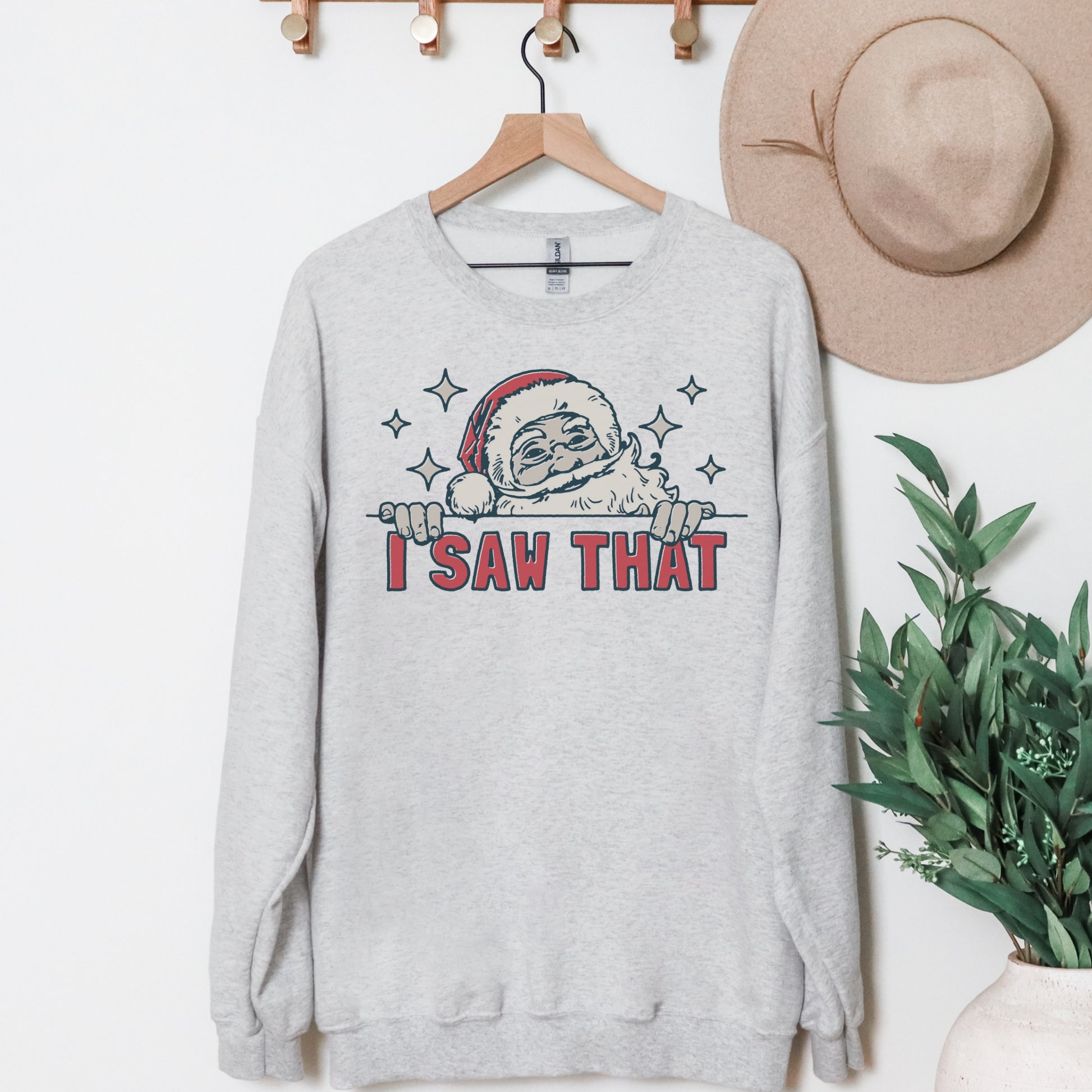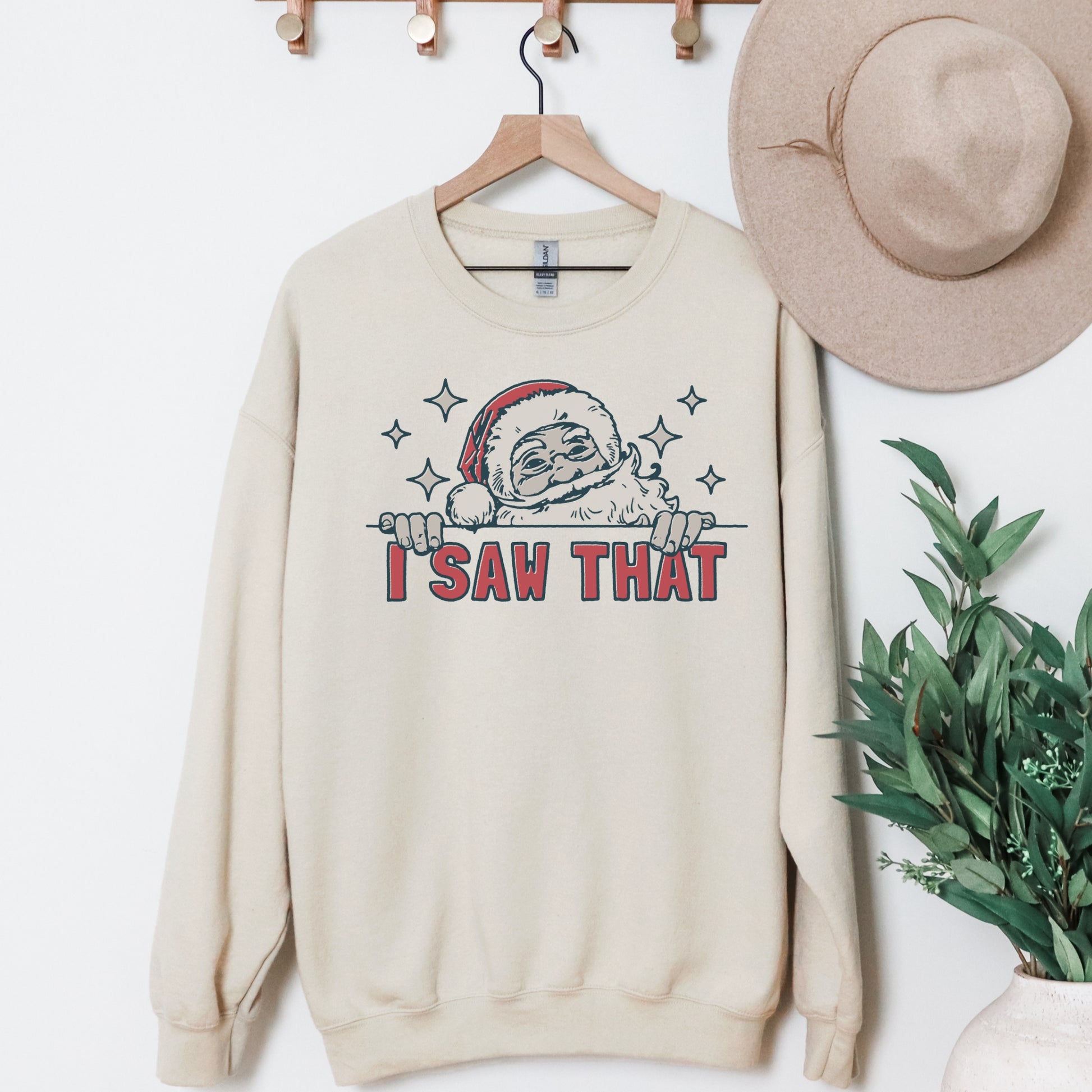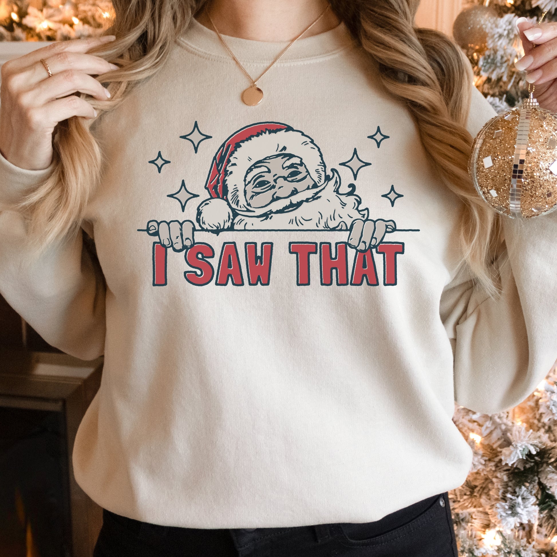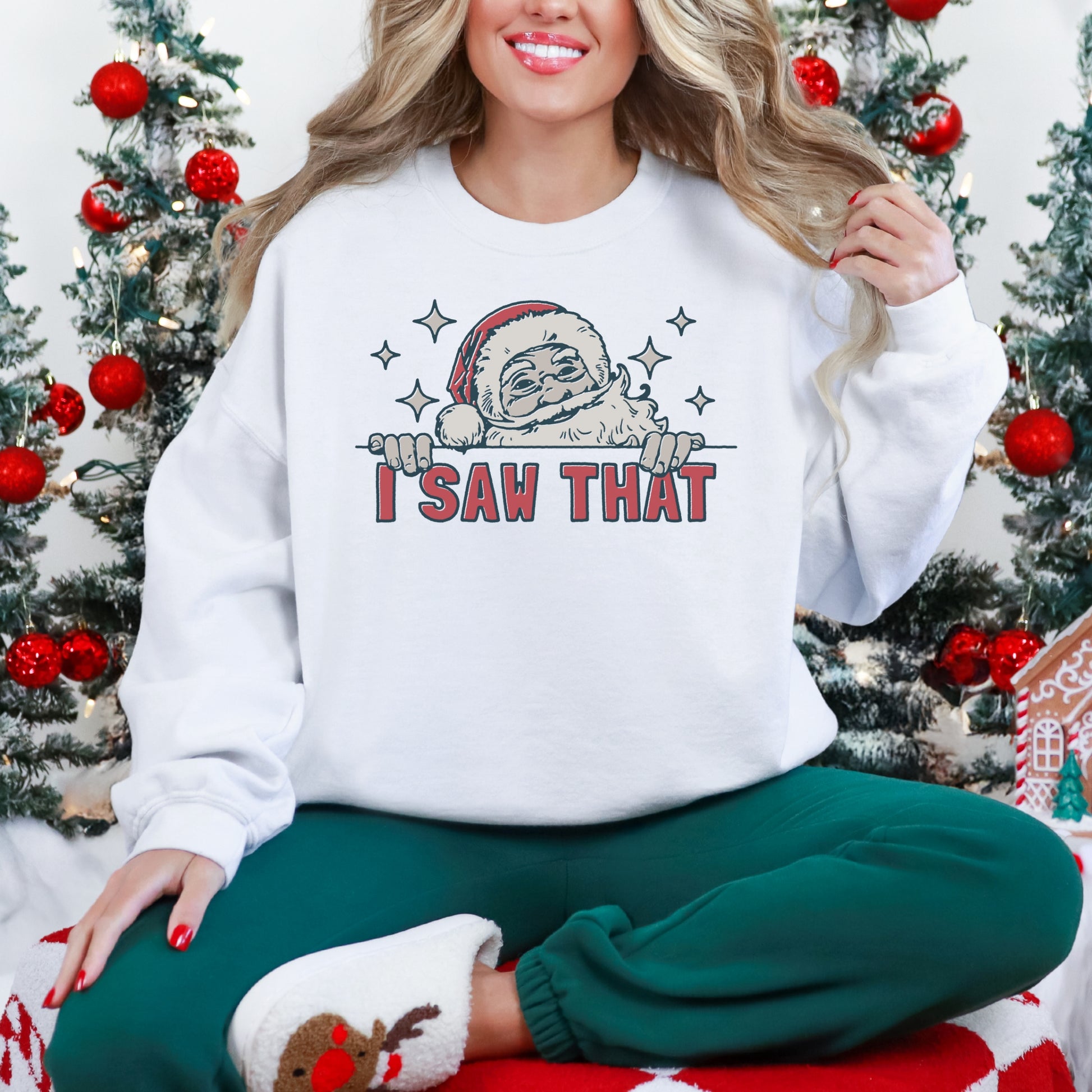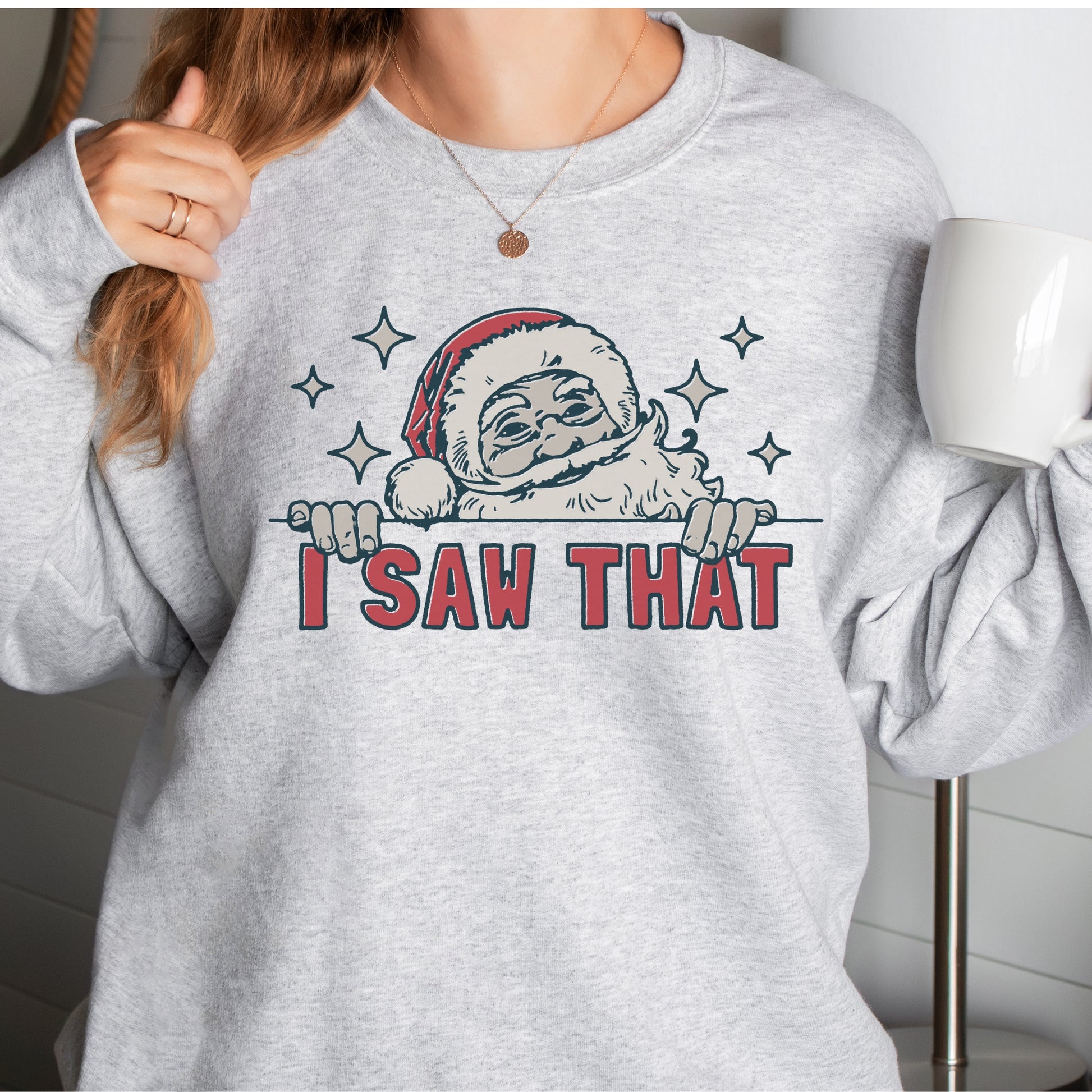 Bring a little humor to your holiday wardrobe with this funny Christmas sweatshirt! Featuring Santa himself catching you in the act, the “I Saw That” message is a playful reminder that he’s always watching! Made with an ultra-soft, cozy fabric, this sweatshirt is perfect for snuggling up by the fire or spreading laughs at your holiday gatherings. Super comfy, durable, and sure to be a festive favorite, it’s ideal for anyone who loves a good laugh with a side of Christmas cheer!