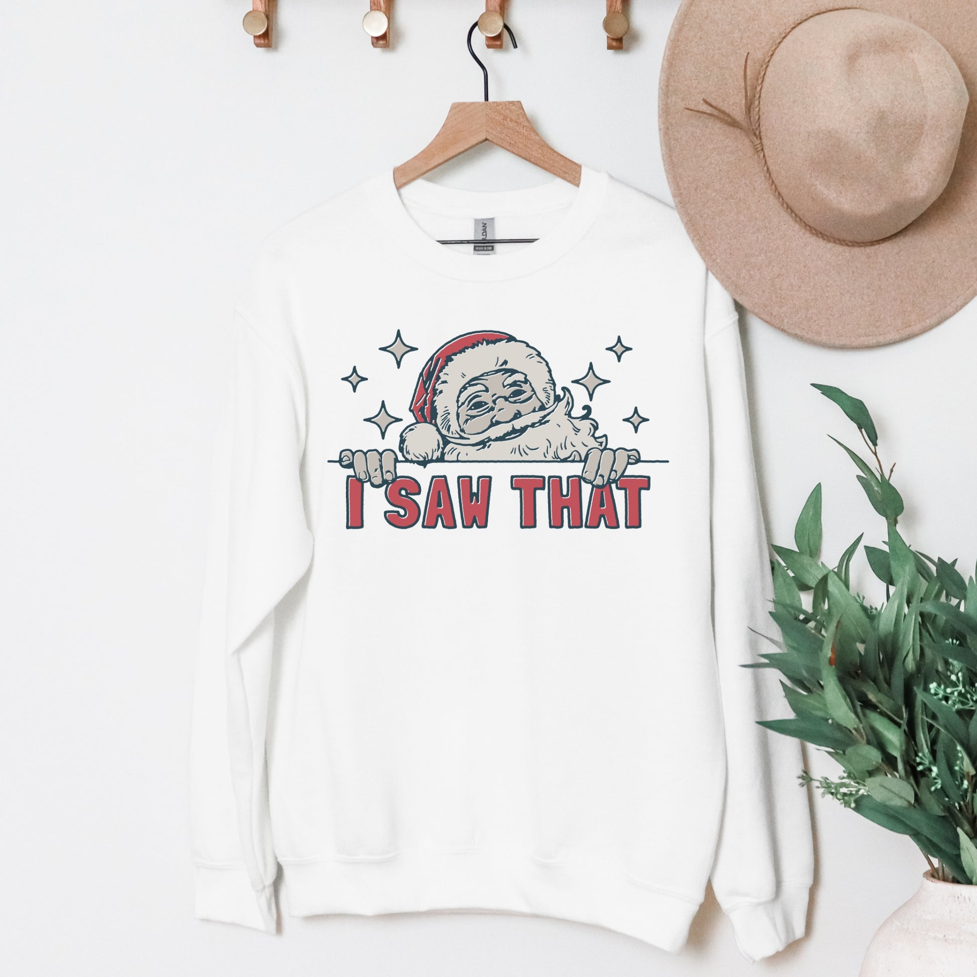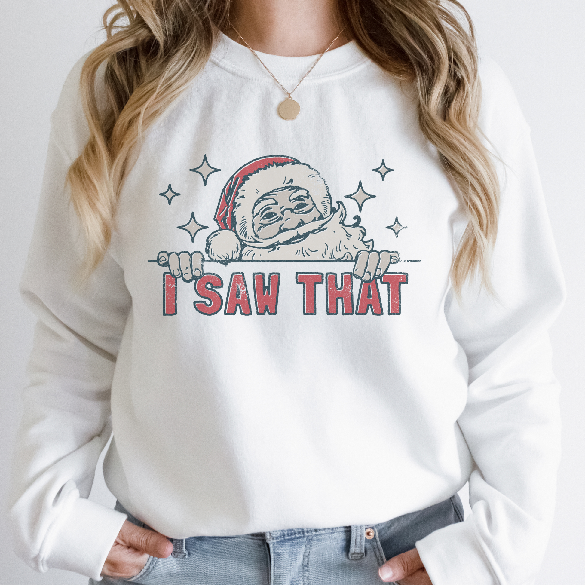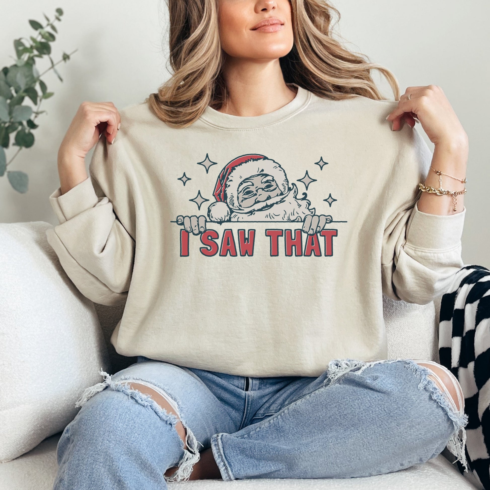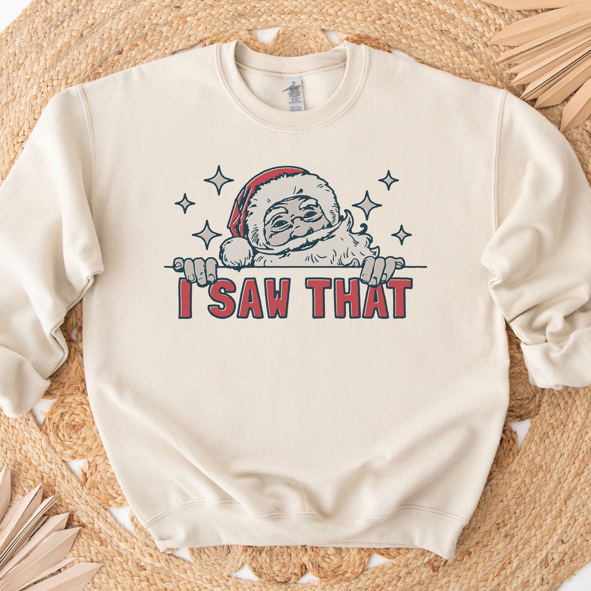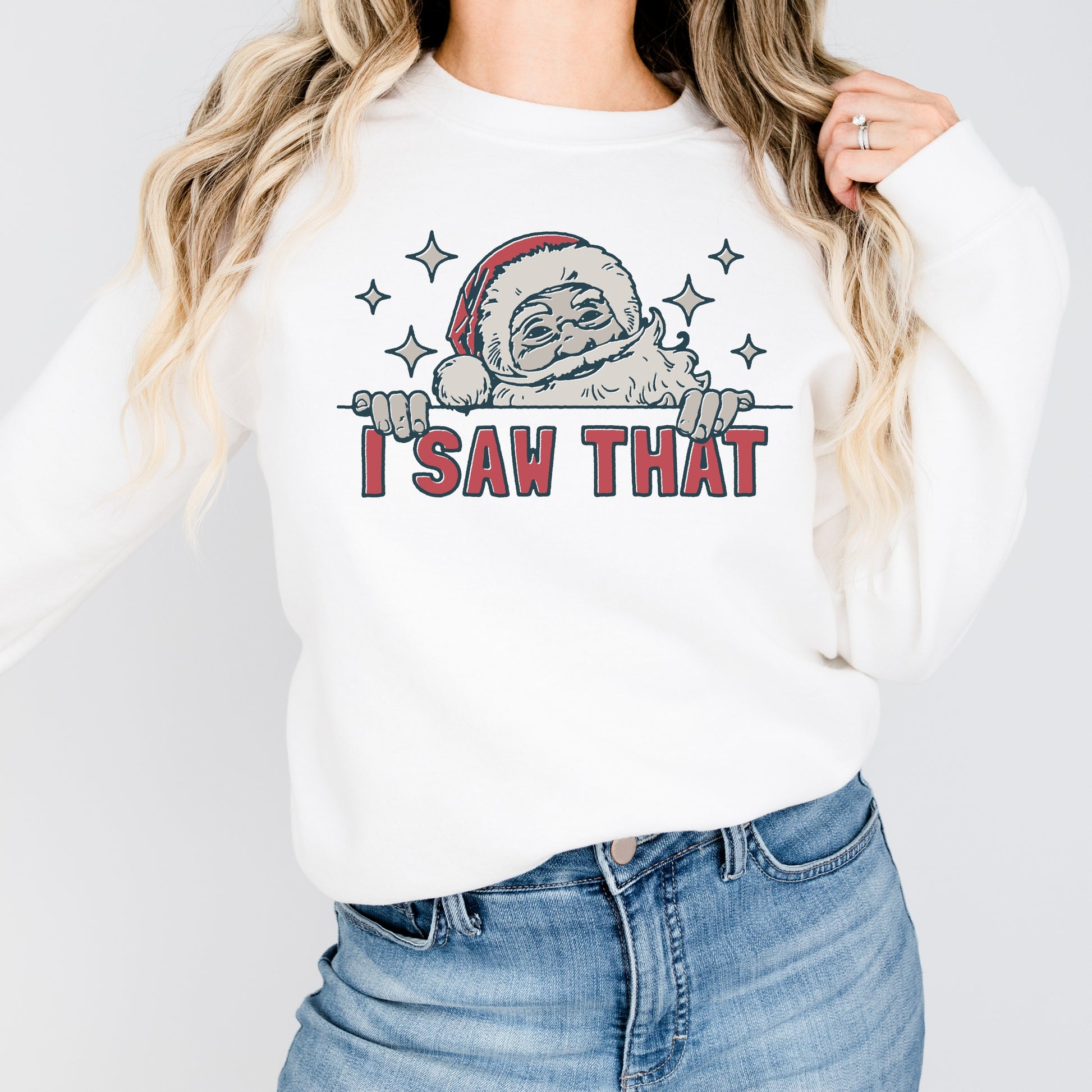 Bring a little humor to your holiday wardrobe with this funny Christmas sweatshirt! Featuring Santa himself catching you in the act, the “I Saw That” message is a playful reminder that he’s always watching! Made with an ultra-soft, cozy fabric, this sweatshirt is perfect for snuggling up by the fire or spreading laughs at your holiday gatherings. Super comfy, durable, and sure to be a festive favorite, it’s ideal for anyone who loves a good laugh with a side of Christmas cheer!