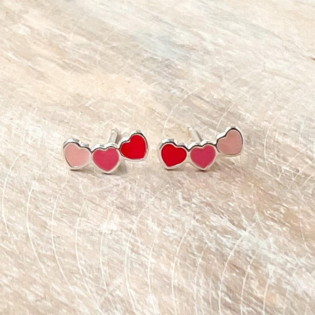 Triple Heart Sterling Silver Stud Earrings