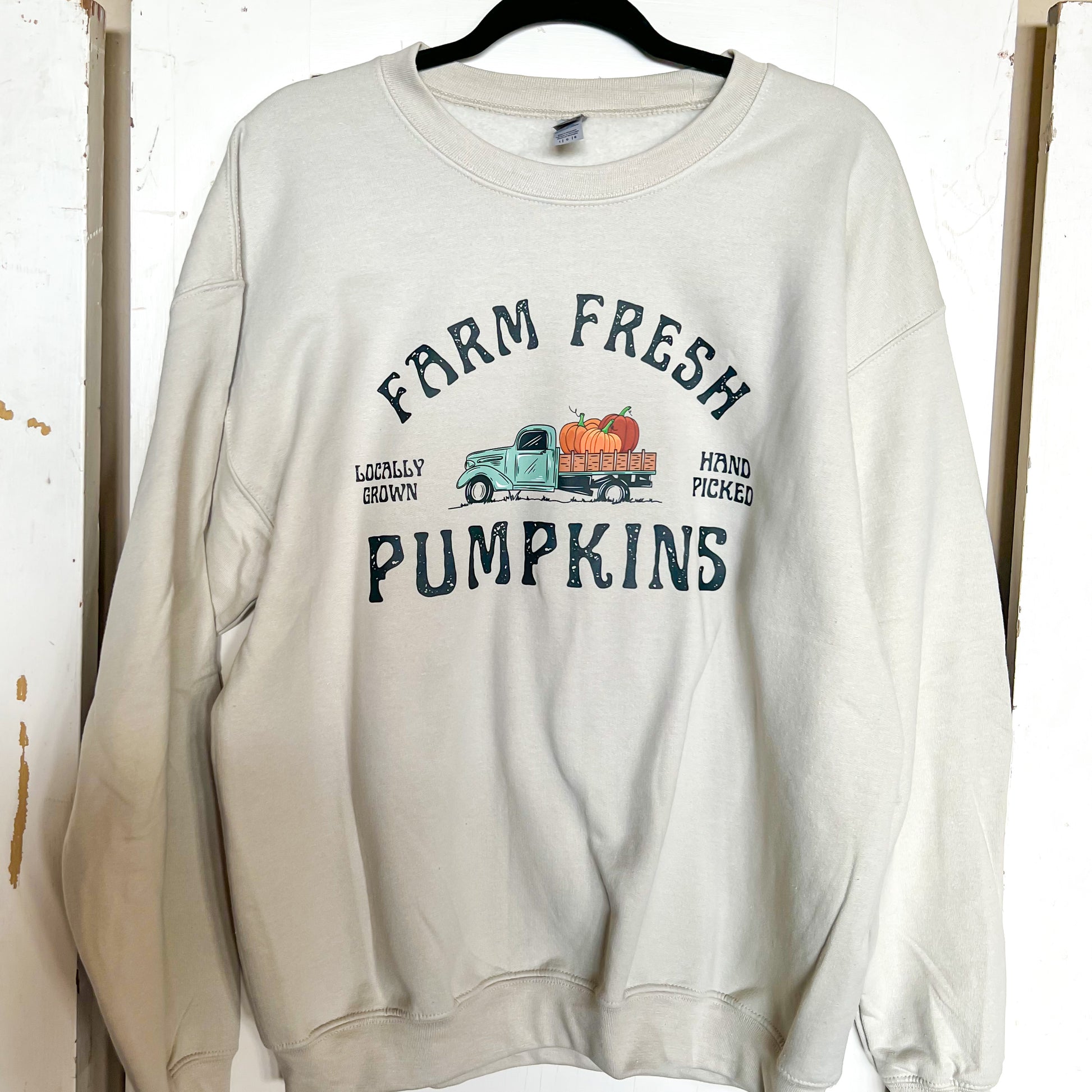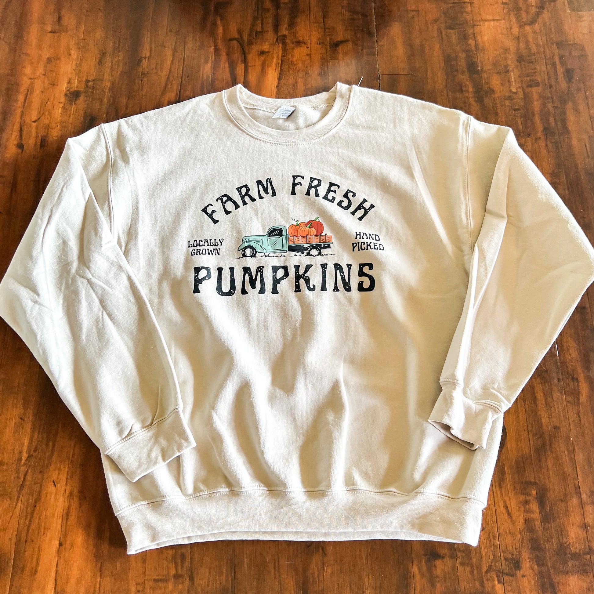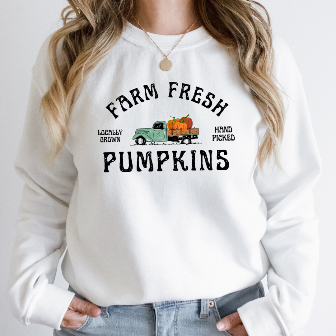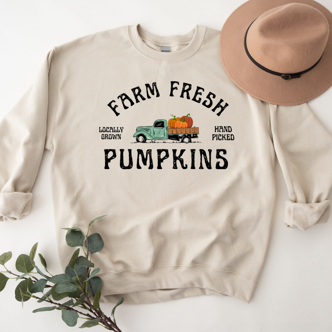Introducing our Farm Fresh Pumpkins Sweatshirt – the epitome of cozy comfort and rustic charm. This delightful sweatshirt combines the ultimate softness with a charming pumpkin and truck-themed design, making it the ideal addition to your autumn wardrobe.