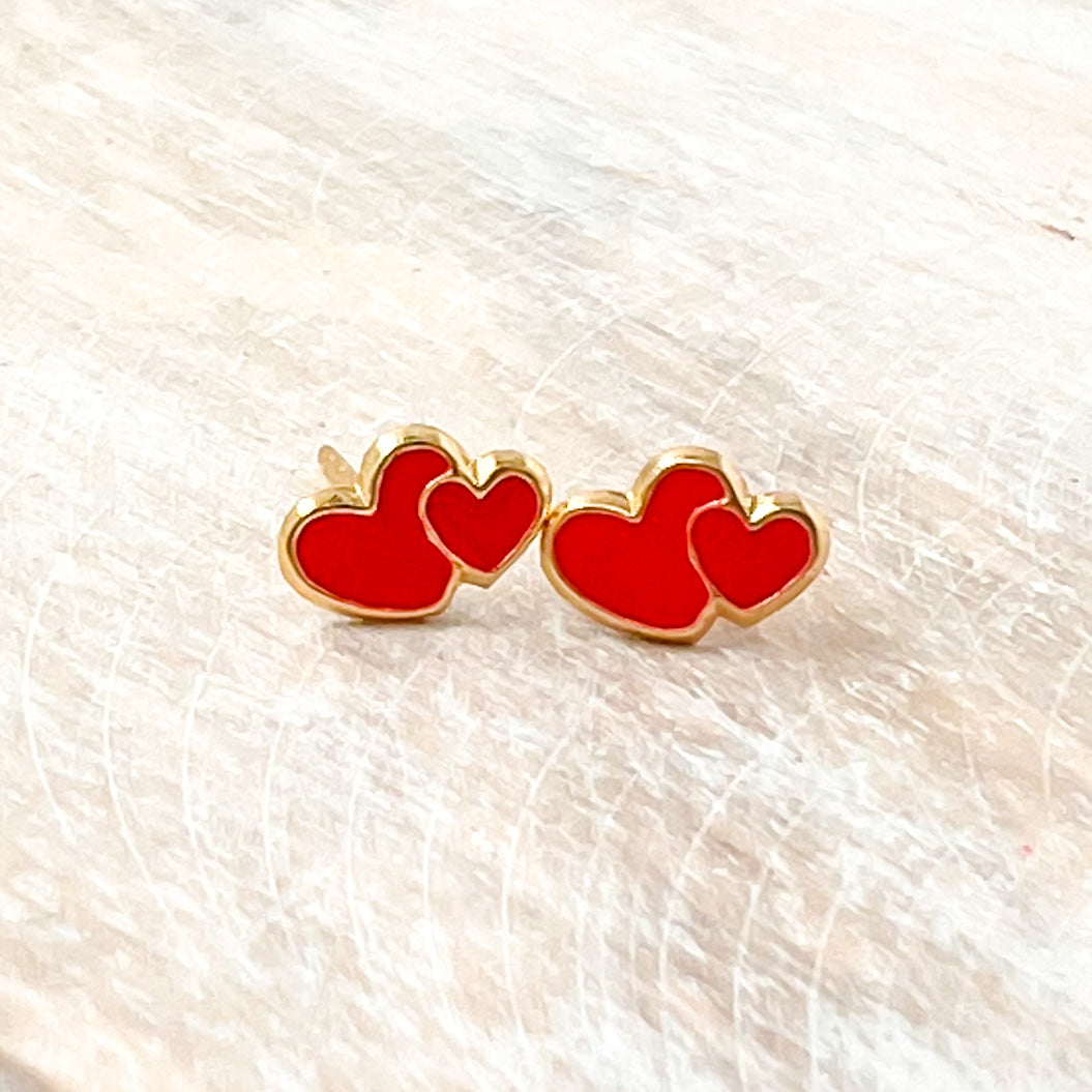 Gold with Red Hearts Sterling Silver Stud Earrings