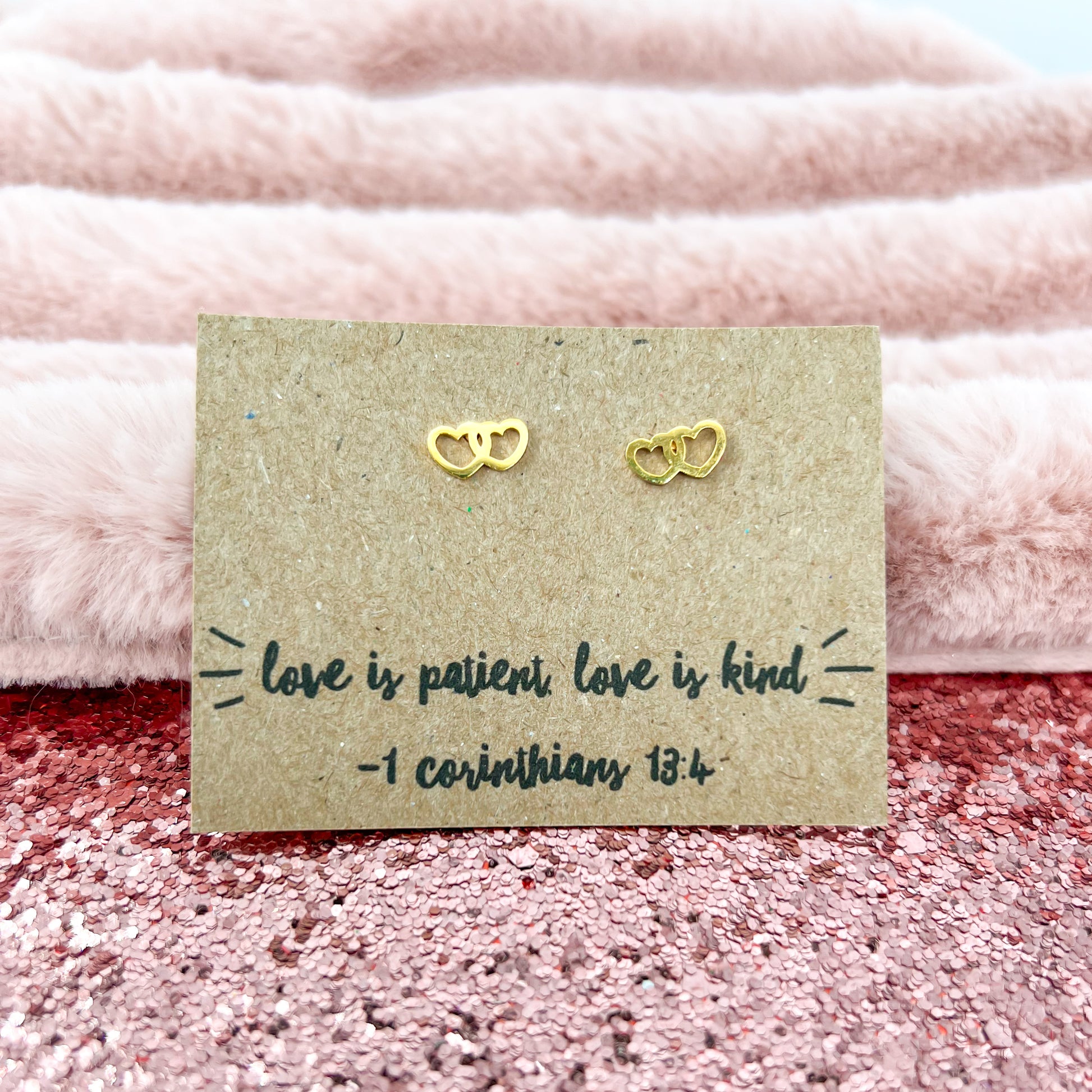 Stainless Steel Double Heart Earrings...Love is Patient Love is Kind