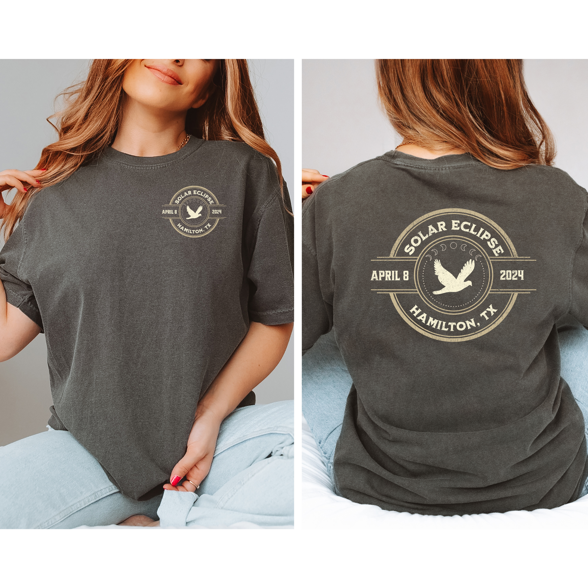 Celebrate a once in a lifetime event with our Hamilton, TX Solar Eclipse tshirt! The dove in the center symbolizes the dove capital of the world. An unforgettable keepsake for the passionate eclipse chaser in you!