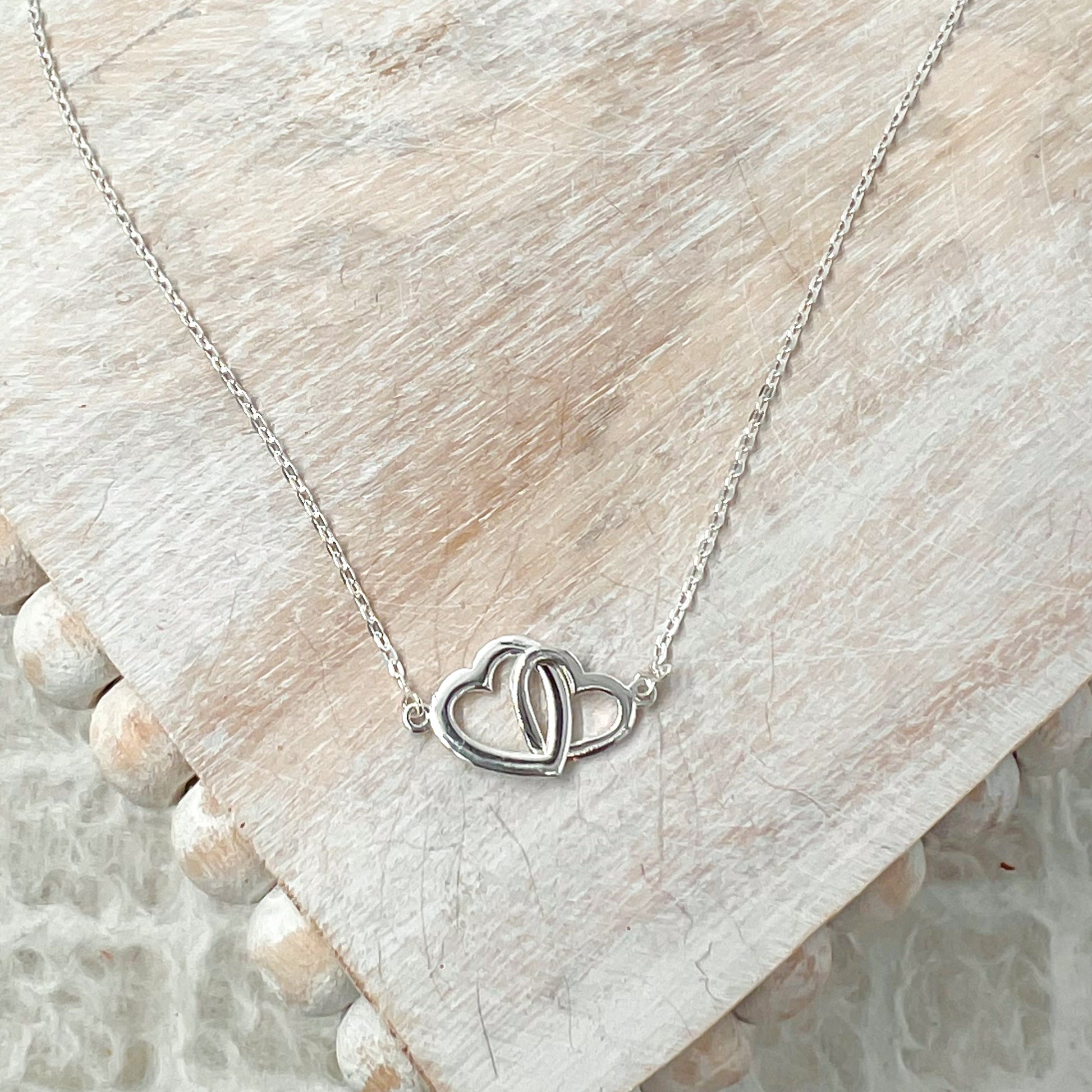 Interlocking Sterling Silver Heart 16 inch Necklace