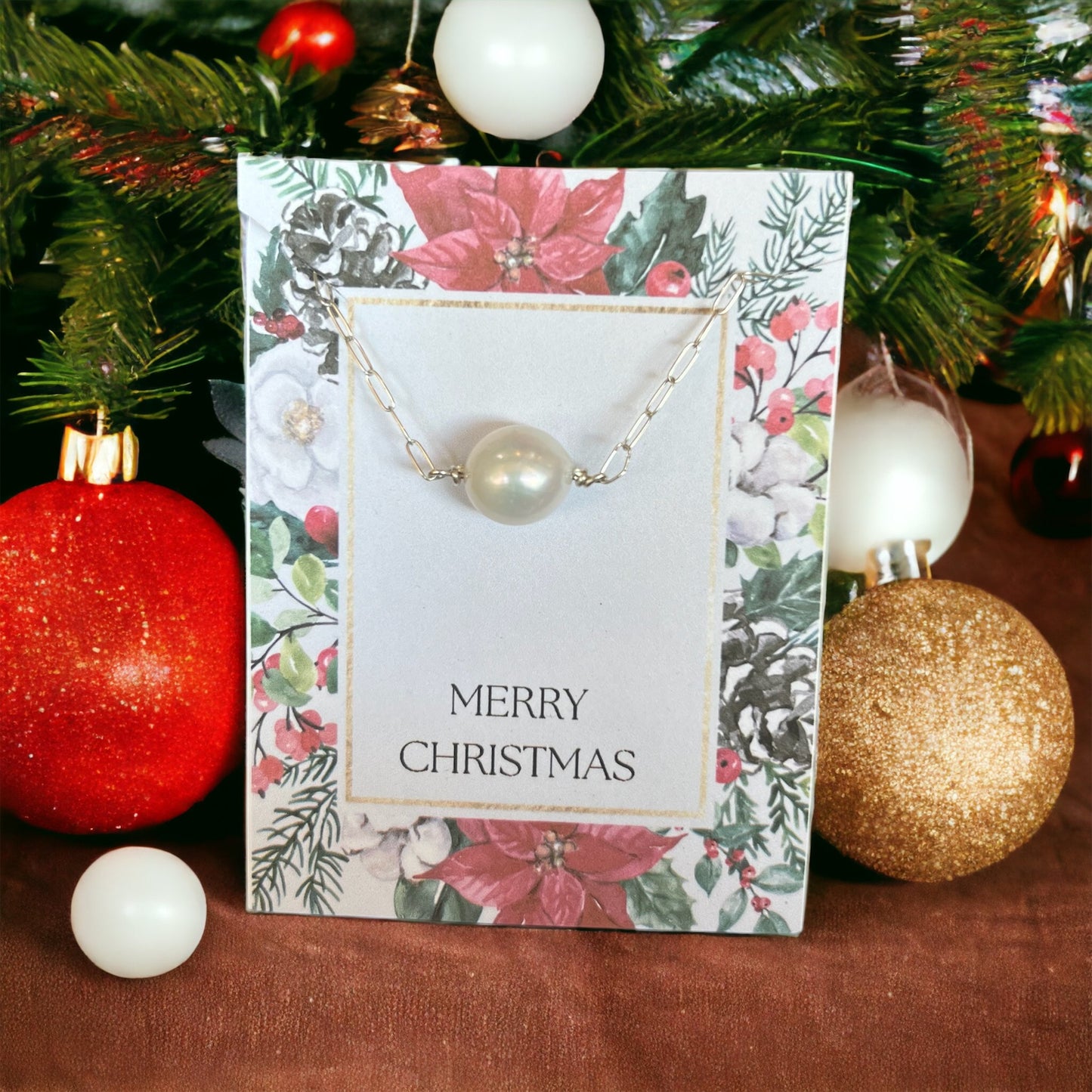 Embrace the magic of the season with our stunning Freshwater Sterling Silver Pearl Necklace, a timeless treasure that captures the essence of Christmas elegance.
