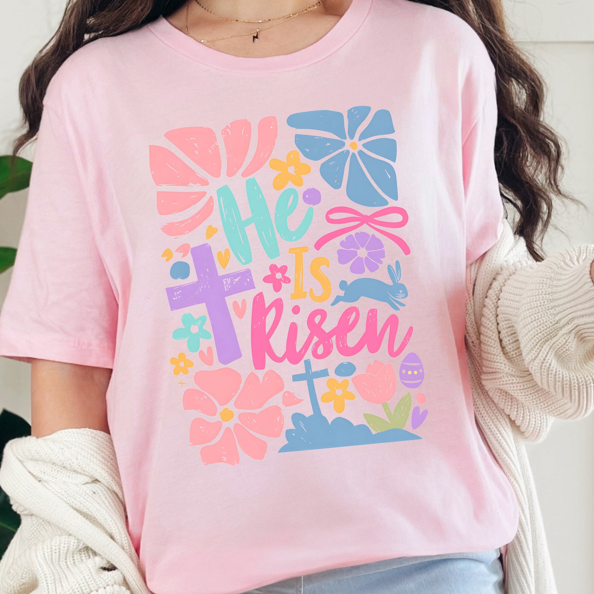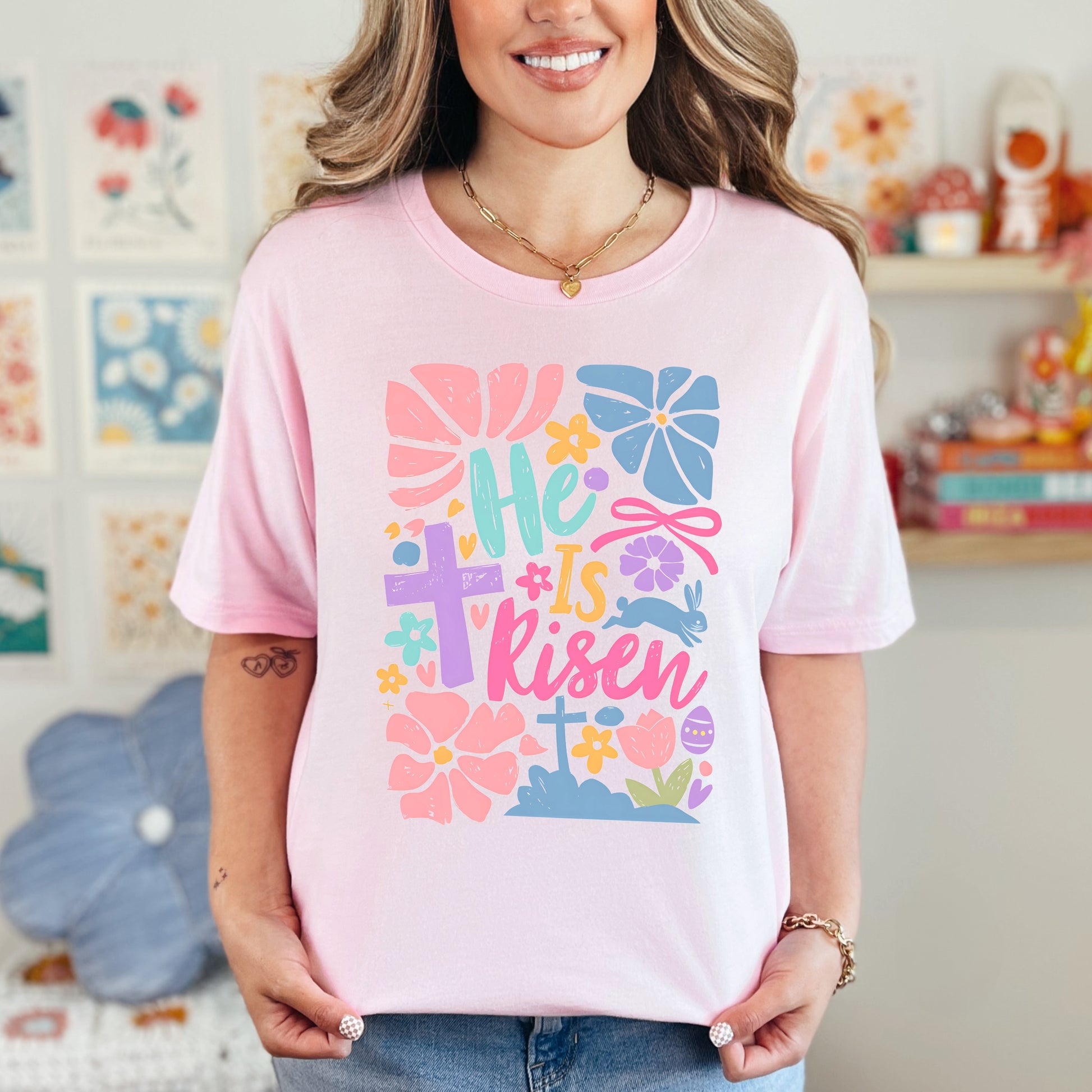 Get festive this Easter with our He is Risen graphic tee! With a beautiful floral design featuring pastel colors, bows, and a cross, this ultra soft shirt is perfect for celebrating the holiday. Show off your Easter spirit with this fun and playful addition to your wardrobe.