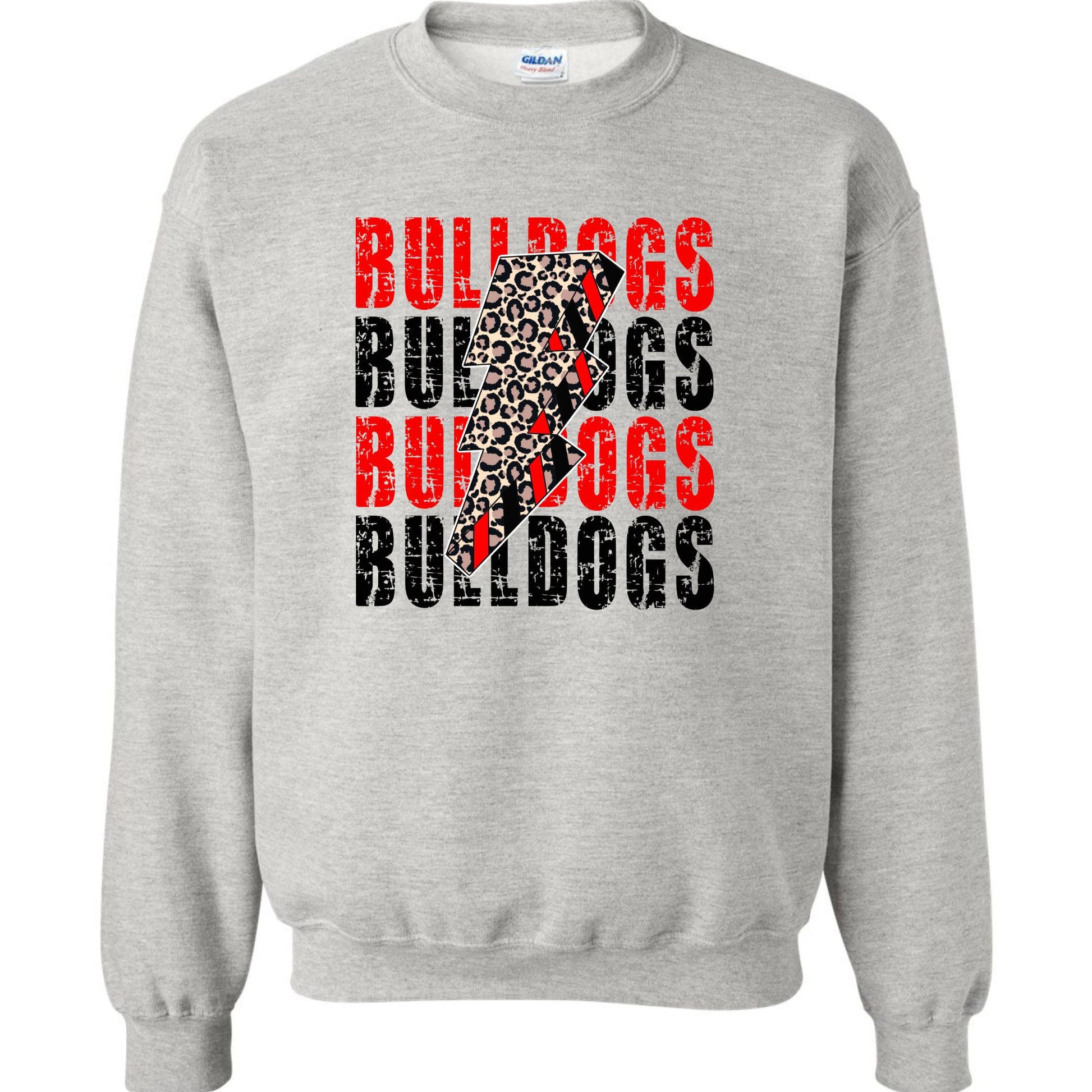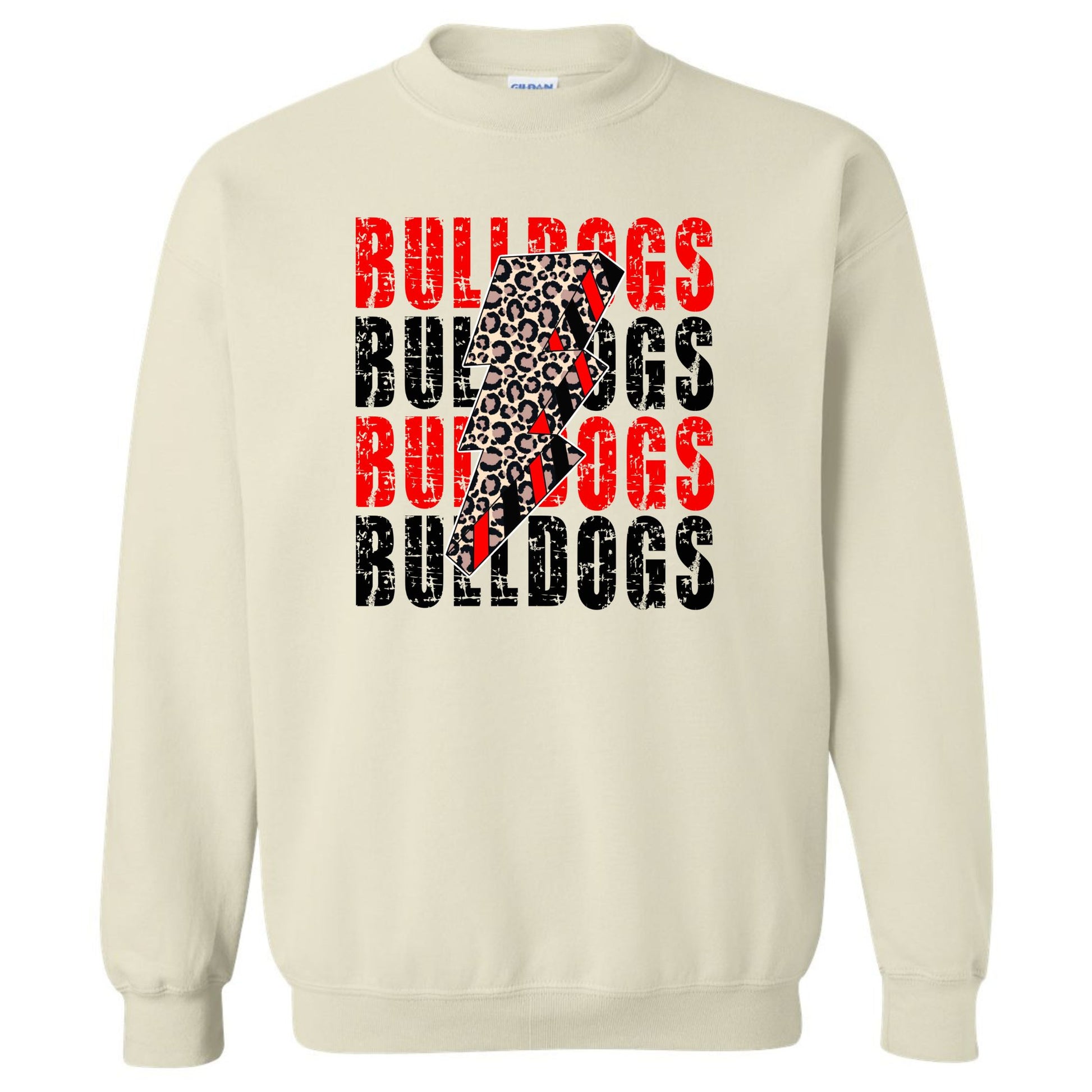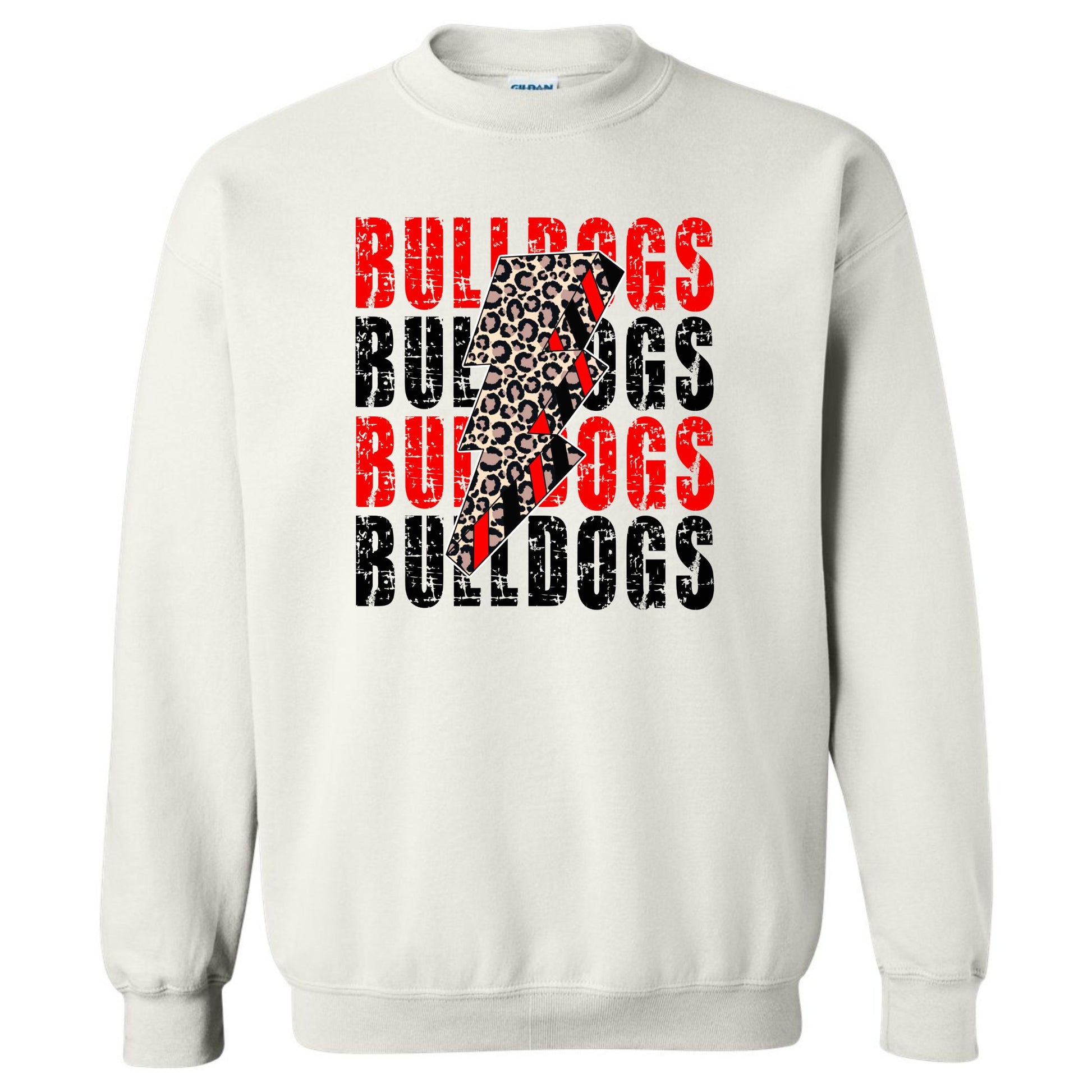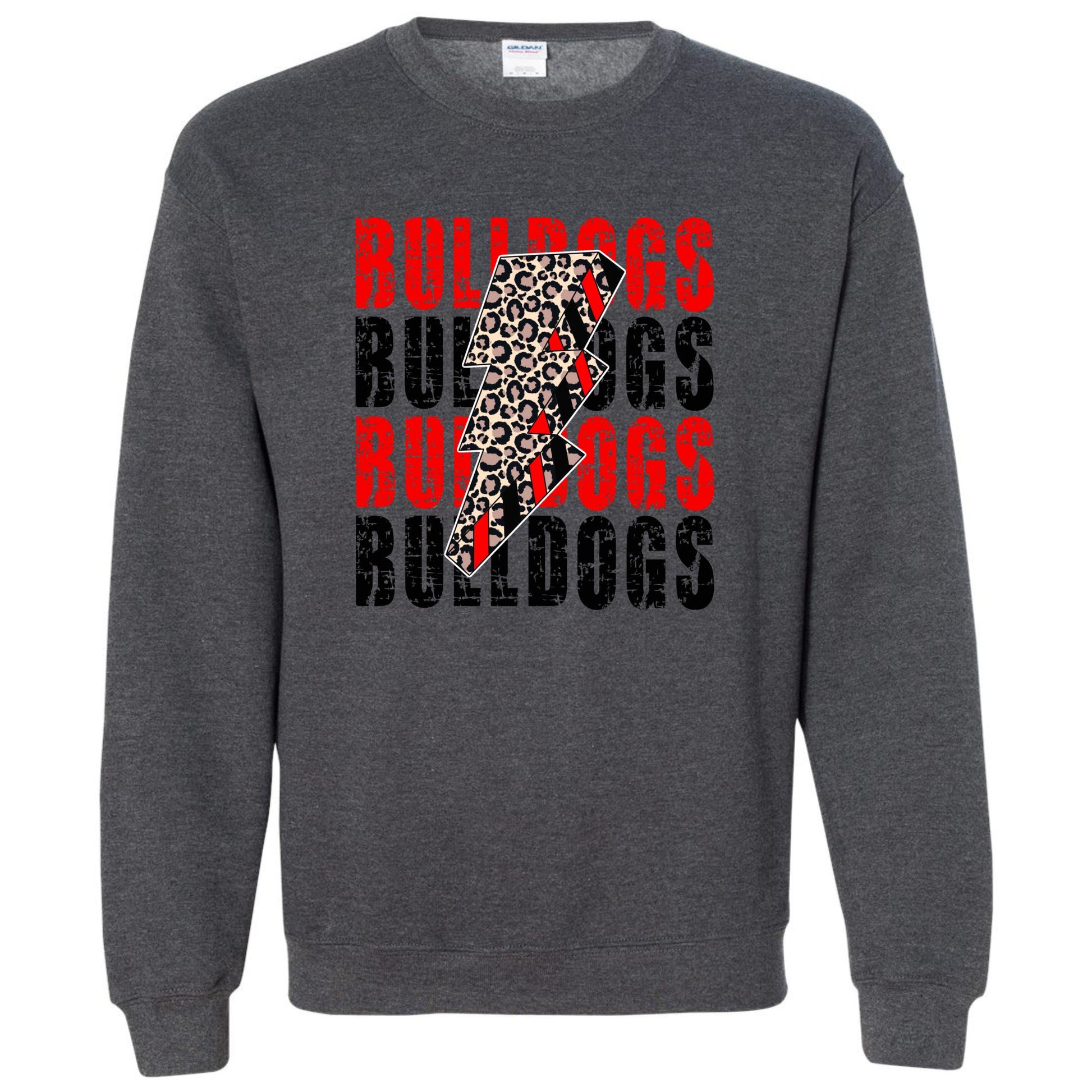 Show off your bulldog pride and fierce style with this Leopard Print Lightning Bolt Sweatshirt! Perfect for game days and school events, this sweatshirt will make you stand out in the crowd. The bold leopard print adds a touch of edginess to this classic bulldog design.