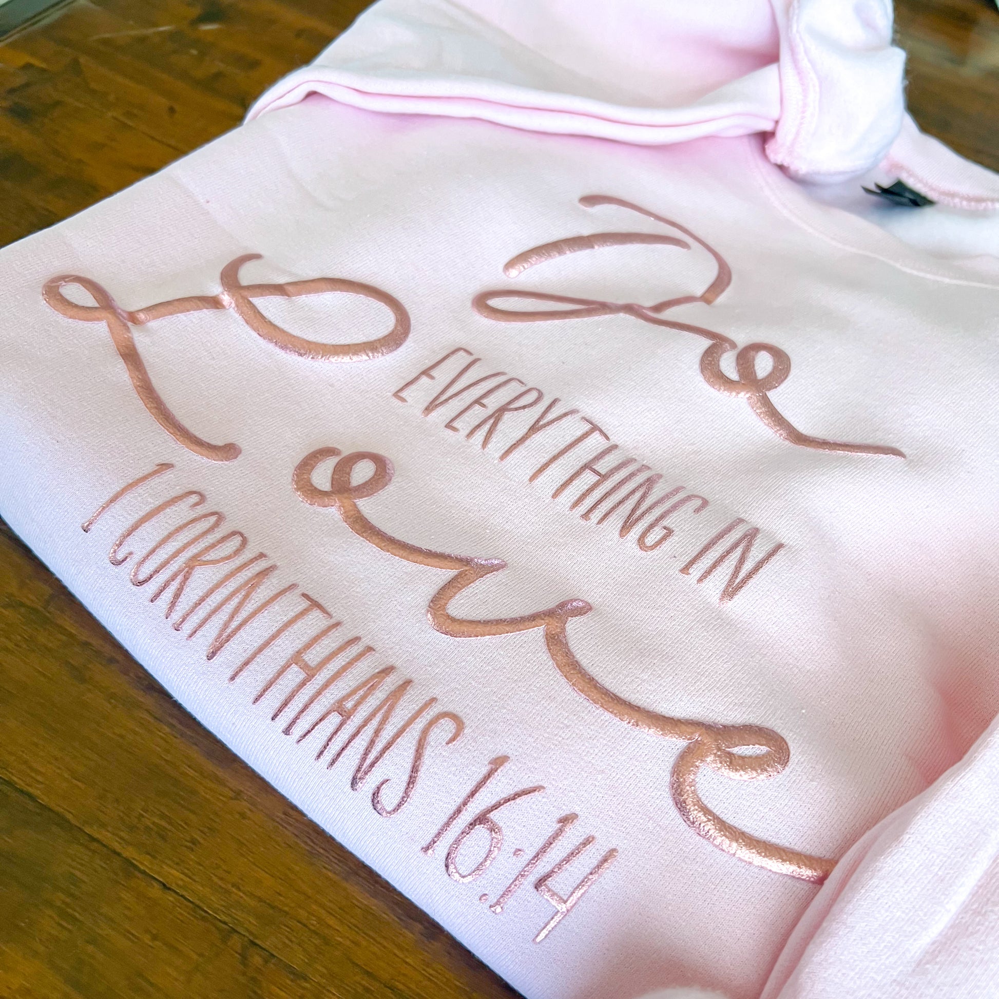 Add a touch of shimmer and love with our Light Pink "Do Everything in Love" Sweatshirt! 💕✨ Featuring soft pink puff print with a foil finish, this sweatshirt combines cozy comfort with a message that shines.