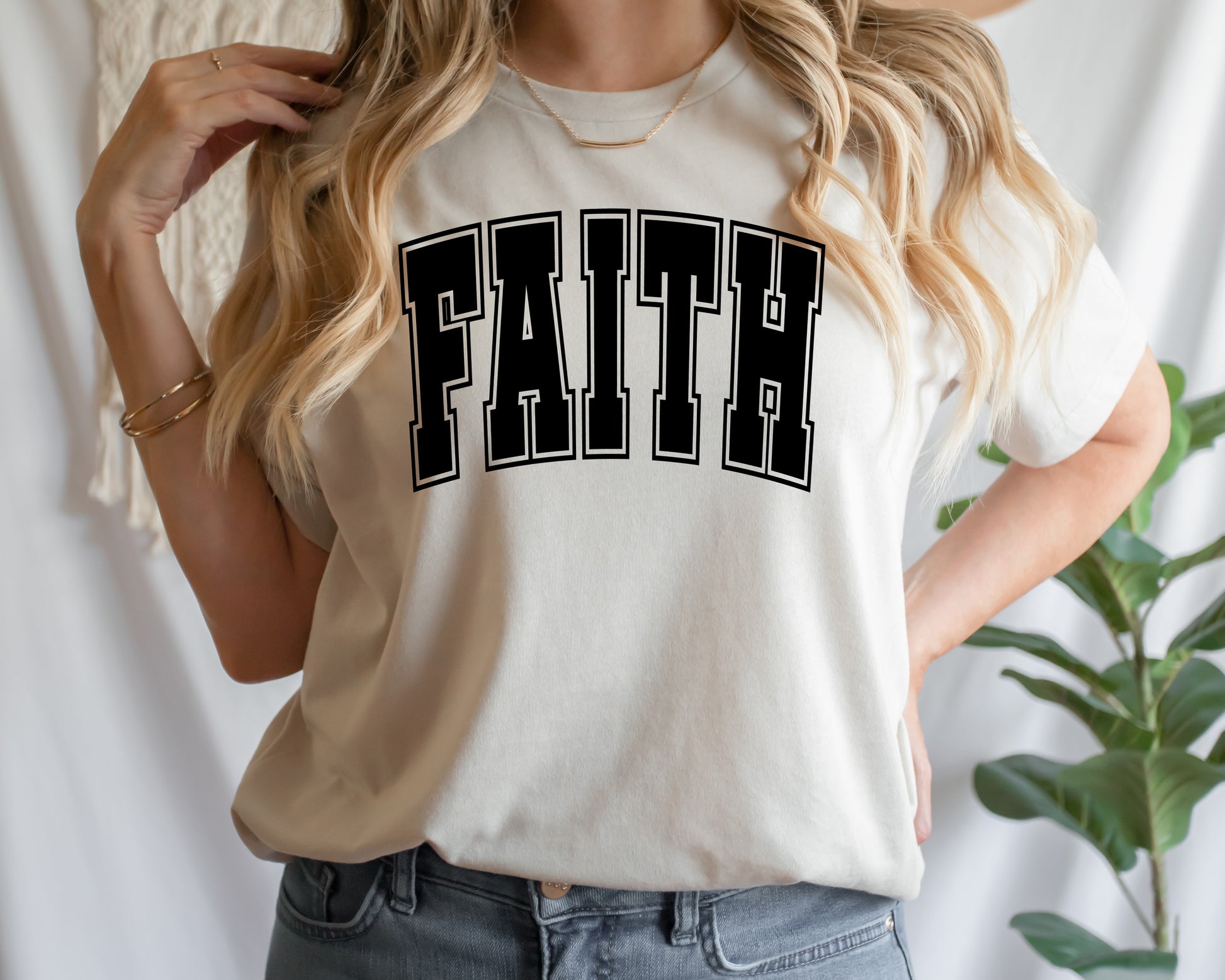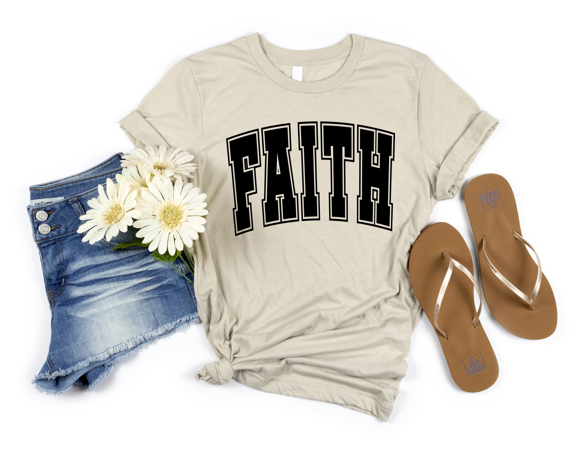 Introducing our Faith in Black Print Women's Tshirt! Made with love and in small batches, this tee is super soft and perfect for any occasion. With care instructions to ensure the longest life, you'll love the playful design and comfortable fit. Made with 100% ring spun cotton for solid colors and a blend for heather colors. Unisex sizing for a relaxed fit, see size guide for a perfect fit.