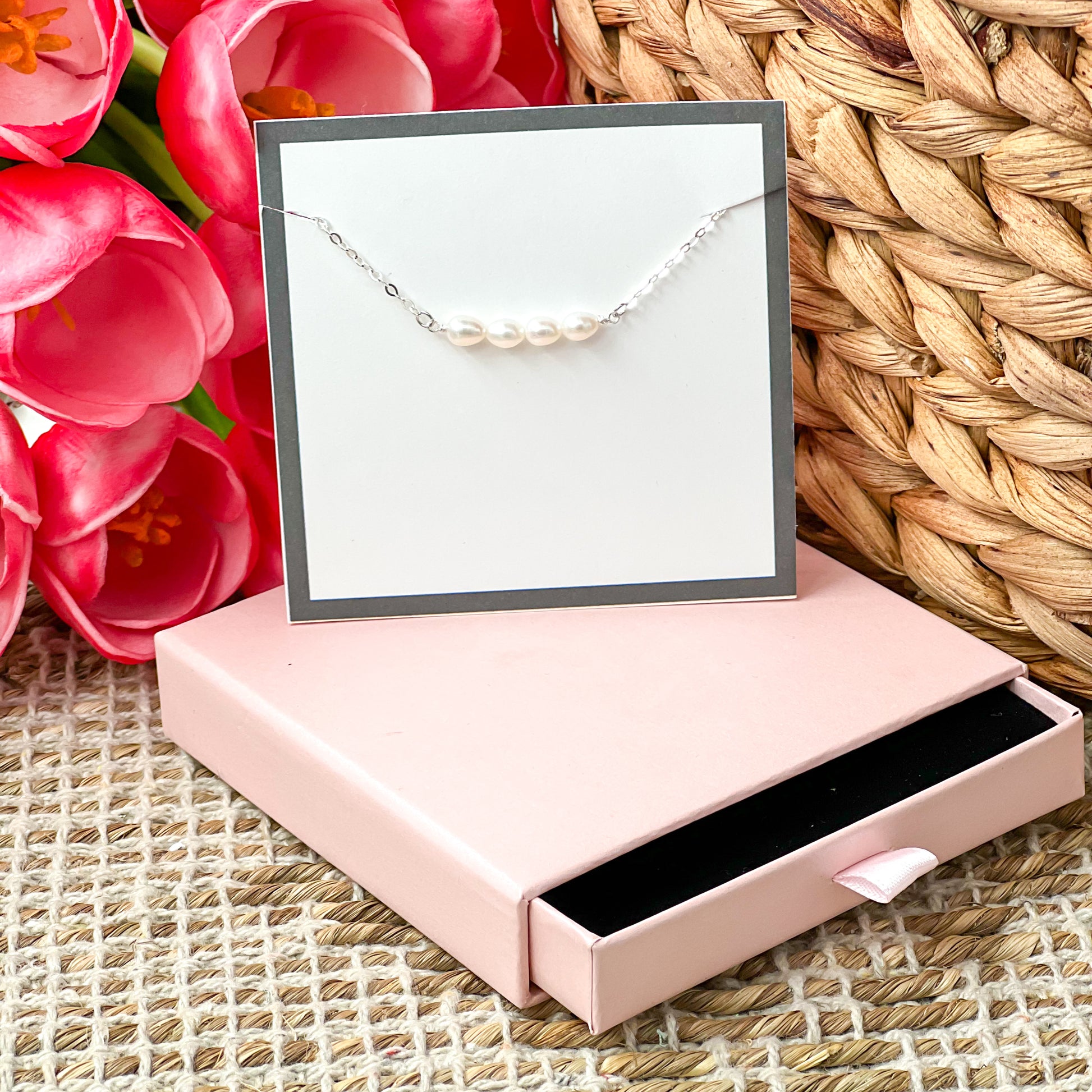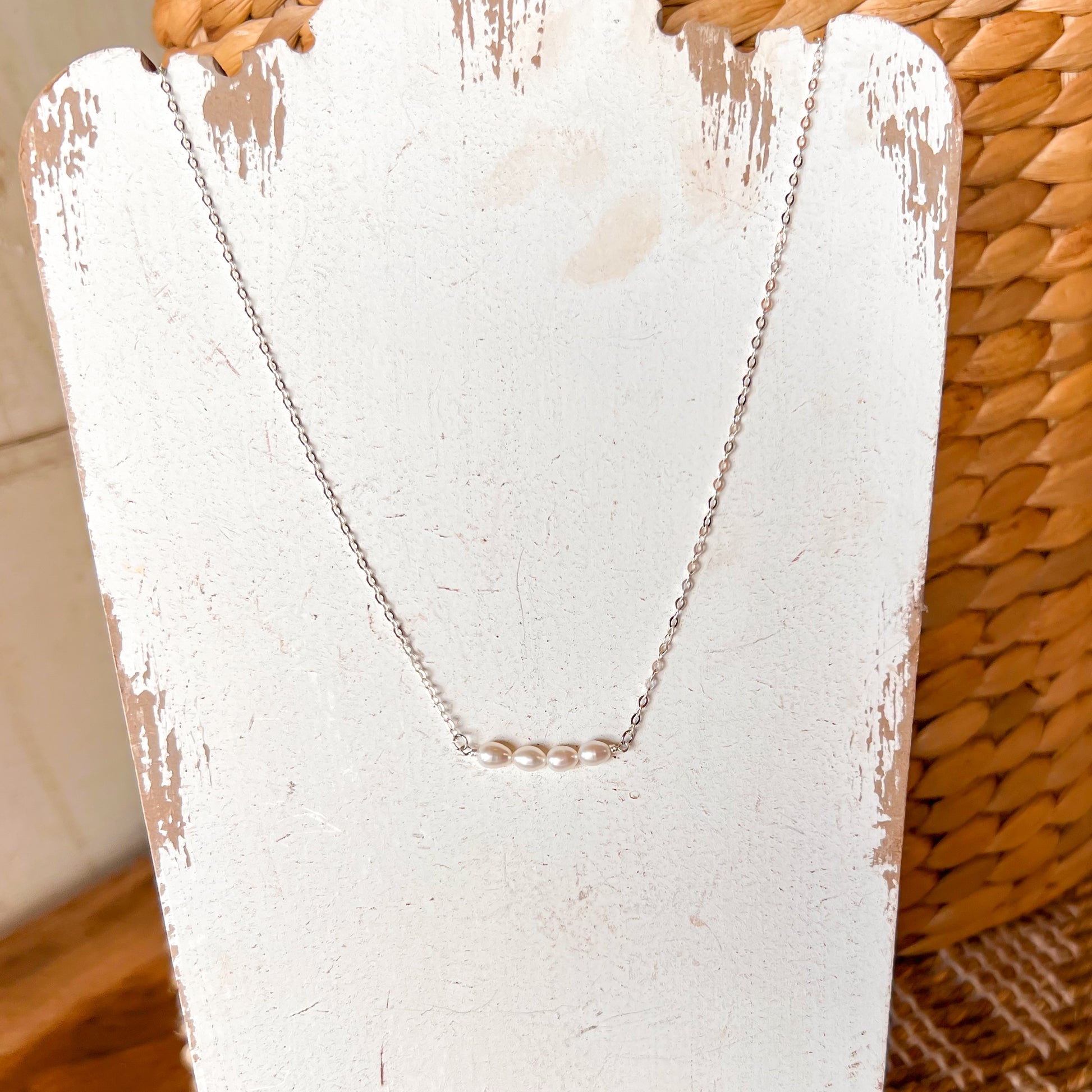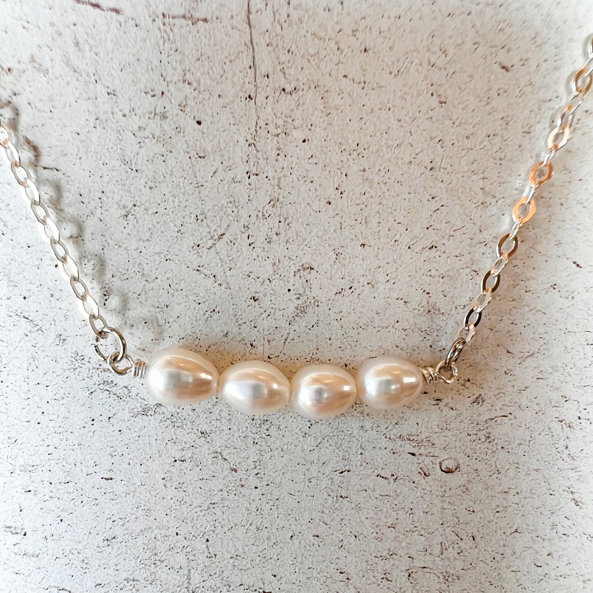 Four Pearl Bar Dainty Pendant Sterling Silver Necklace Perfect for Layering