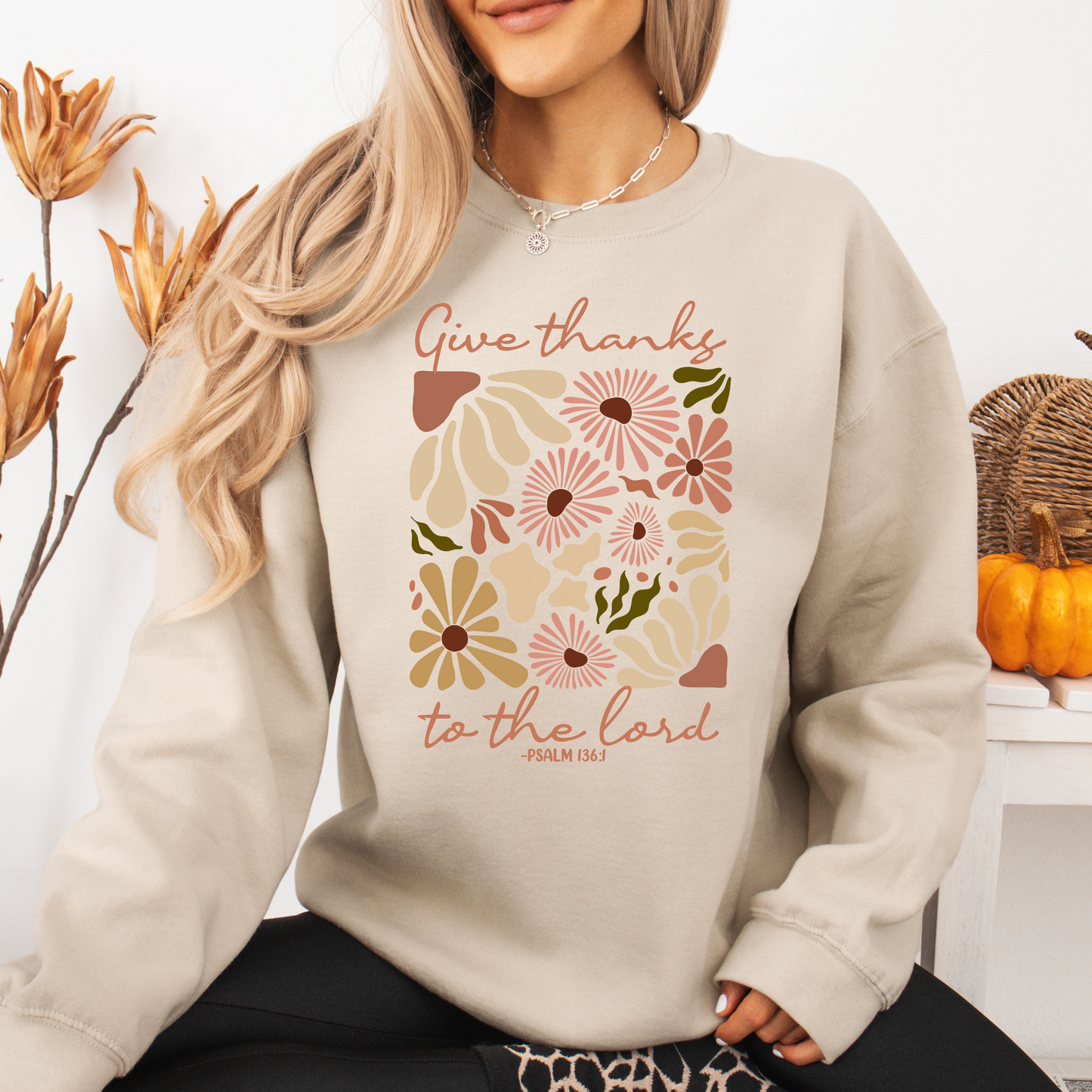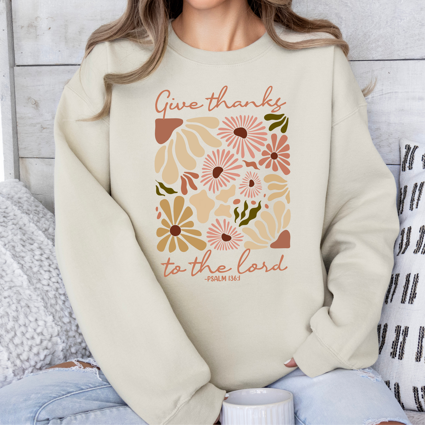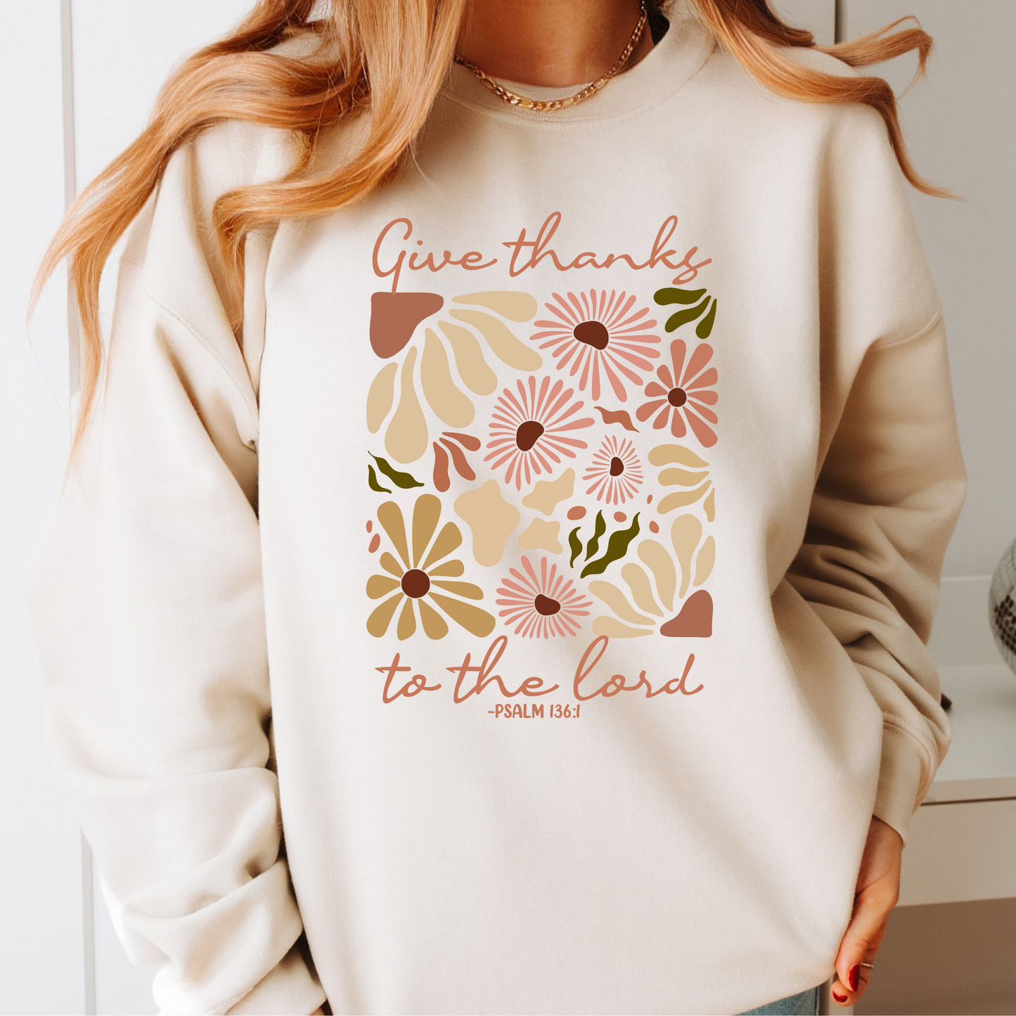 Give Thanks to The Lord Sweatshirt Floral Design