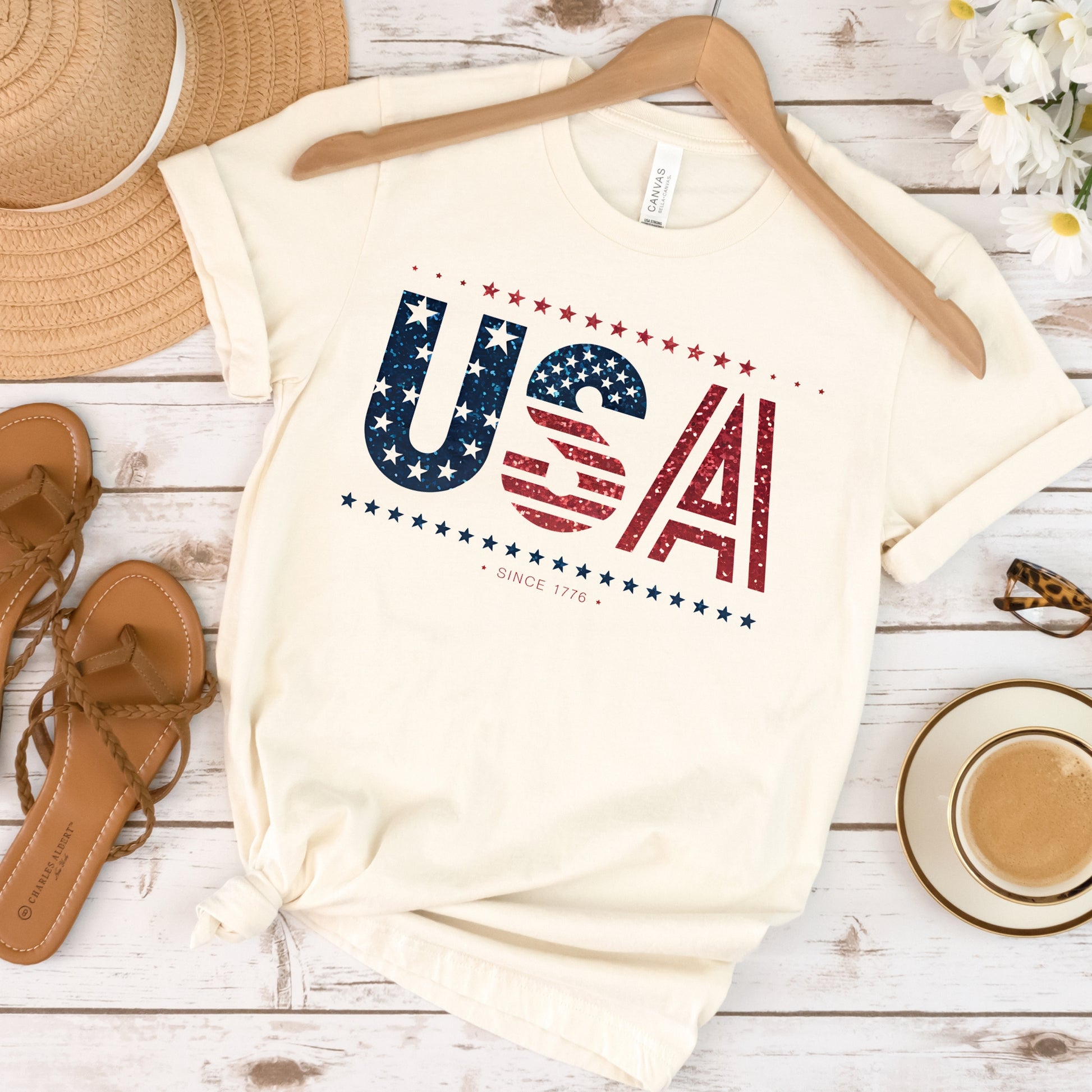 Glitter USA Patriotic July 4th Memorial Day Tshirt
