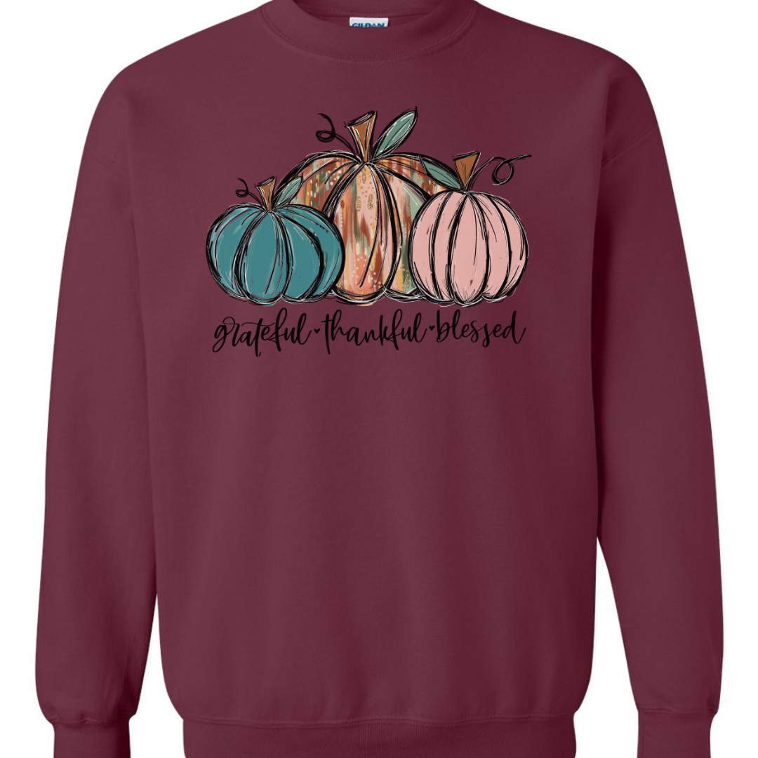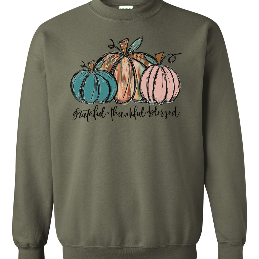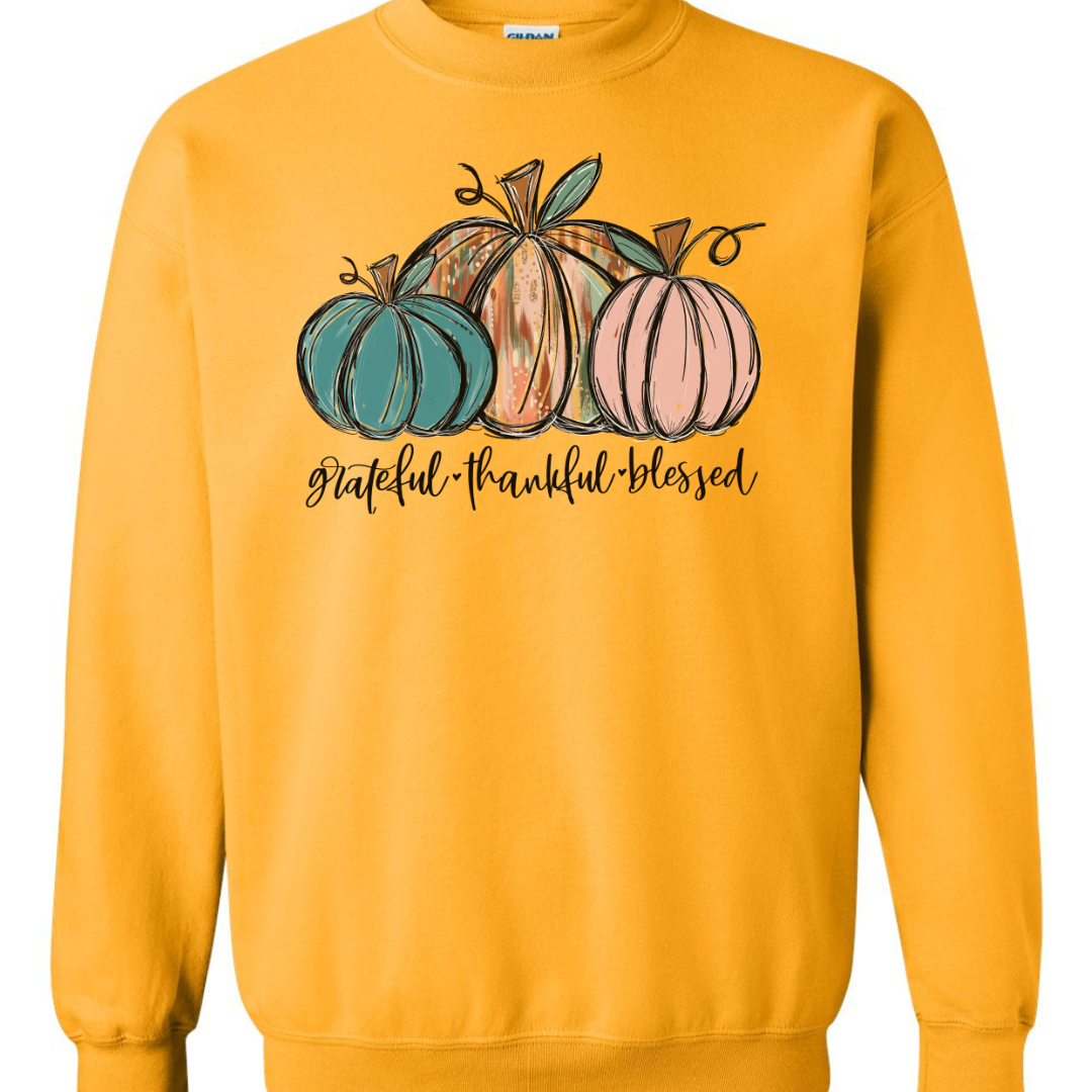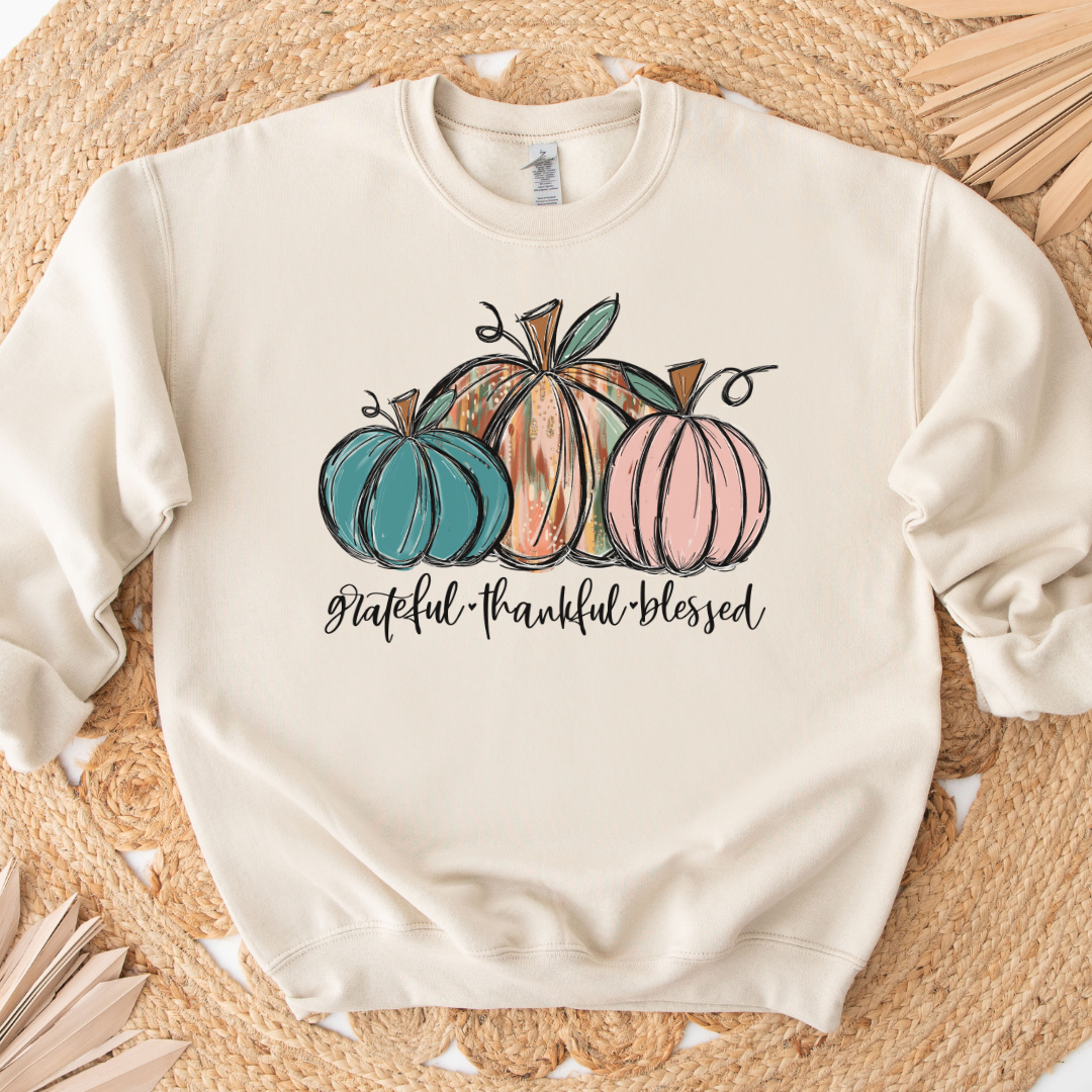 Grateful Thankful Blessed Three Painted Pumpkins Fall Sweatshirt