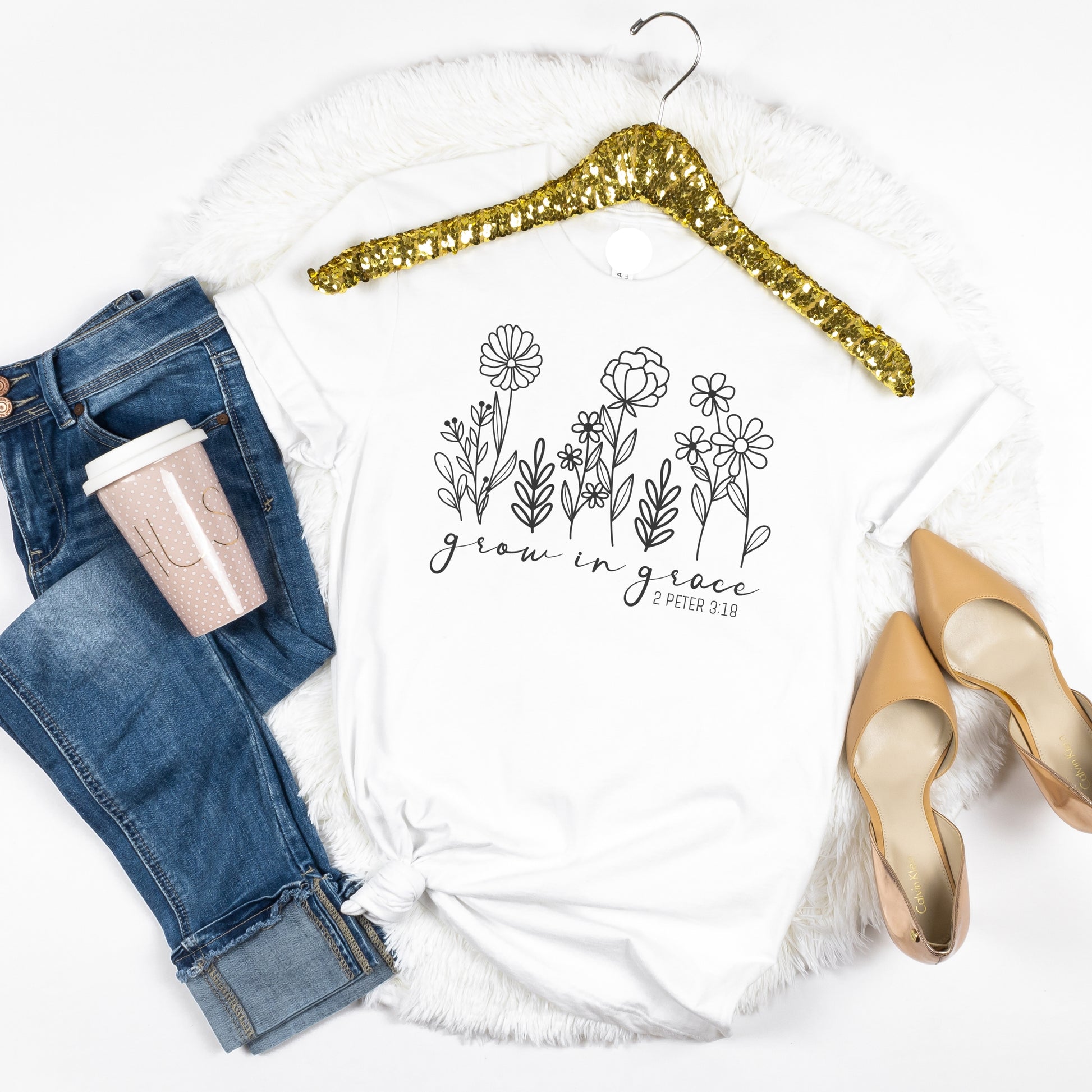 This soft, lightweight tee features delicate floral artwork paired with the gentle reminder to grow in grace. Inspired by the slow, sacred process of becoming, this shirt speaks to the woman who knows strength and softness can coexist.