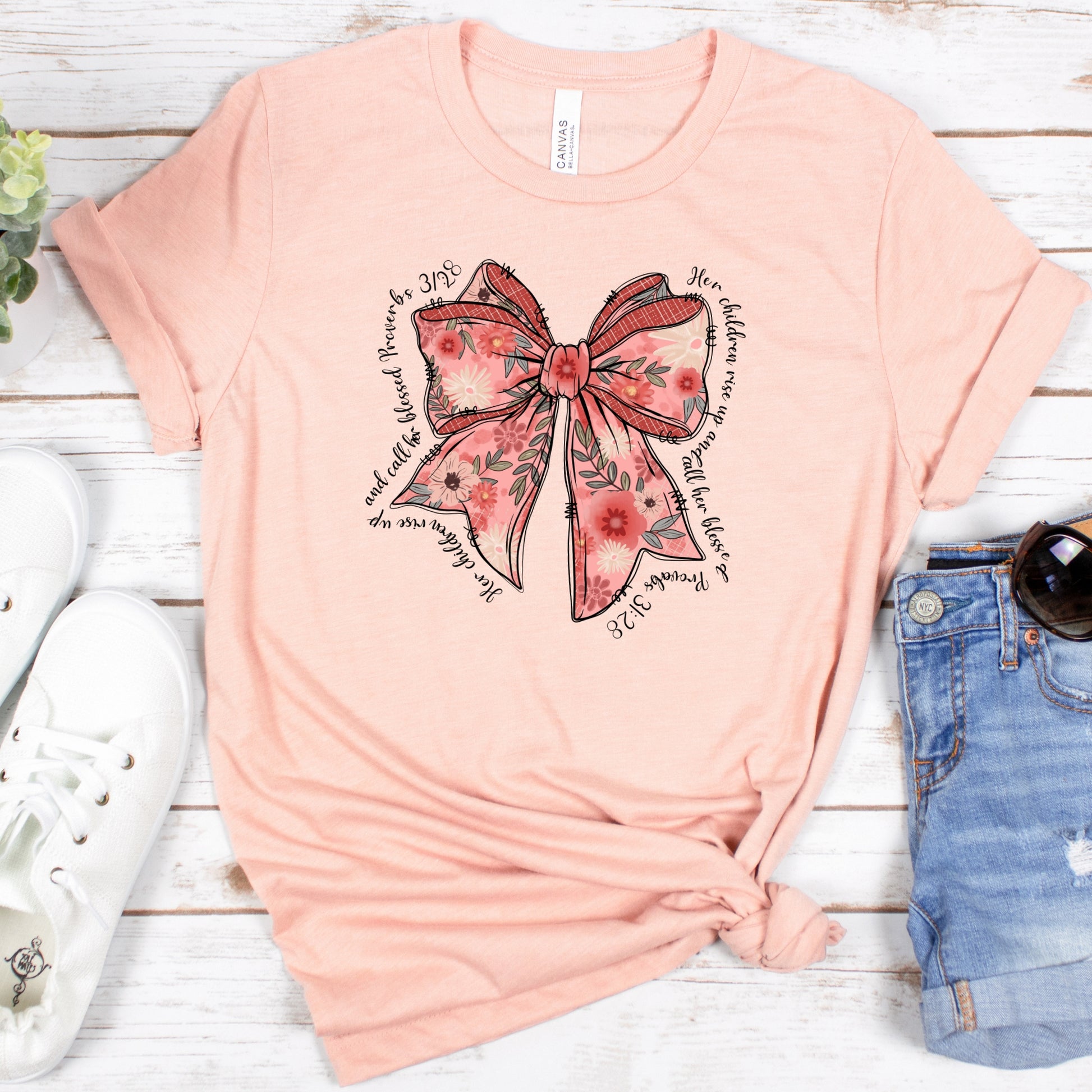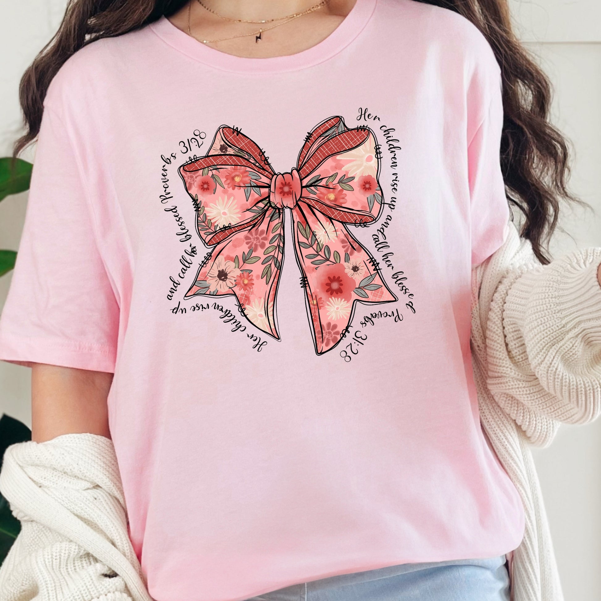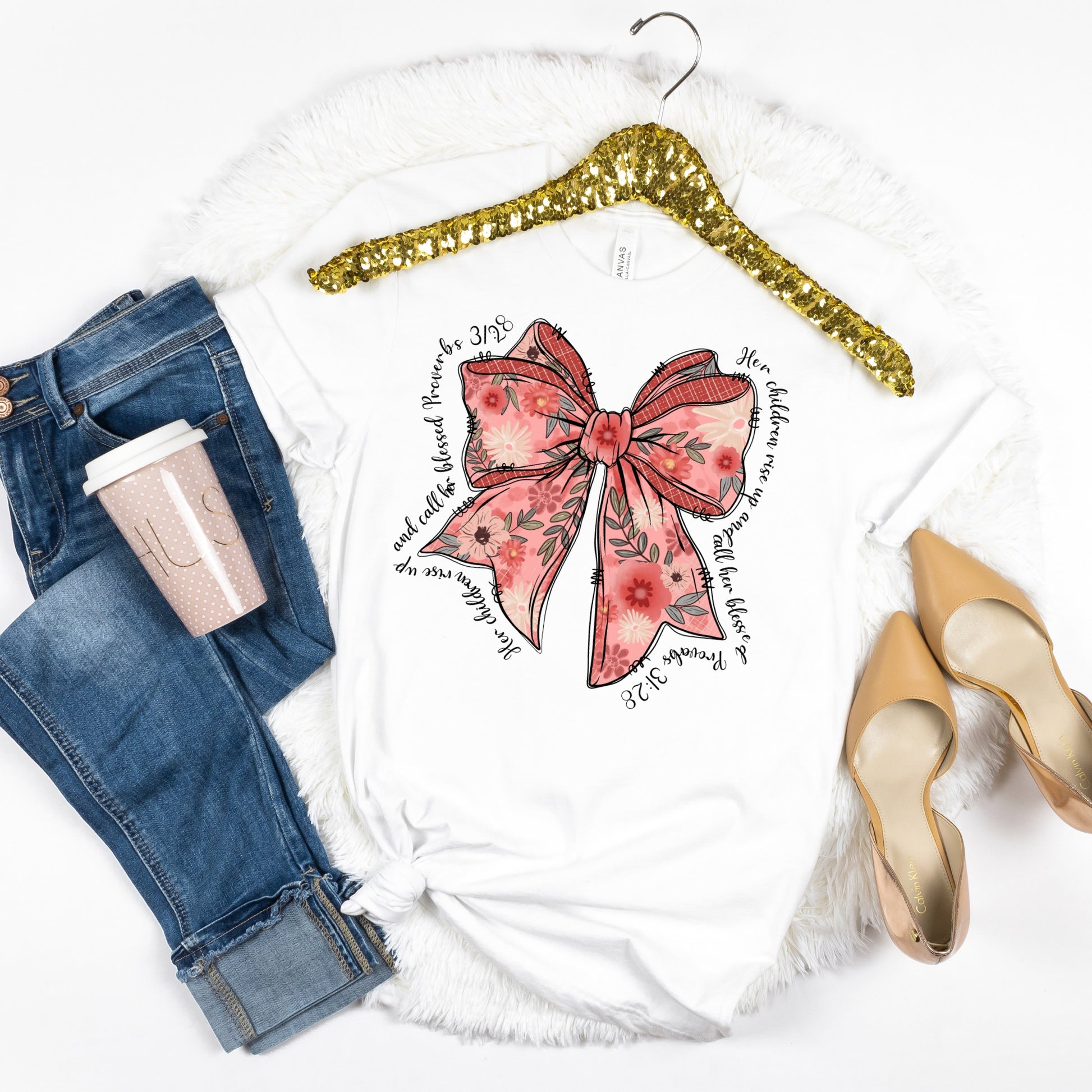 Her Children Rise Up and Call Her Blessed Religious Bow Mother Shirt
