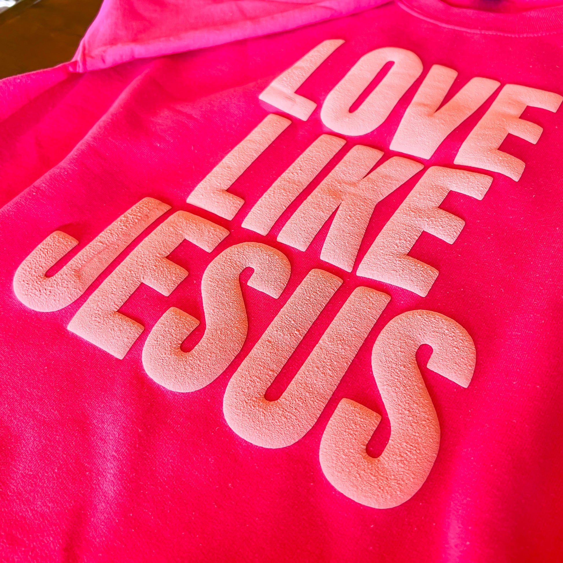 Keep it sweet and meaningful with our Pink-on-Pink "Love Like Jesus" Sweatshirt! 💕 Featuring a cozy pink sweatshirt with a soft pink puff print, it’s the perfect blend of style and inspiration. Whether it’s Valentine’s Day or any day, this sweatshirt is your reminder to share love like He does—pure and unconditional. ✨