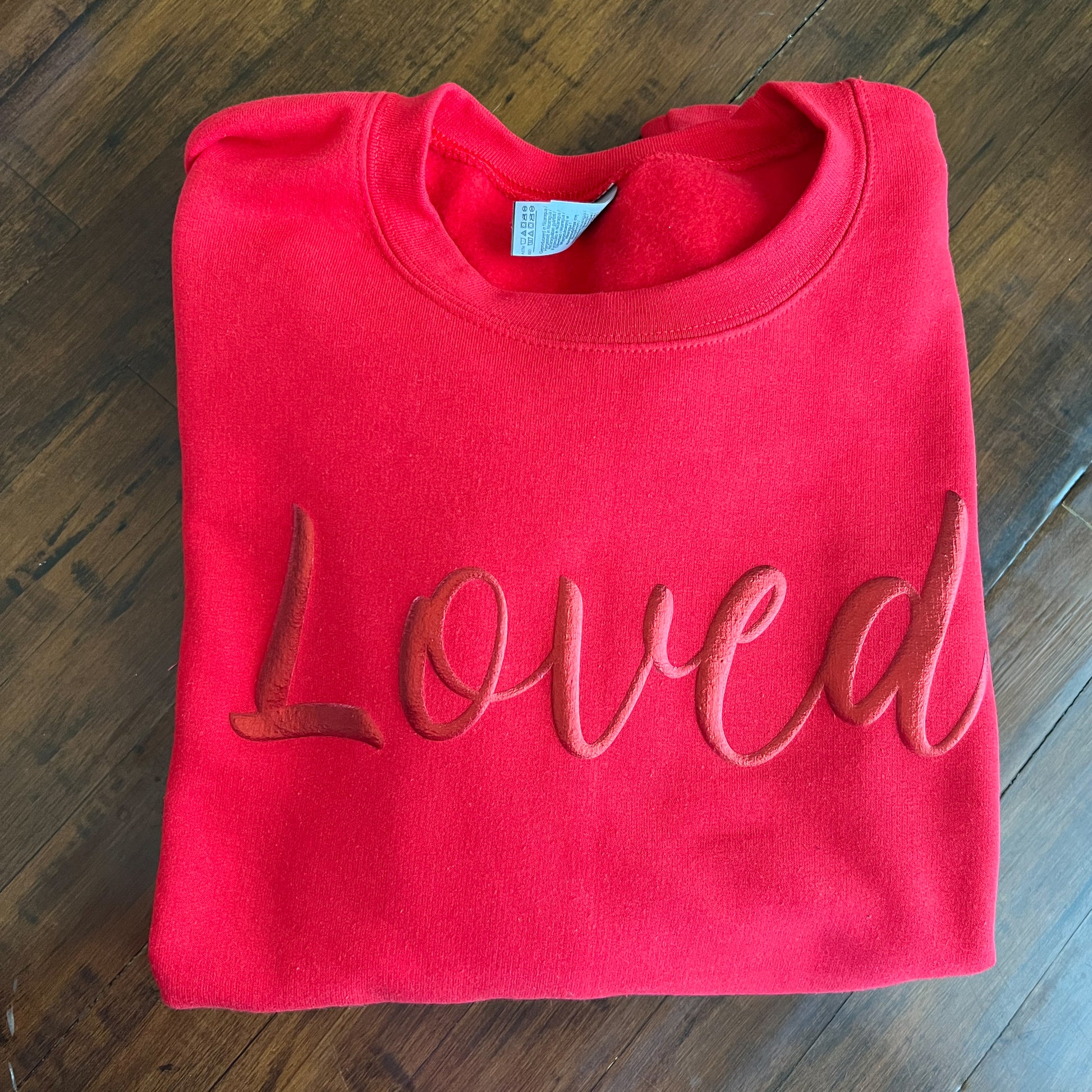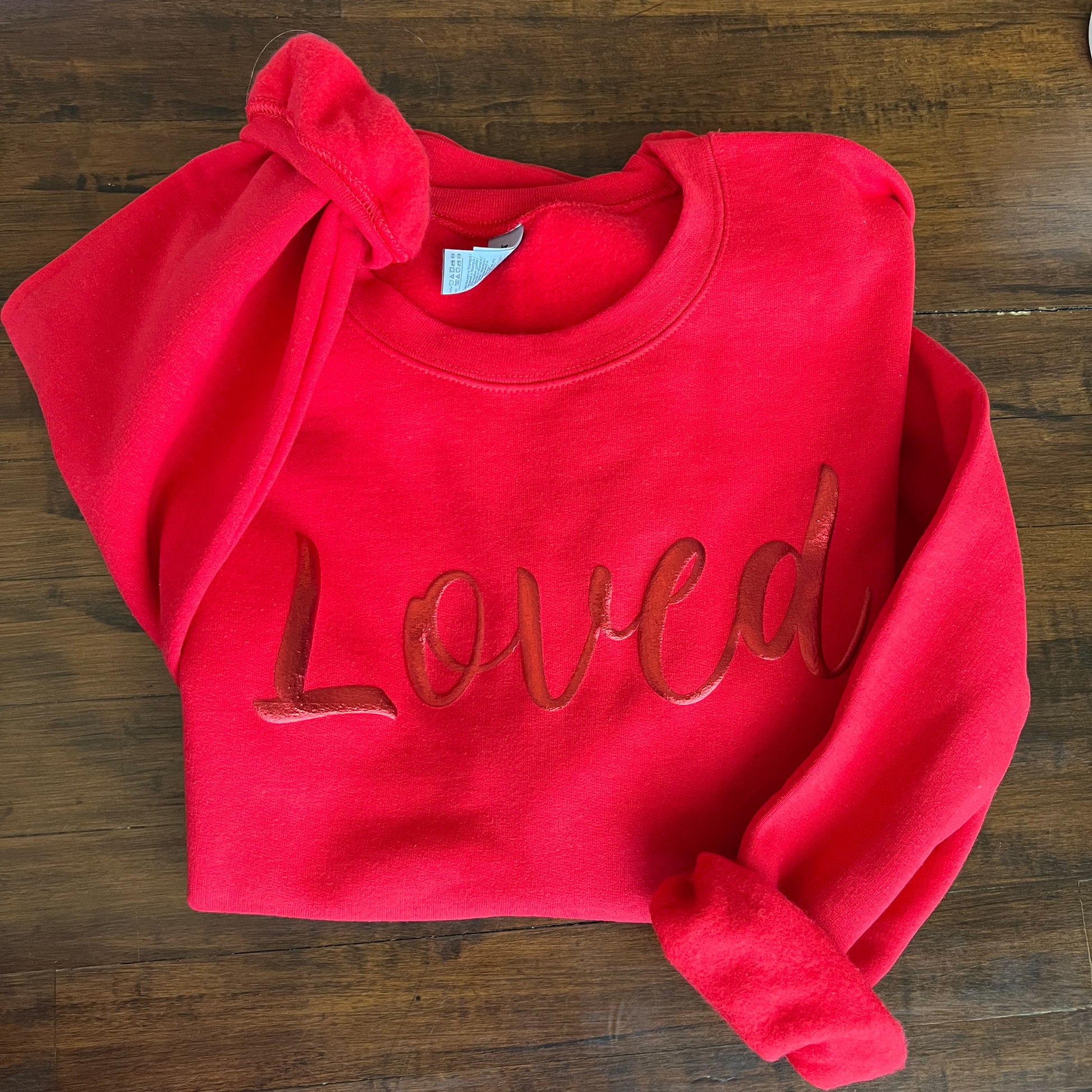 Feel the love and shine bright with our Red "Loved" Sweatshirt! ❤️✨ Featuring the word "Loved" in eye-catching foil puff ink, this cozy sweatshirt is as bold as it is meaningful.