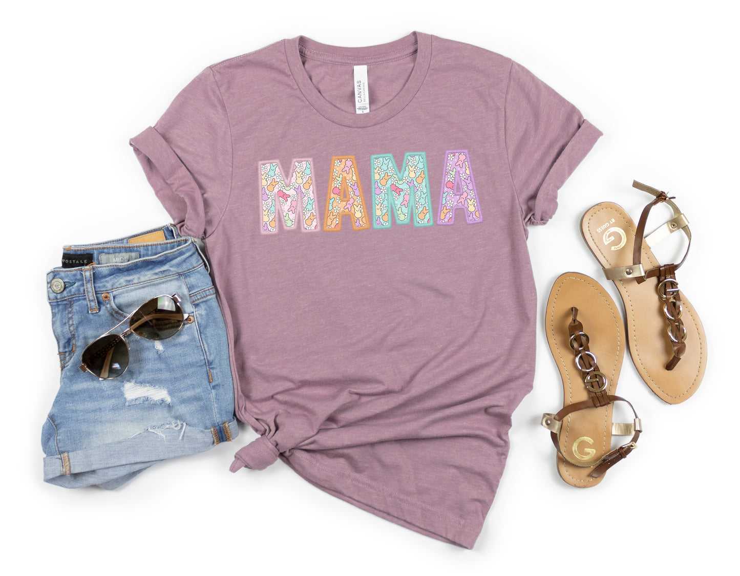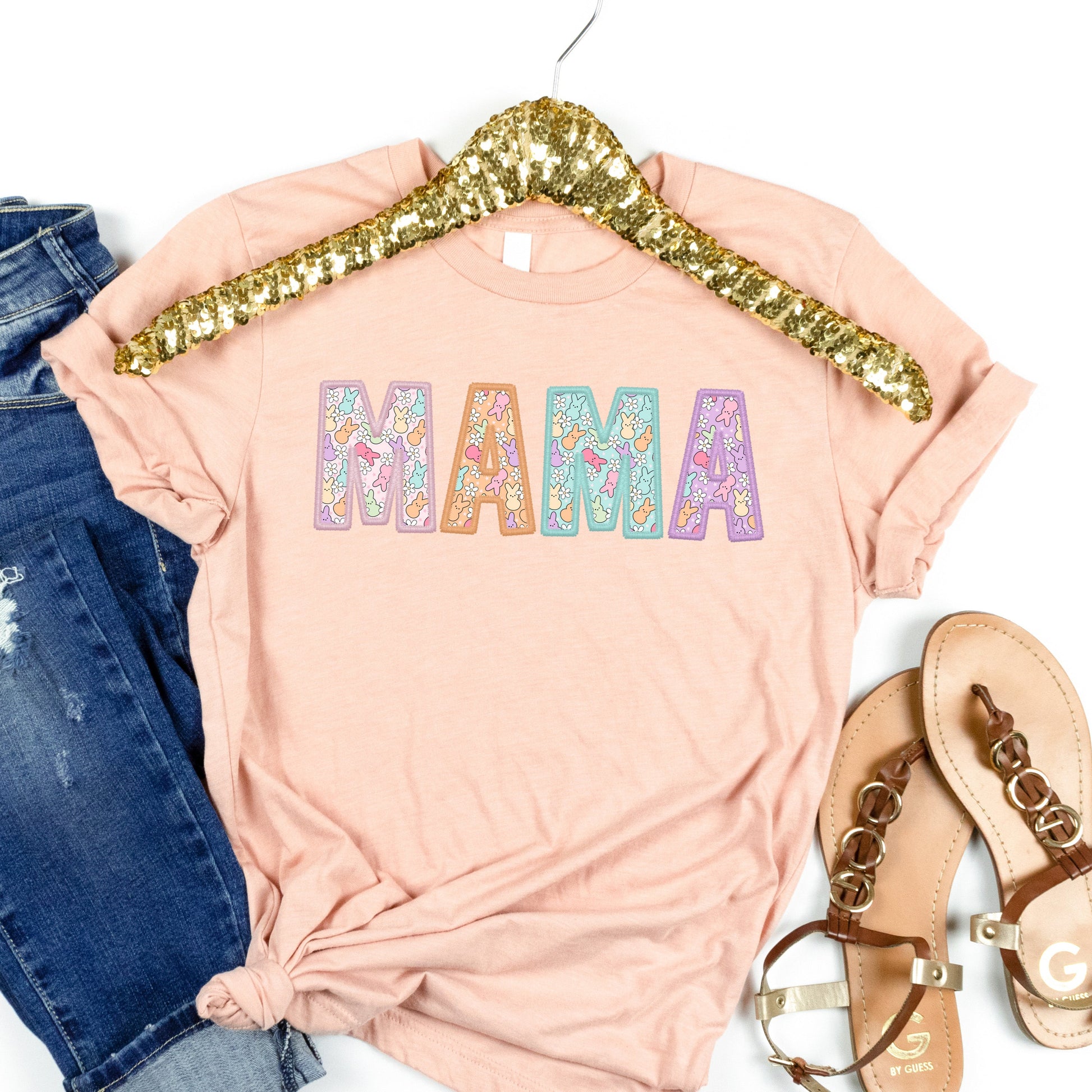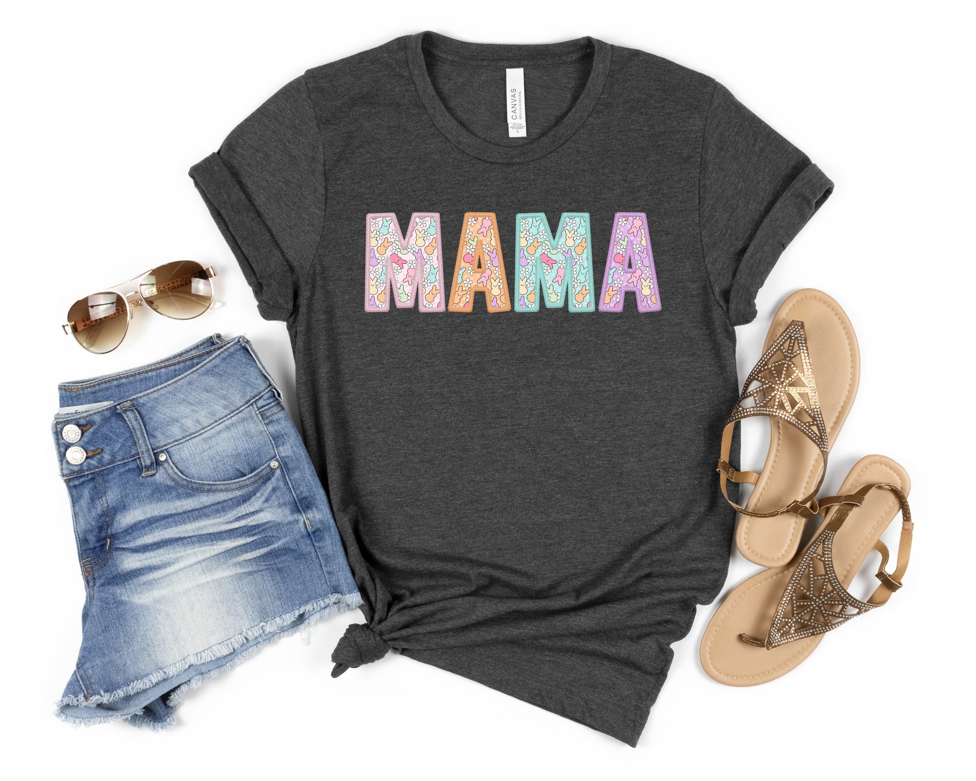 Celebrate Easter in style with this Mama Peeps Women's Graphic Tshirt. The shirt features a cute little peep bunny design on the letters, in pastel colors, perfect for the festive season.