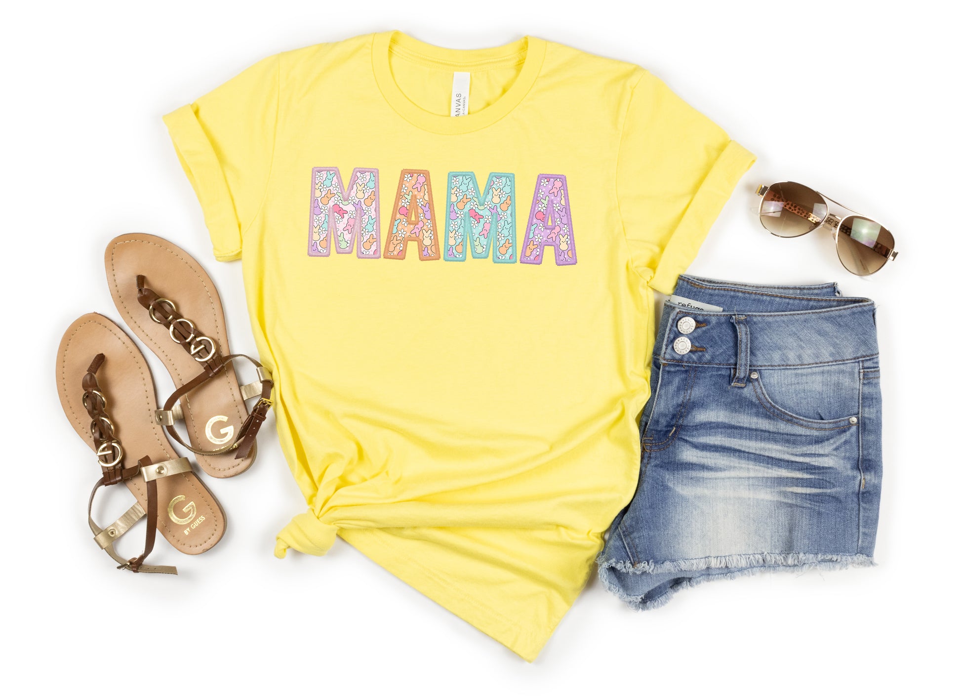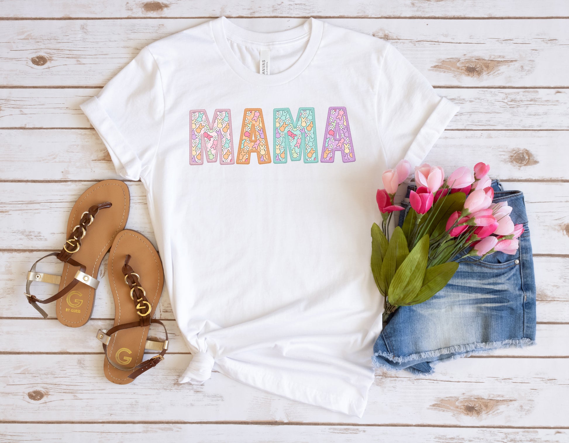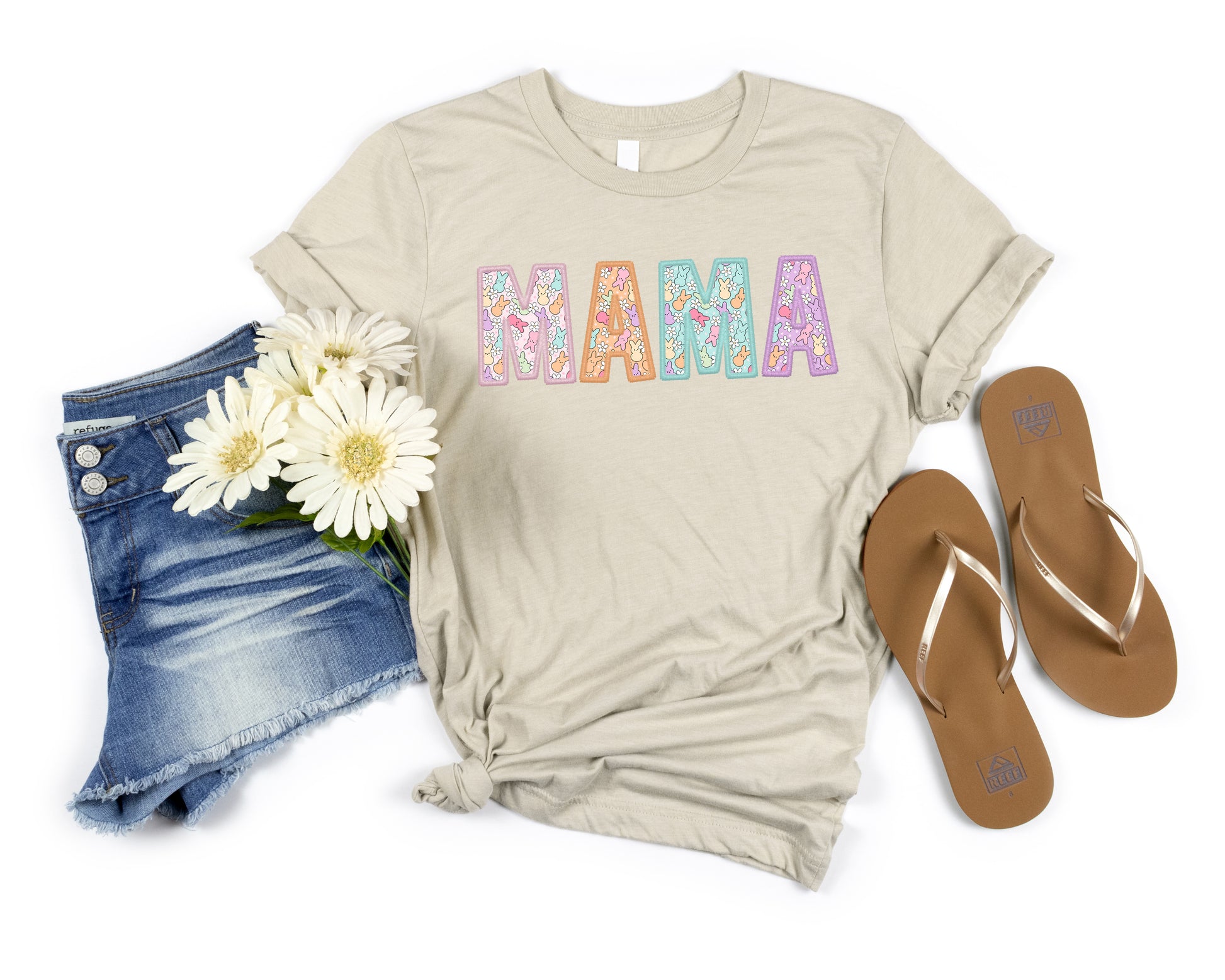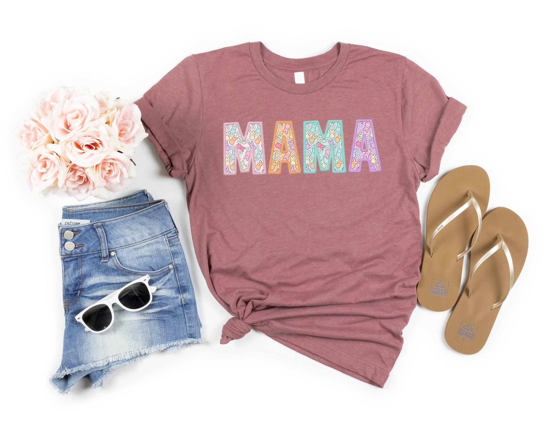 Celebrate Easter in style with this Mama Peeps Women's Graphic Tshirt. The shirt features a cute little peep bunny design on the letters, in pastel colors, perfect for the festive season.