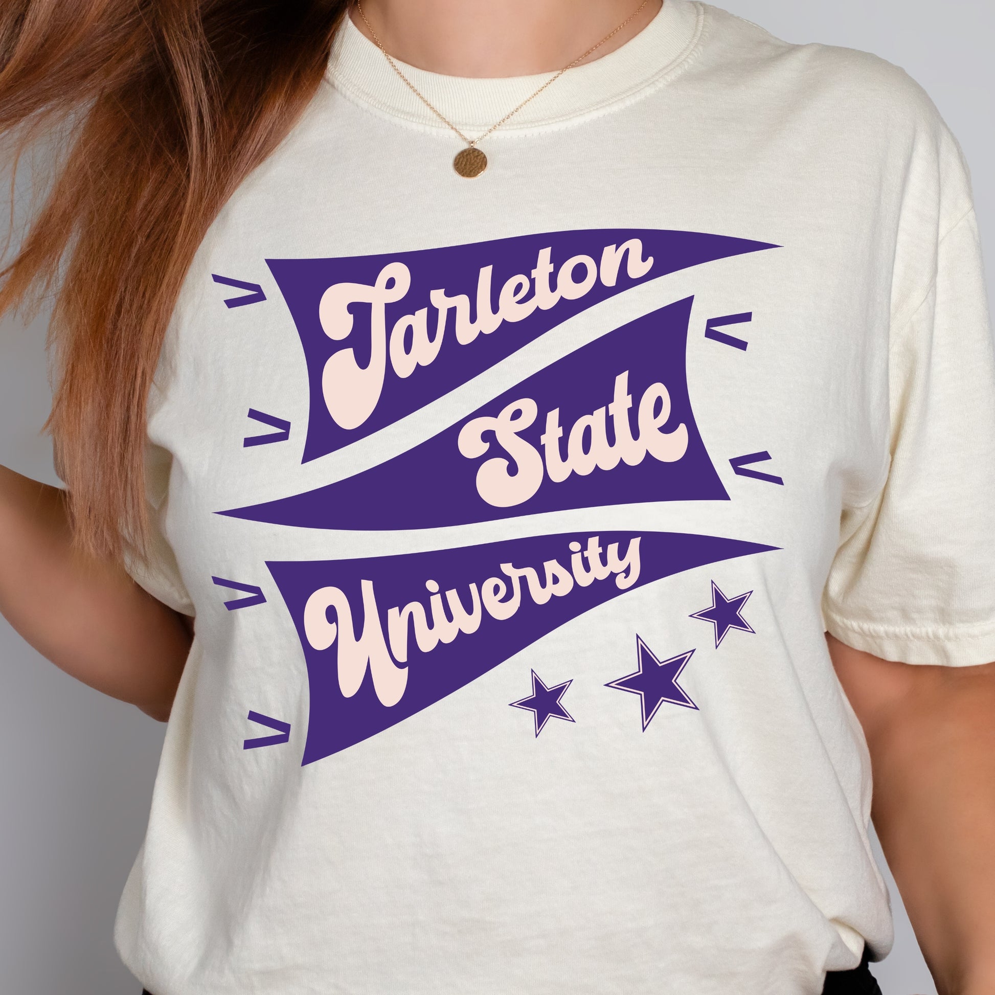 Show off your Tarleton State pride with this  cute flag Tshirt. Perfect for any fan wanting to add a playful touch to their school spirit.