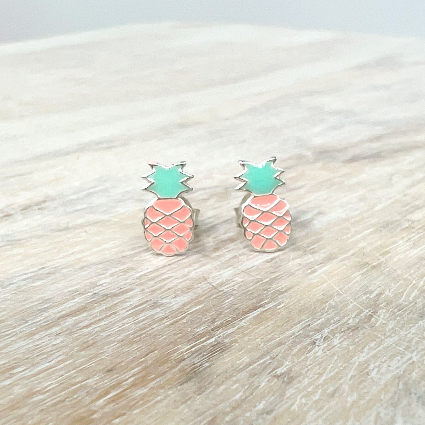 Add a touch of tropical charm to your summer wardrobe with our Pink Pineapple sterling silver stud earrings! These hypoallergenic earrings are perfect for any vacation or day at the beach. Stand out and make a statement with this unique accessory.