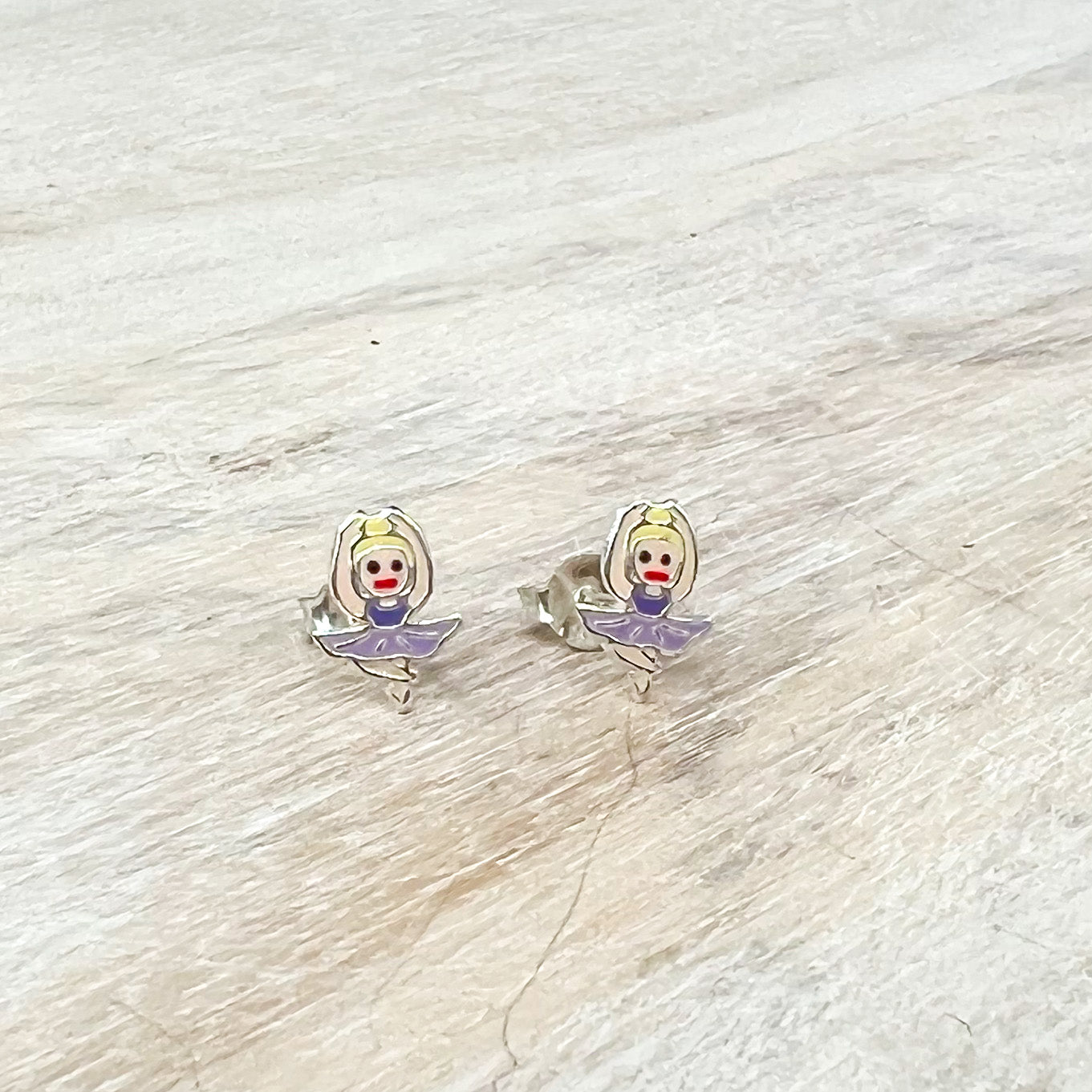 Purple Ballerina with Blonde Hair Sterling Earrings
