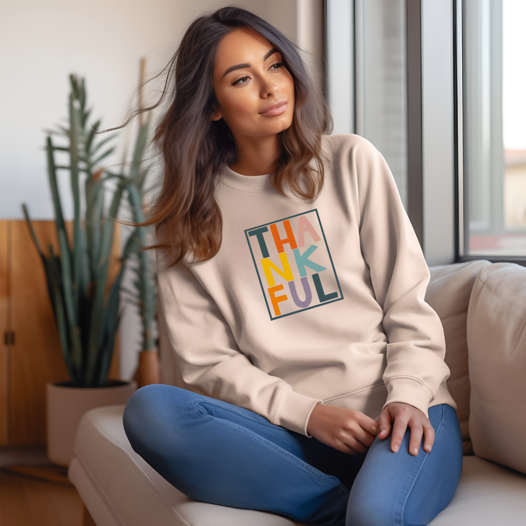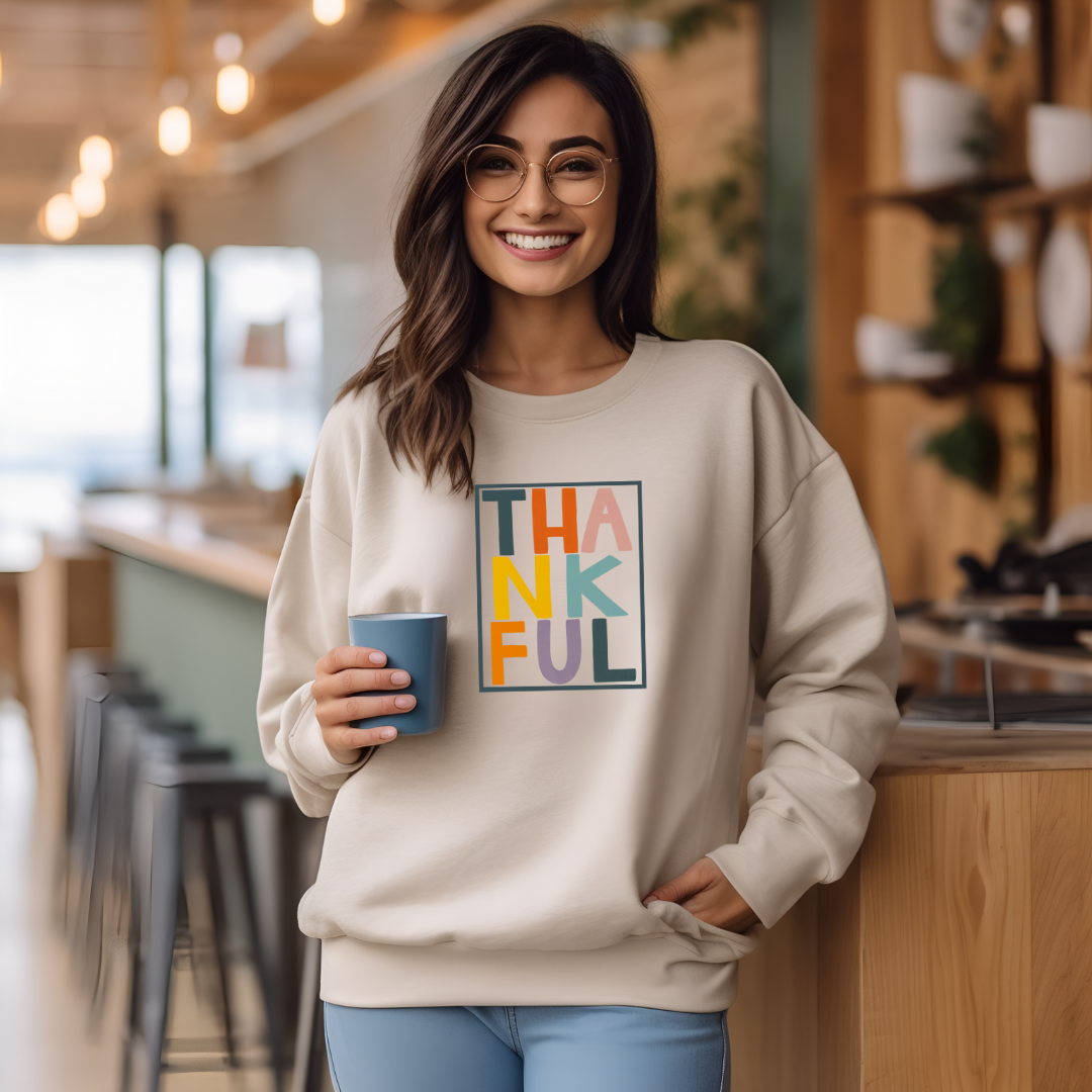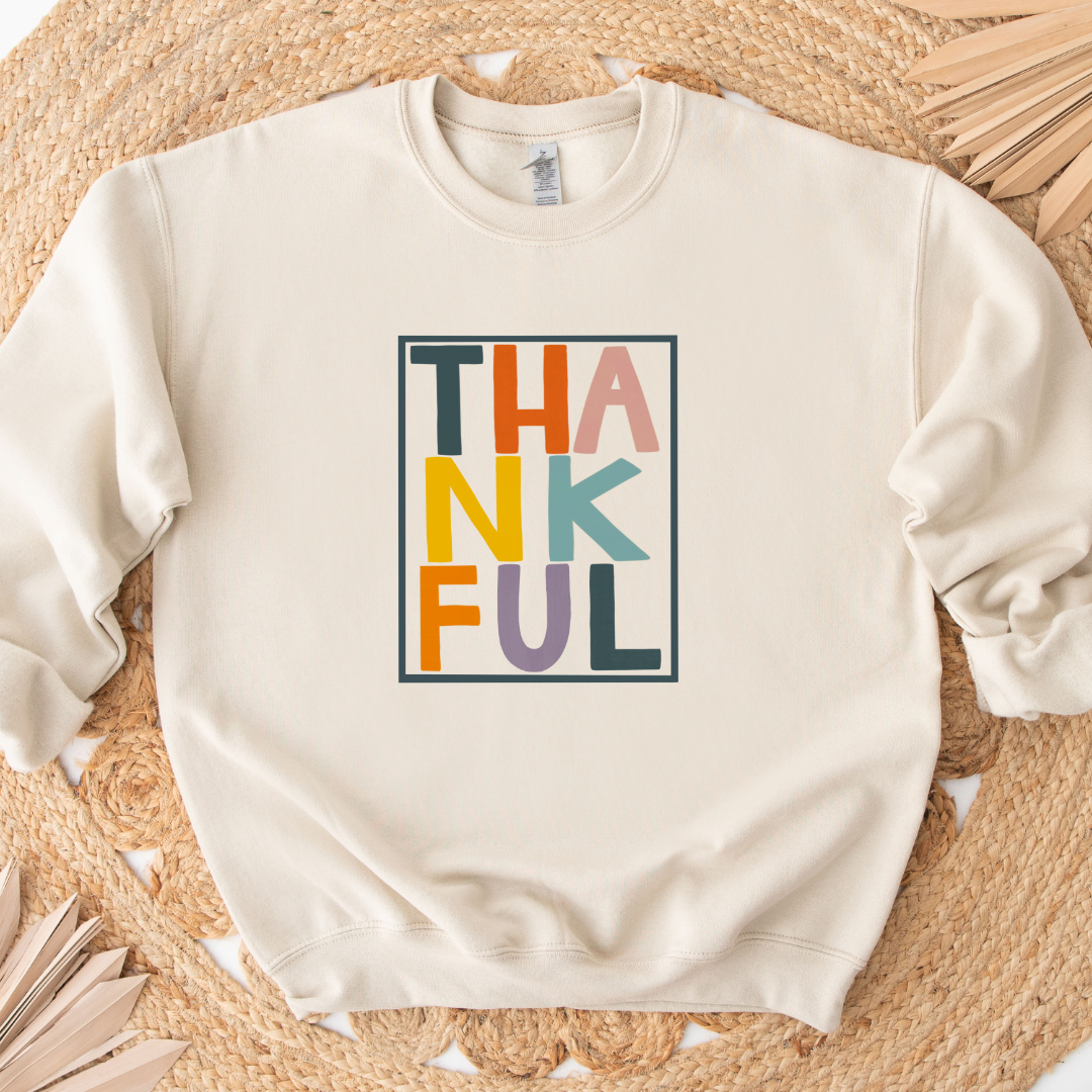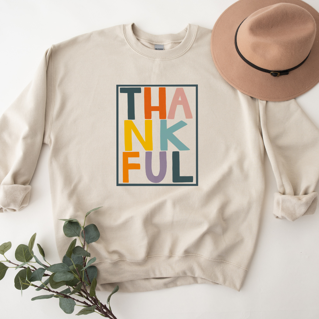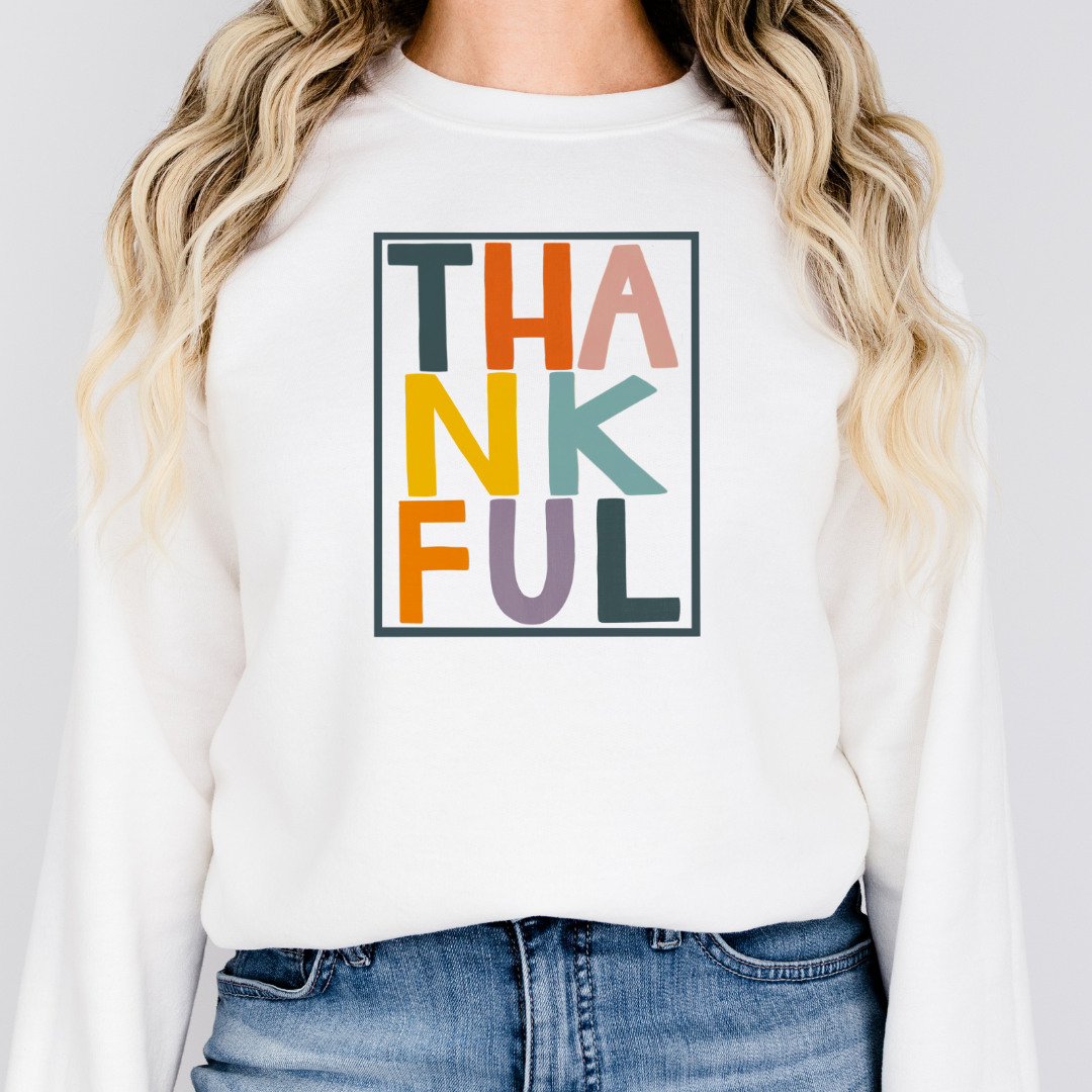 Rectangular Thankful Colorful Women's Fall Sweatshirt
