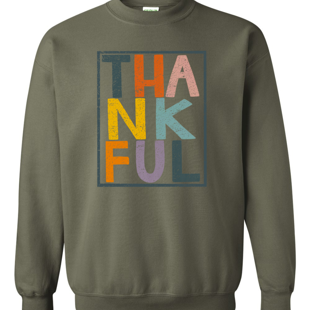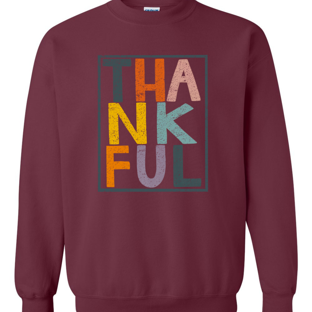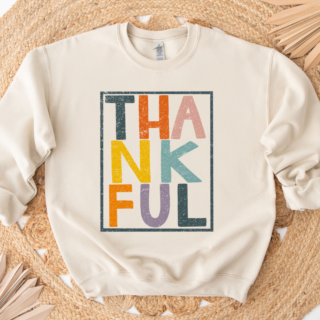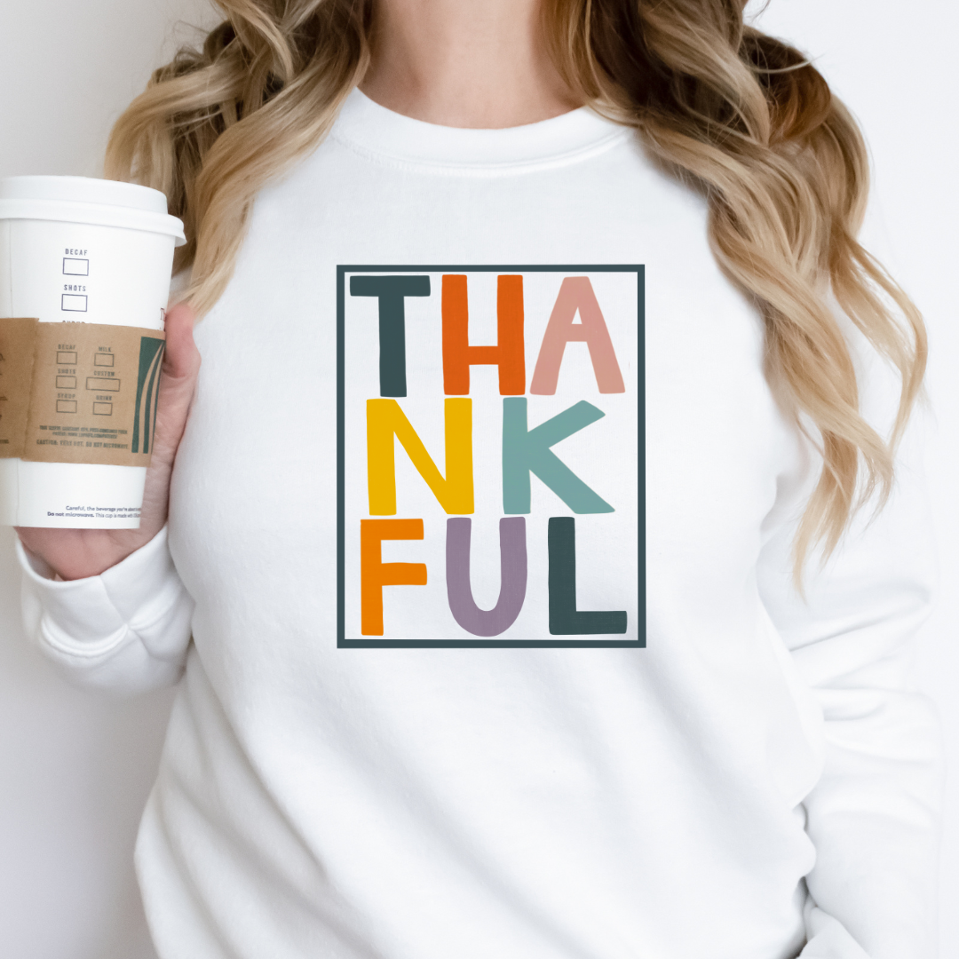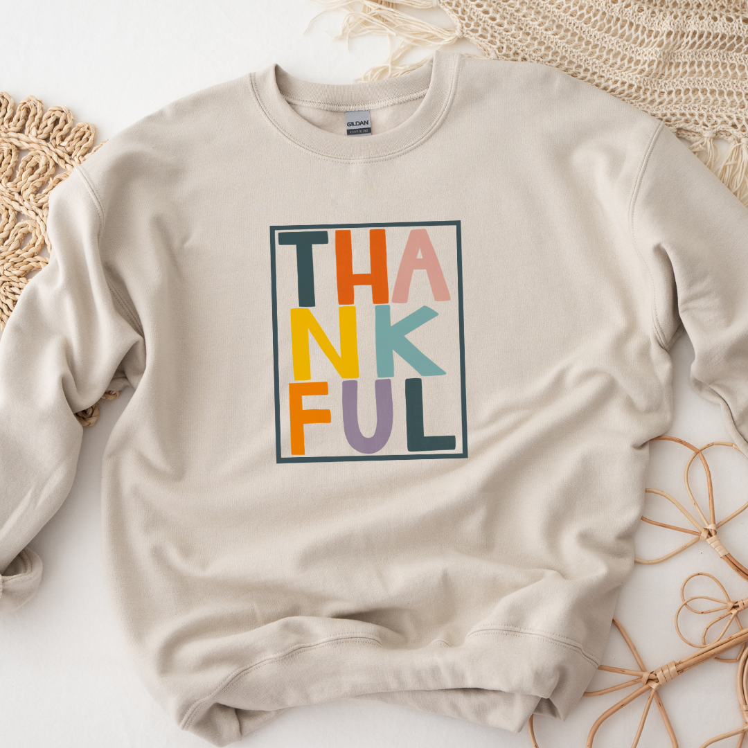 Rectangular Thankful Colorful Women's Fall Sweatshirt