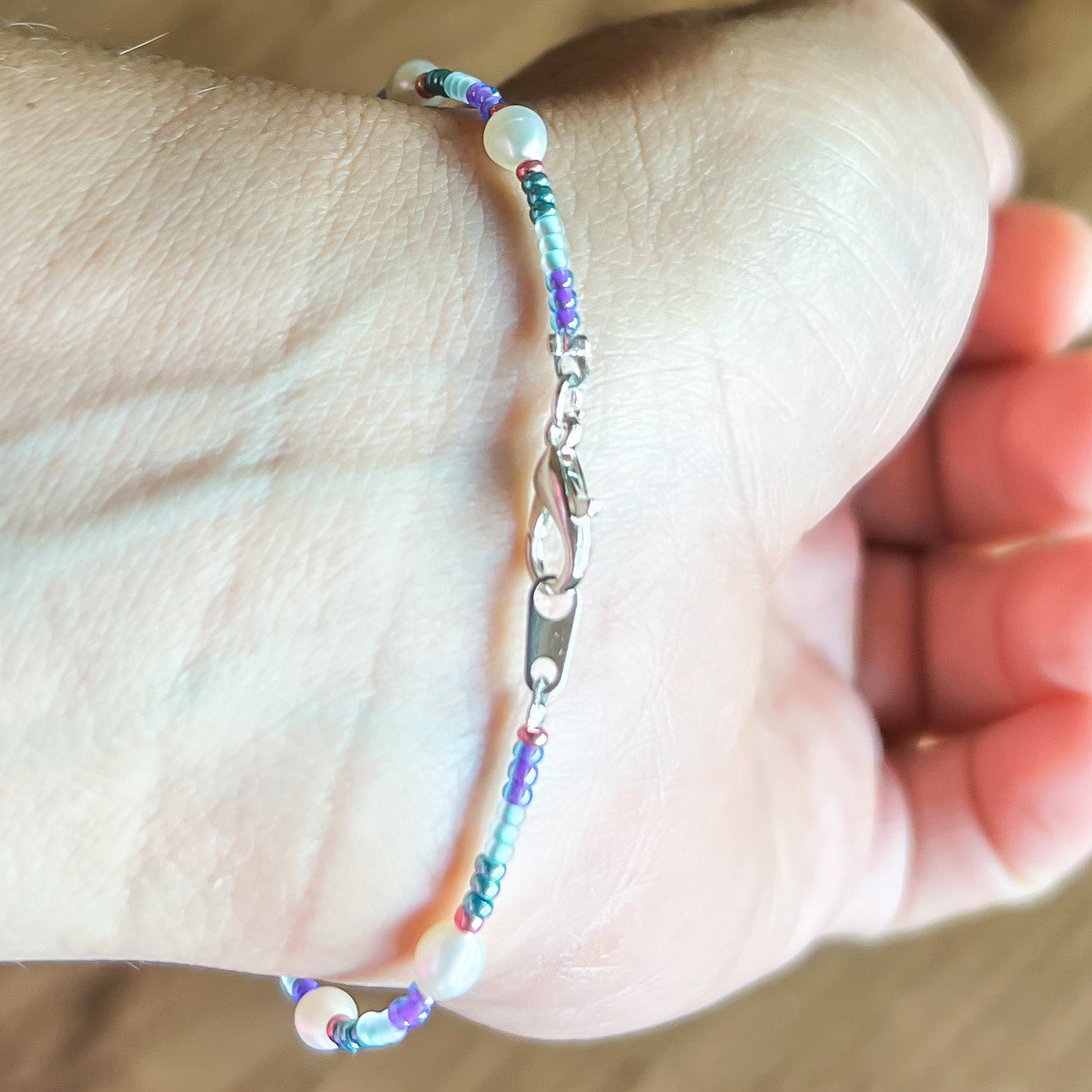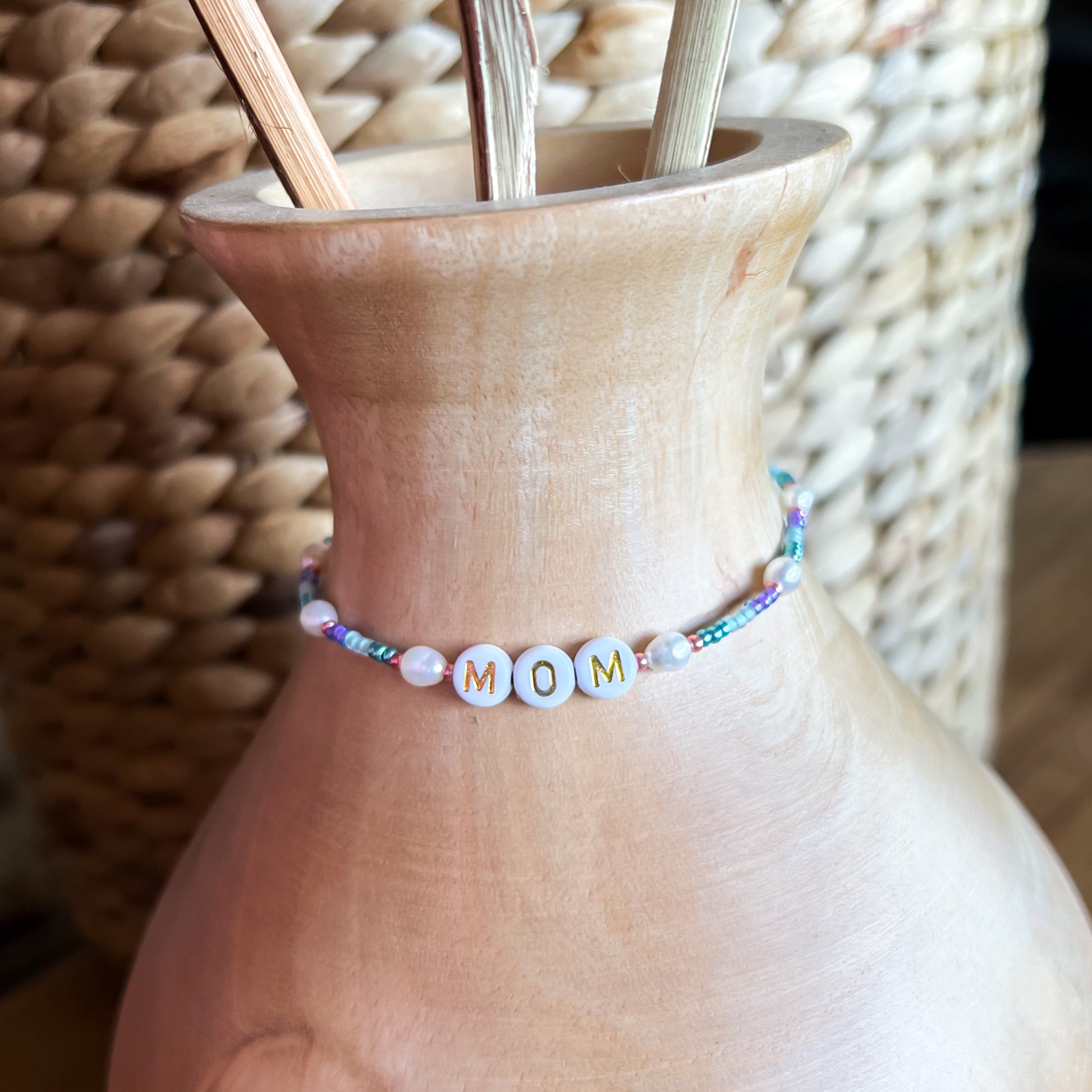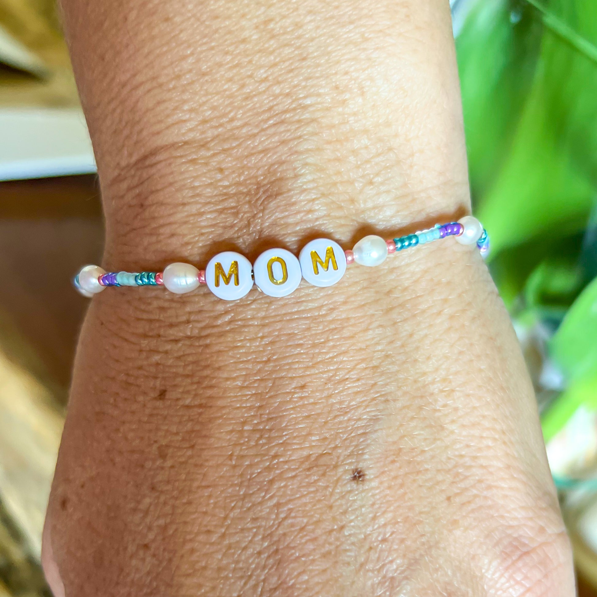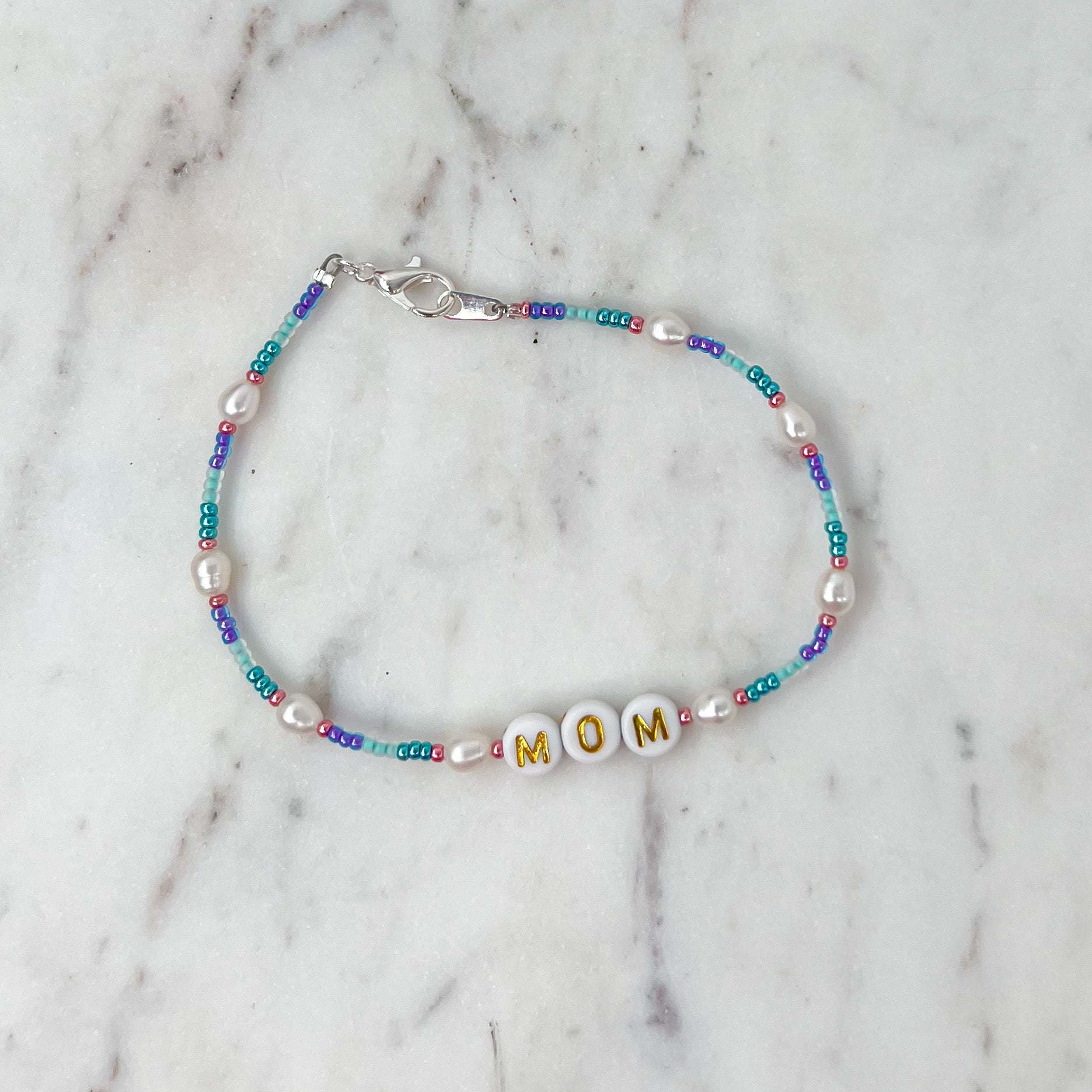 Treat the special mom in your life to a delightful surprise with this Silver coated Pearl and Beaded Mom Bracelet. The bracelet is carefully crafted to be a beautiful, timeless piece featuring silver coated clasp and findings, Czech glass beads, and fresh water pearls. An exquisite and meaningful gift for Mother's Day and any day you just want to show your love and appreciation to your mom!