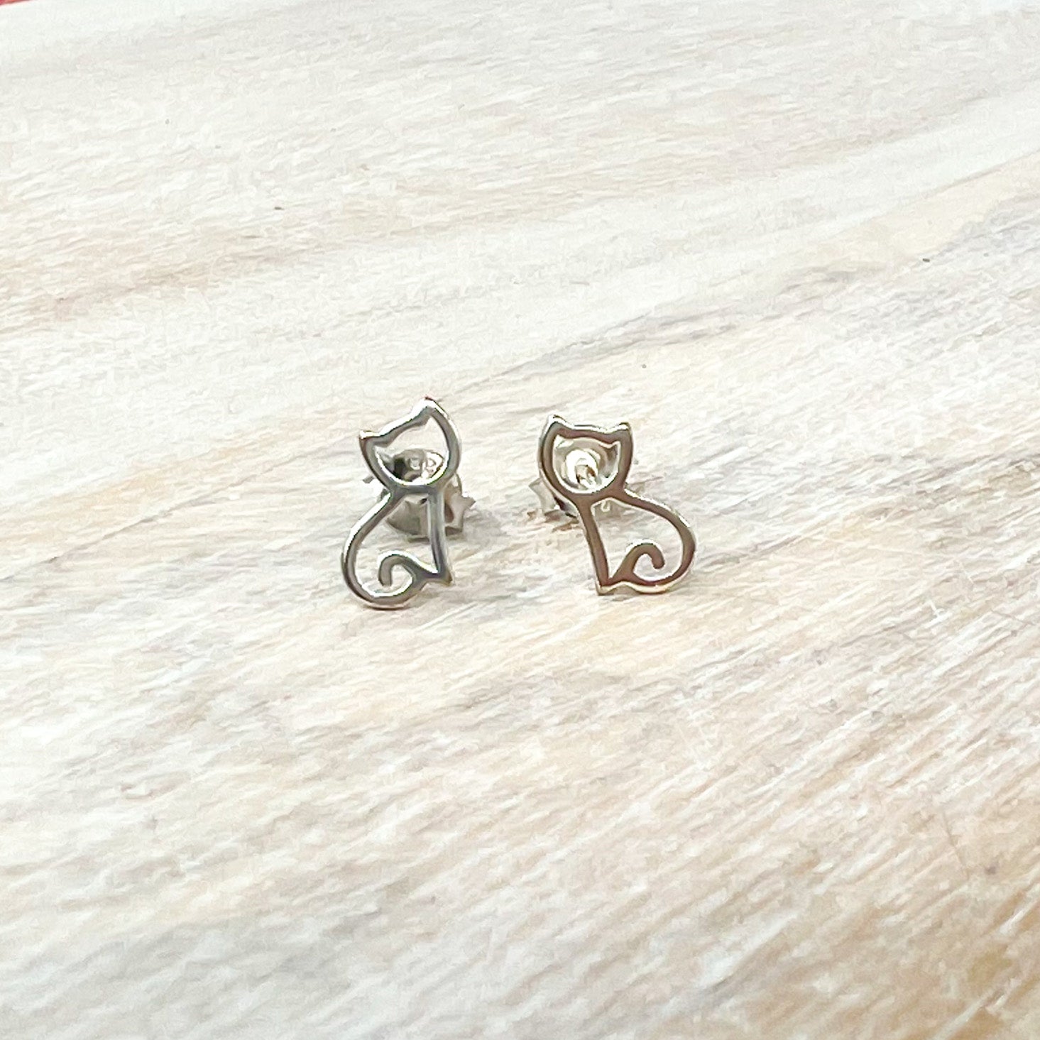 Sterling Silver Cat Stud Earring