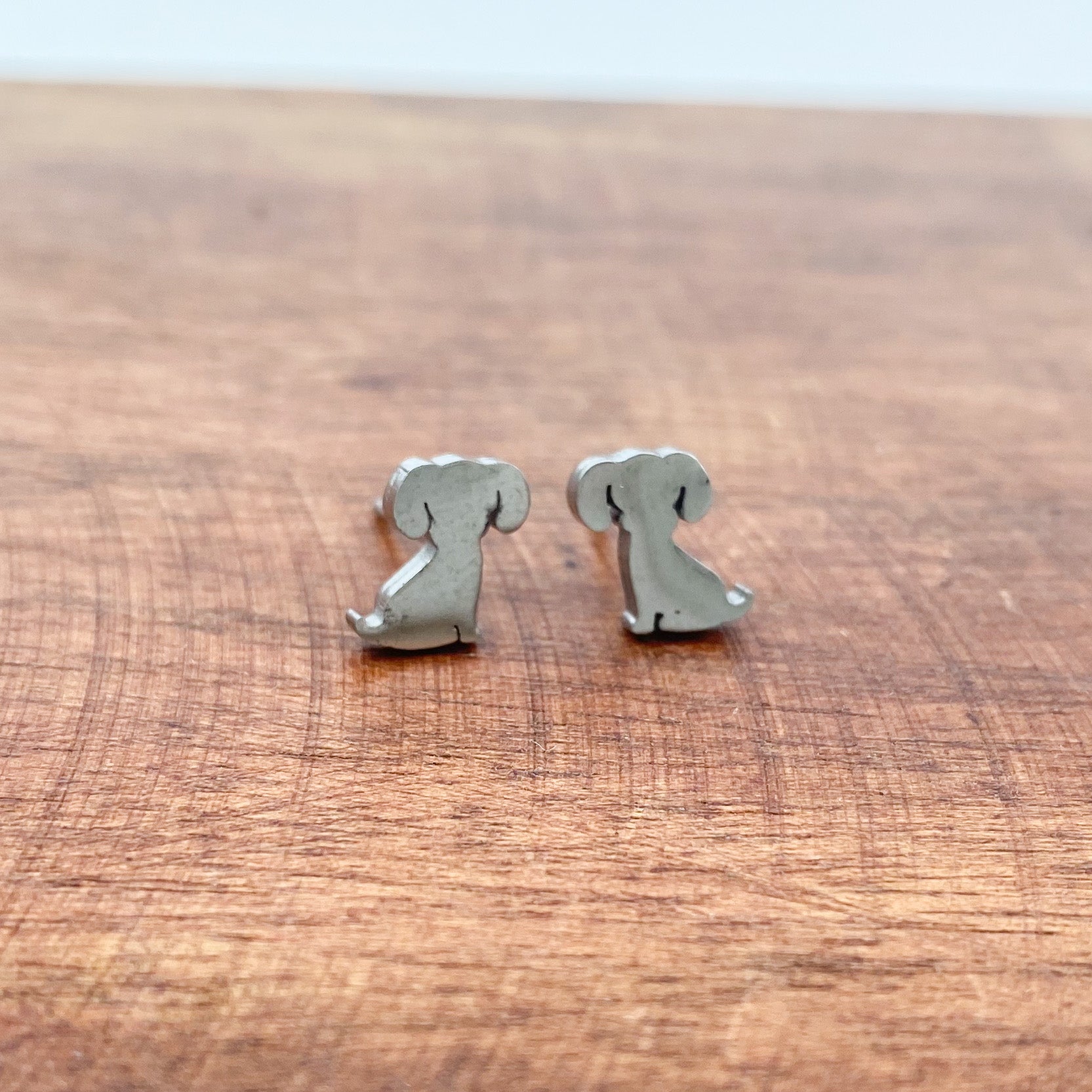 304 Stainless Steel Ear Post Stud Earrings Silver Tone Dog Animal 8mm x 6mm, Post/ Wire Size: (21 gauge), 1 Pair