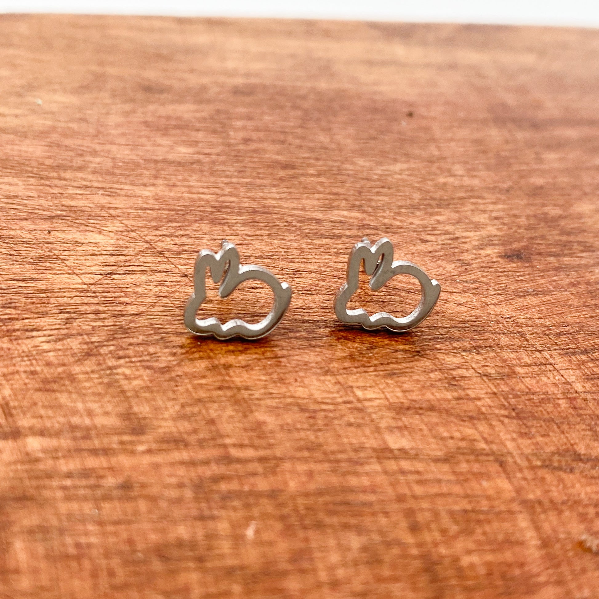 304 Stainless Steel Ear Post Stud Earrings Silver Tone Rabbit Animal 9mm x 8mm, Post/ Wire Size: (20 gauge), 1 Pair